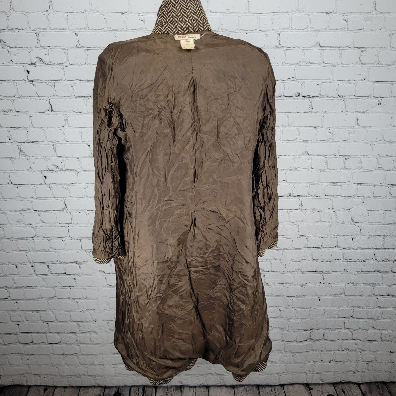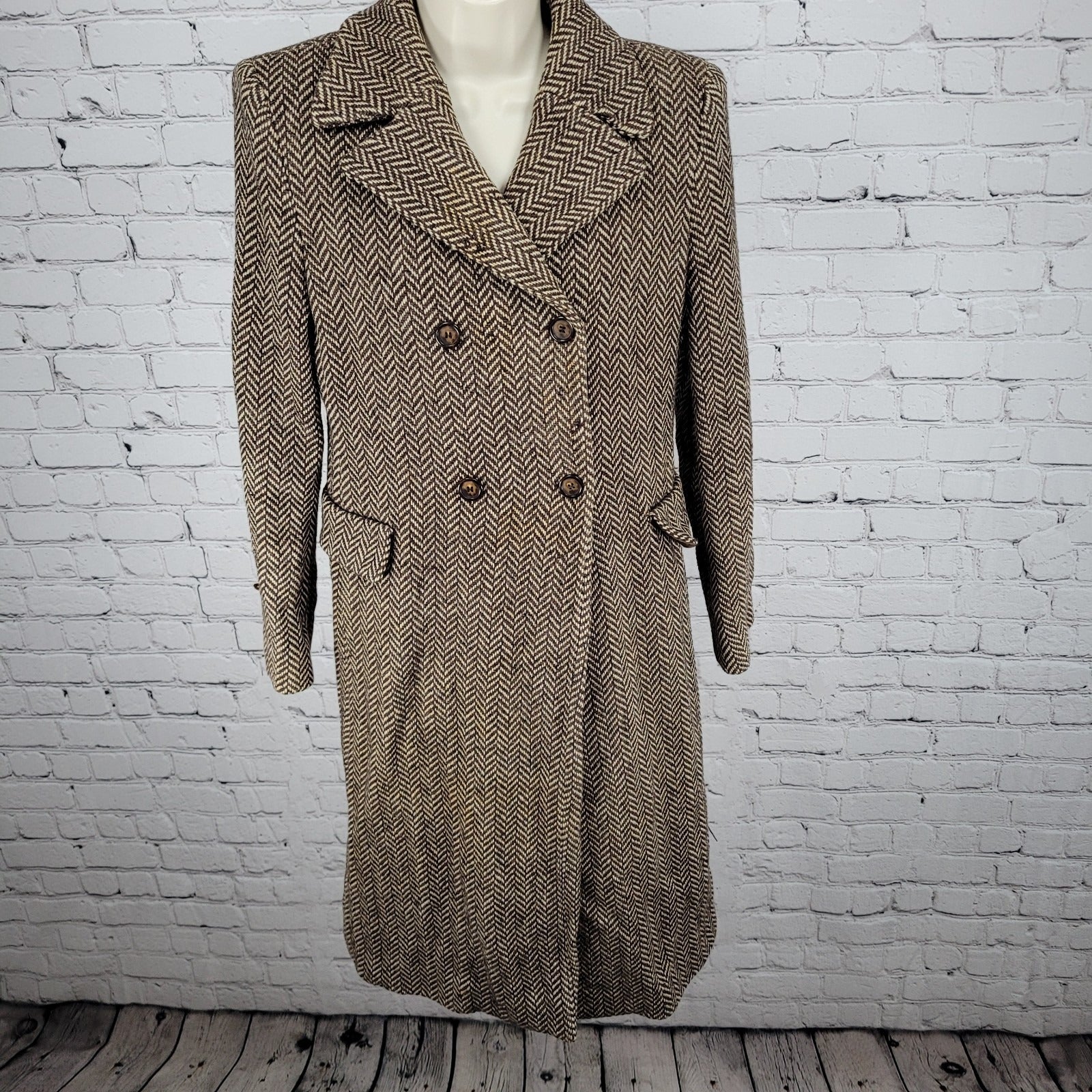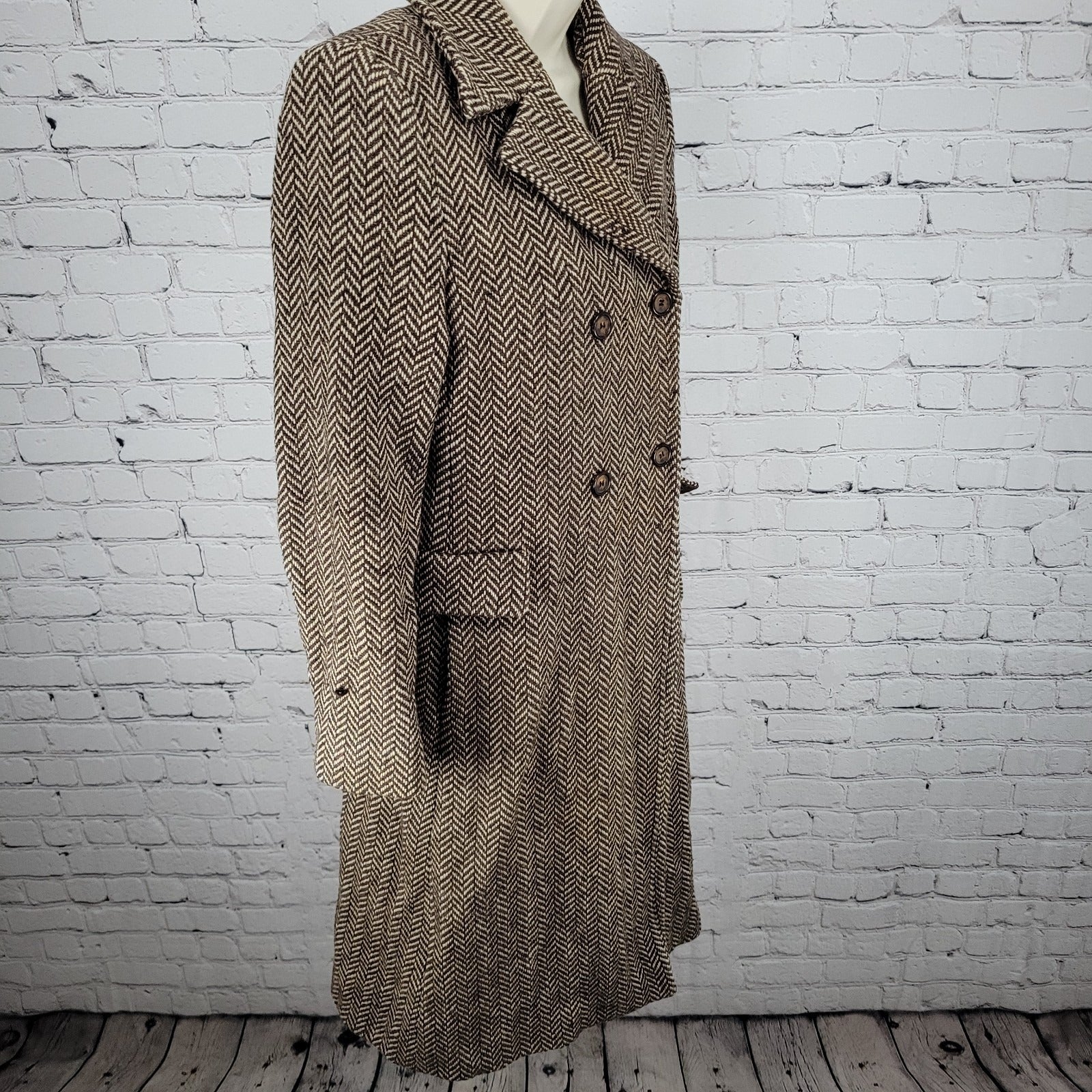 VTG Michael Kors Brown Wool Blend Herringbone Lined Pea Coat Italy Made Size 6