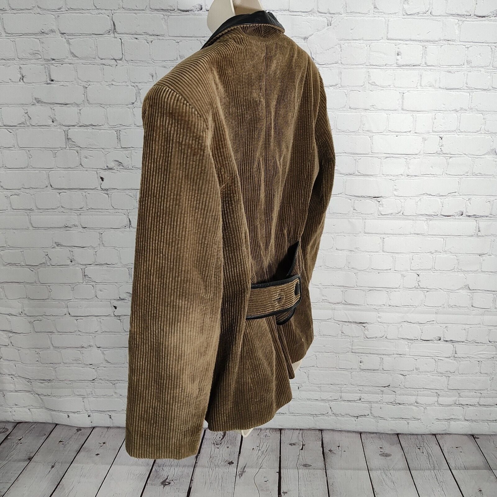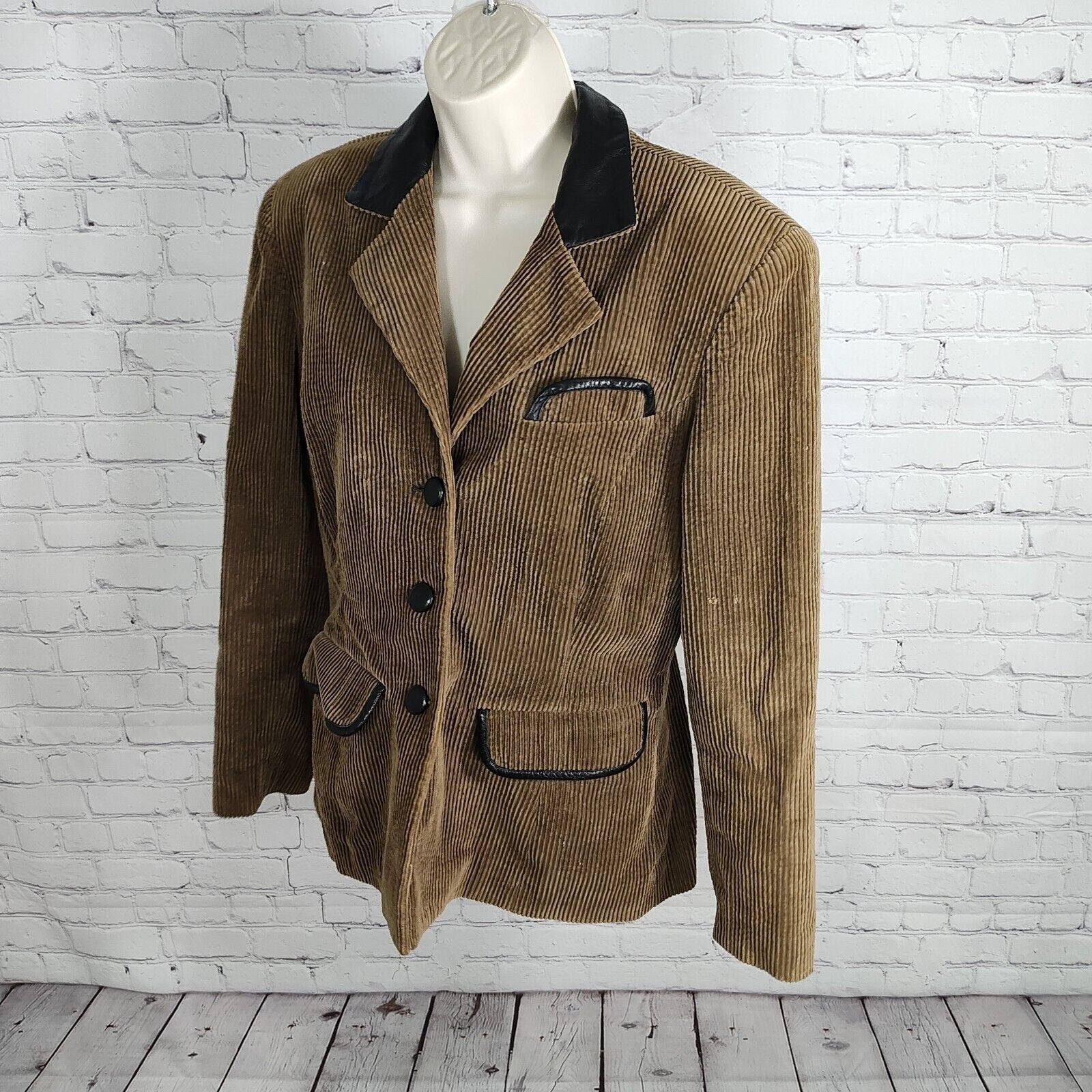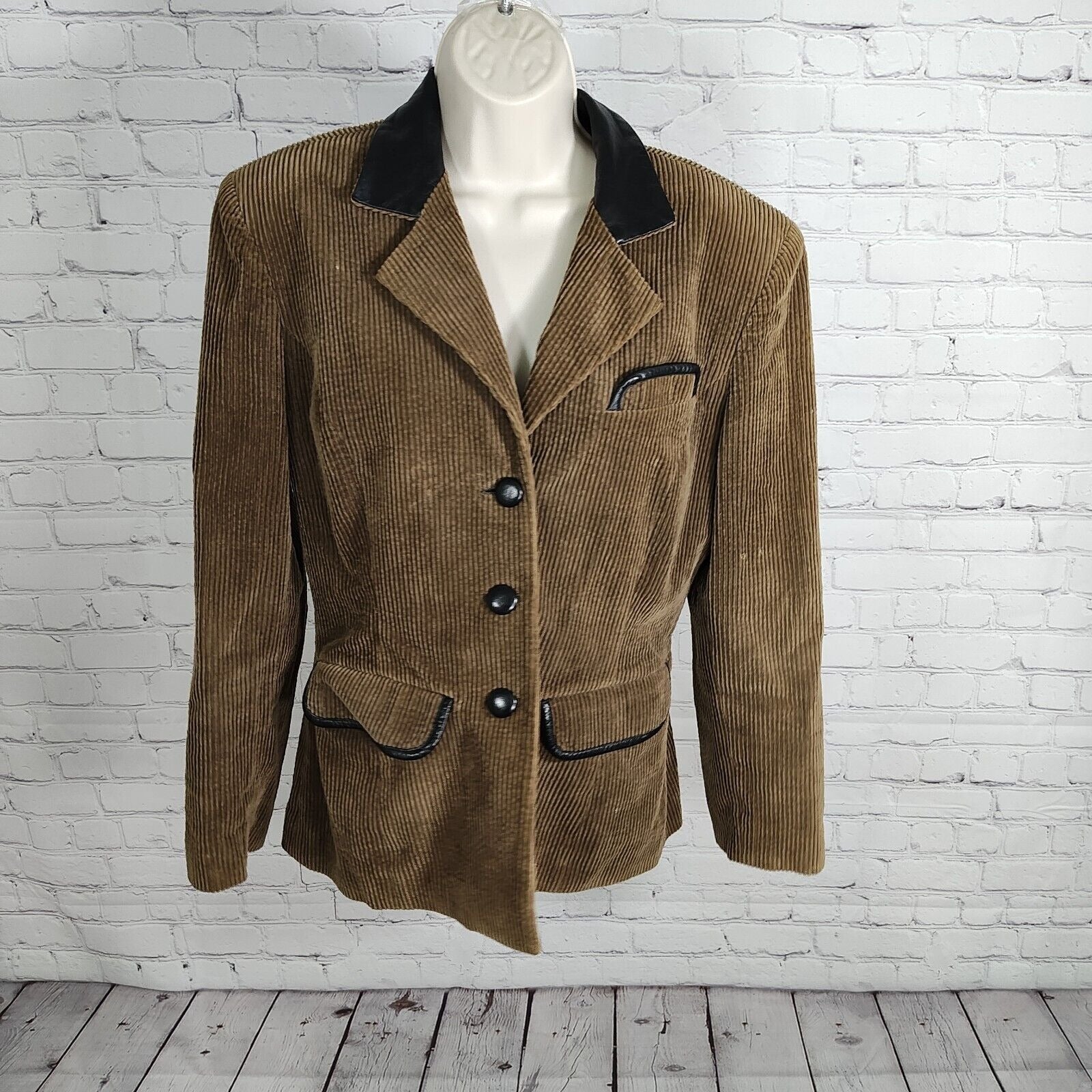 VTG Morgan Taylor Corduroy Black Leather Trim Lined Blazer Women's Size 10