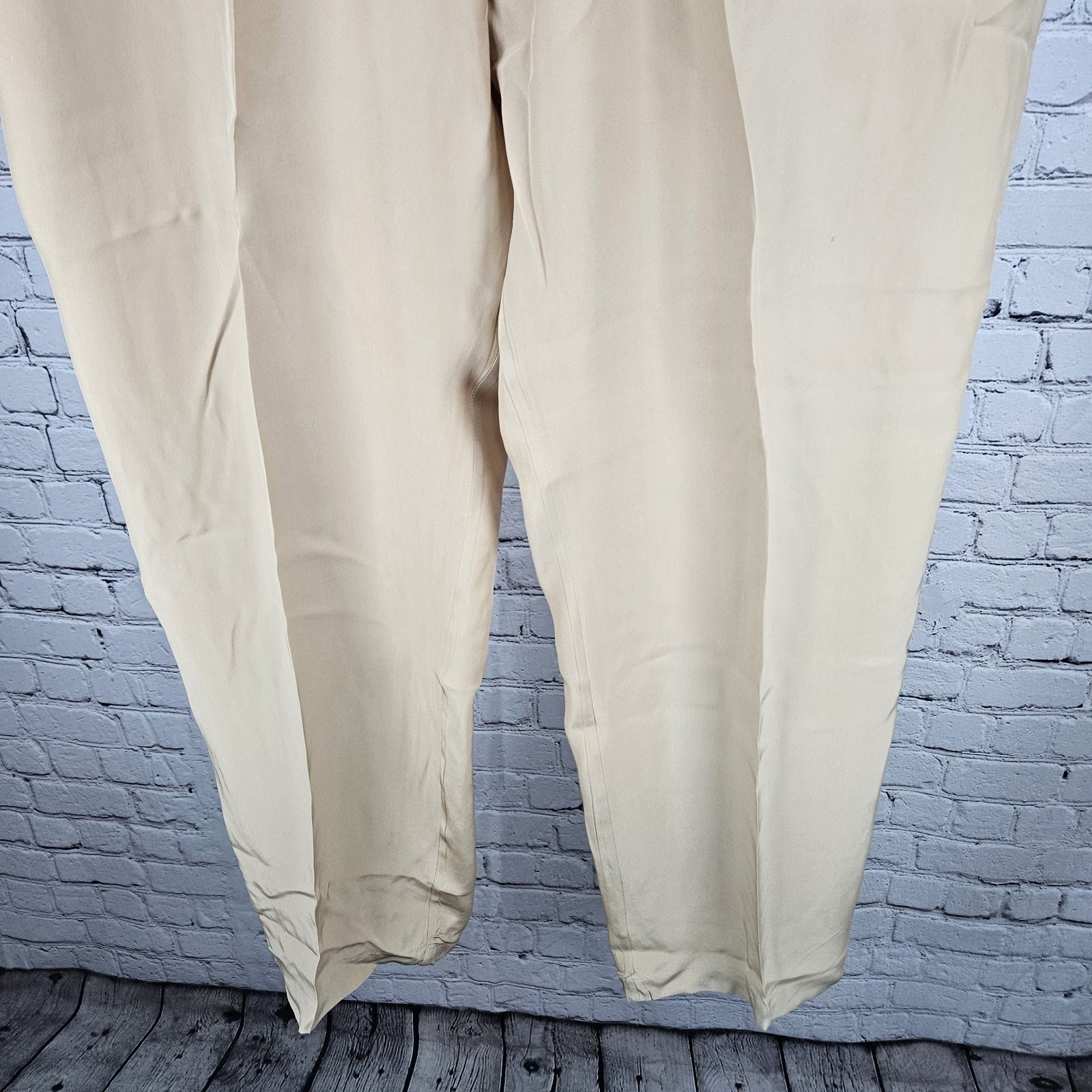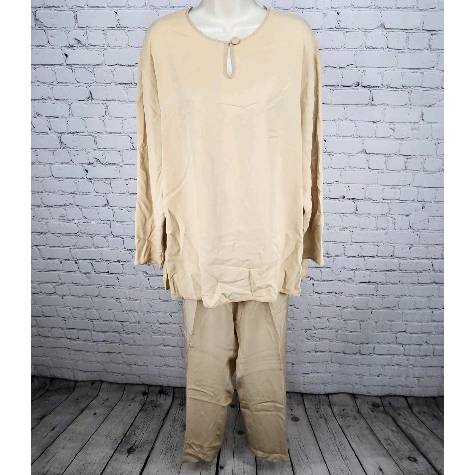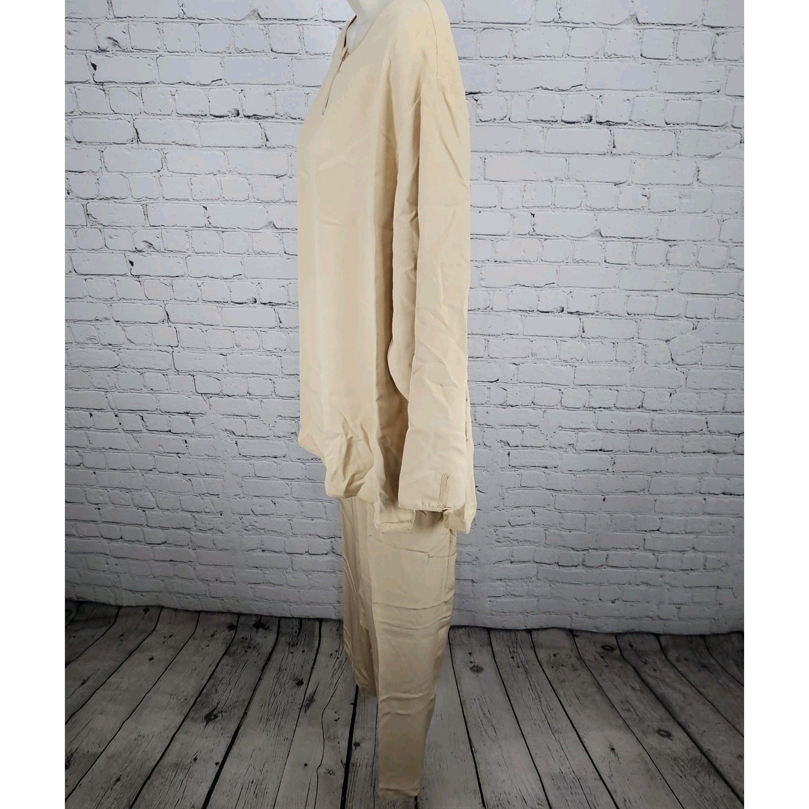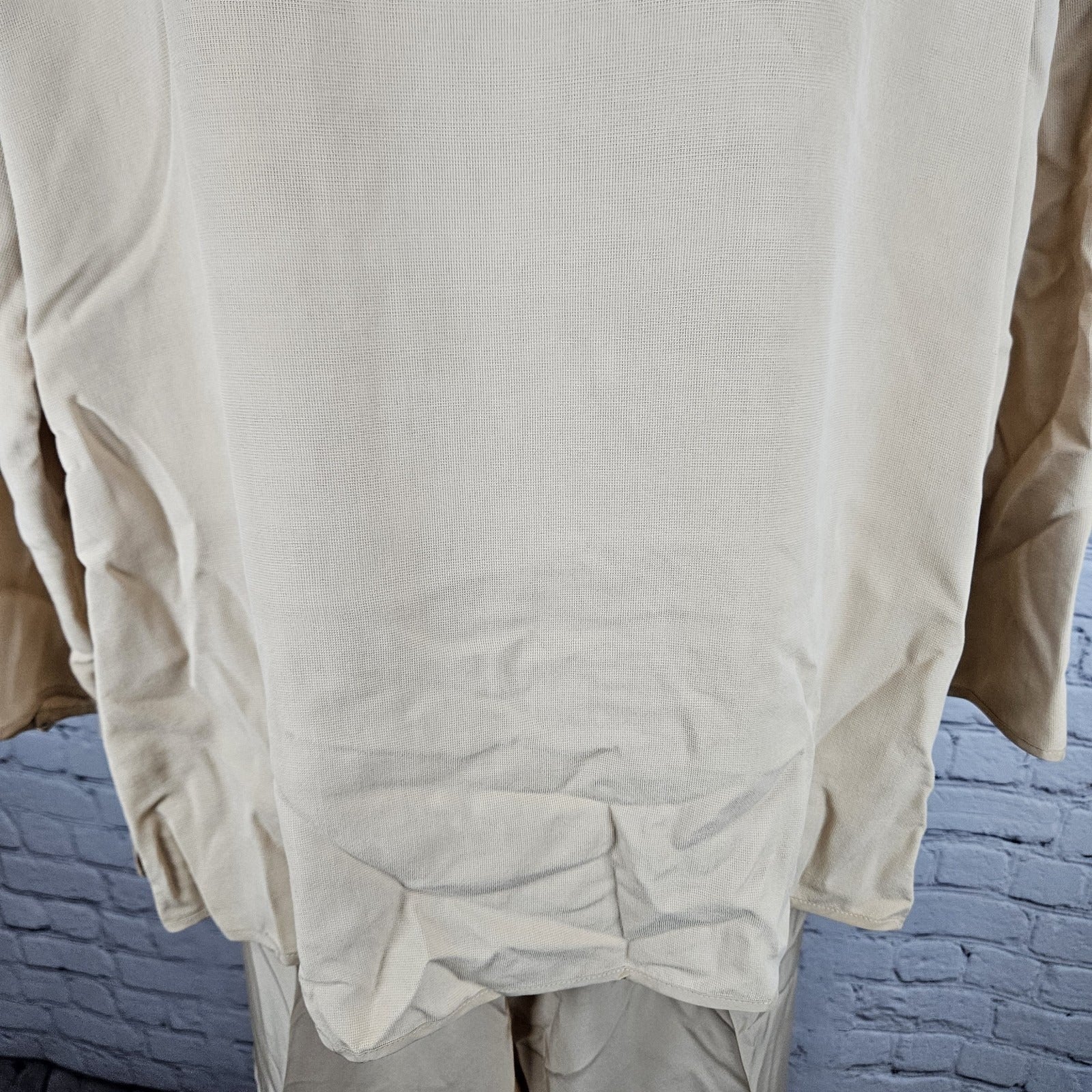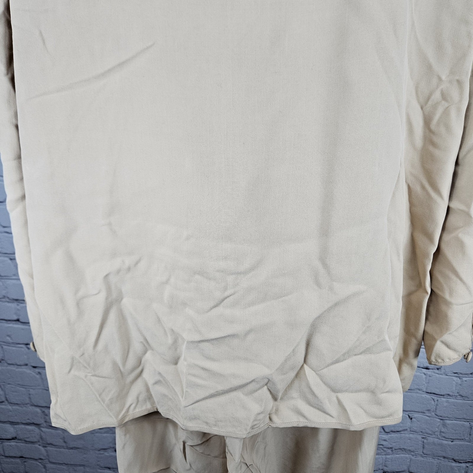 VTG Neiman Marcus Beige 100% Silk Matching 2 Piece Outfit Set Long Sleeve Top XL