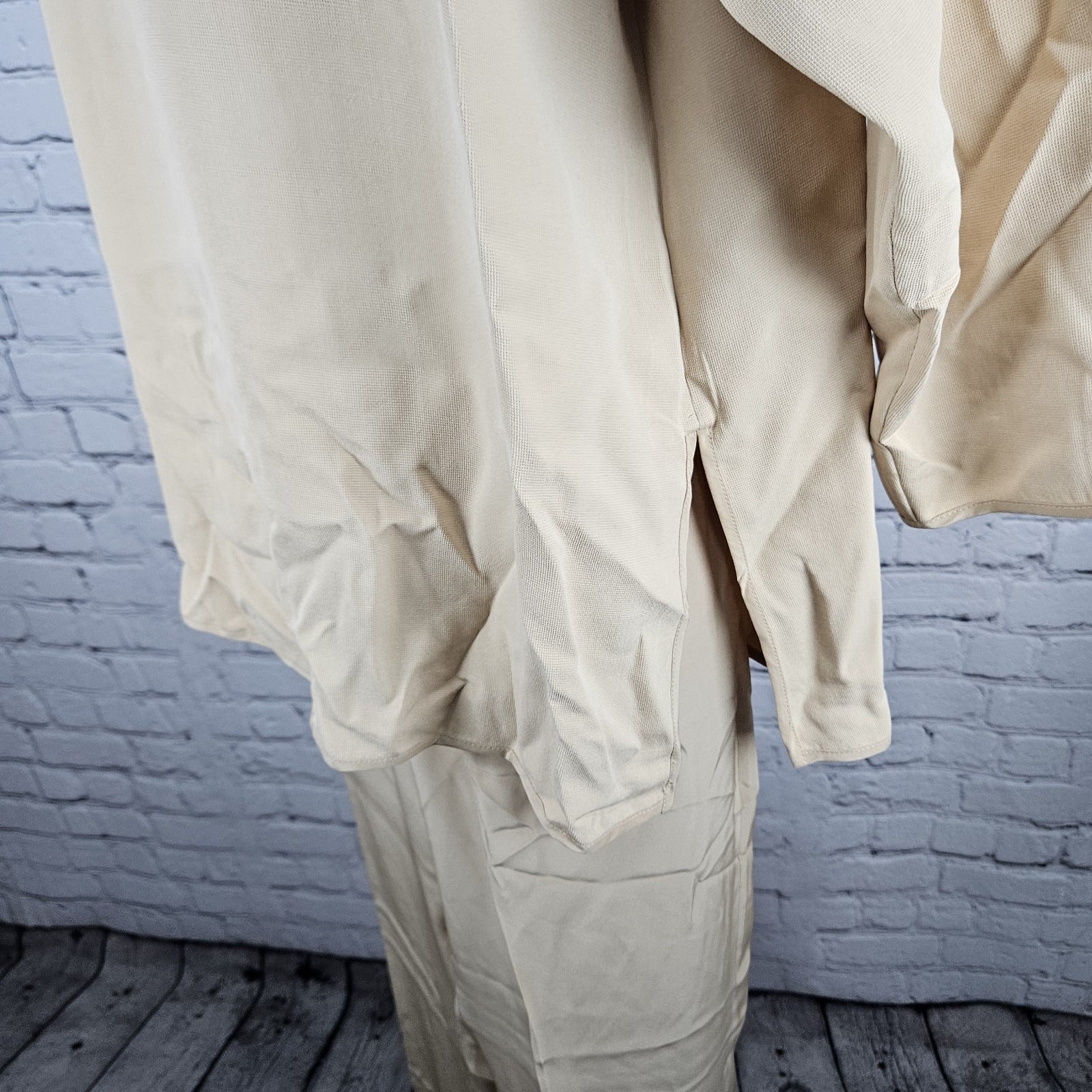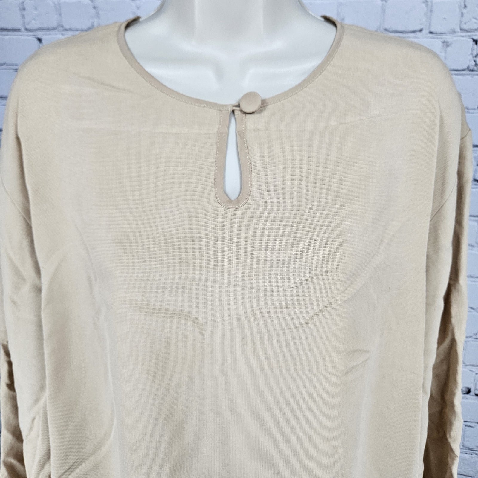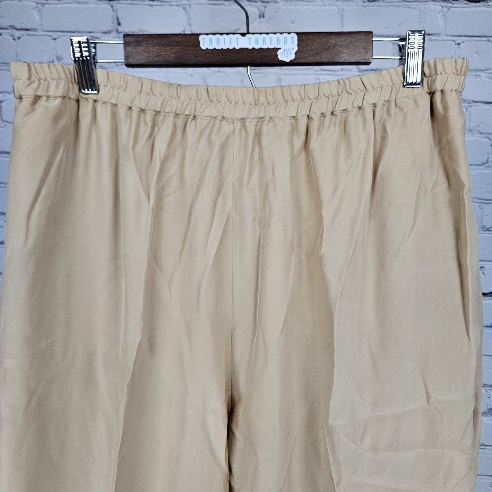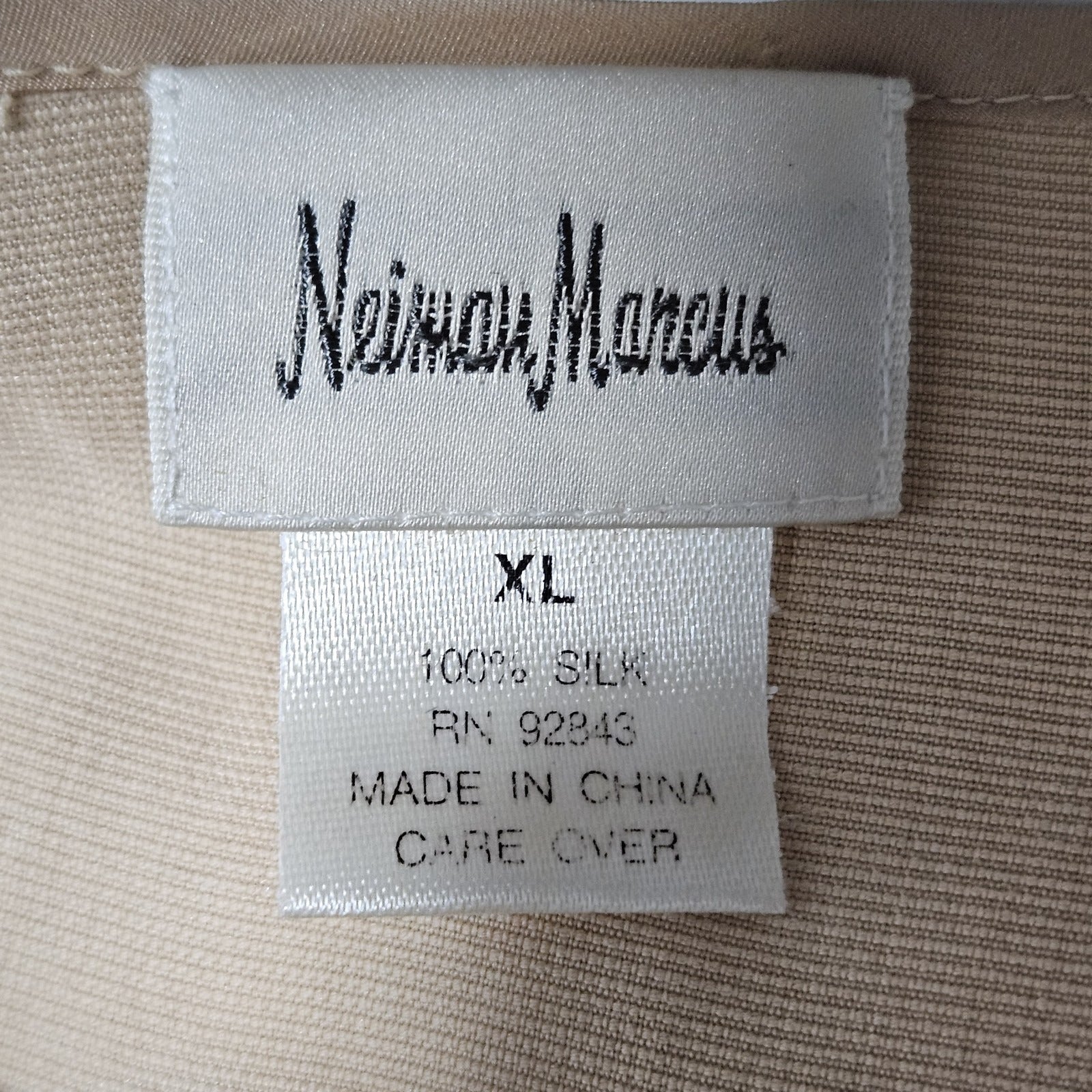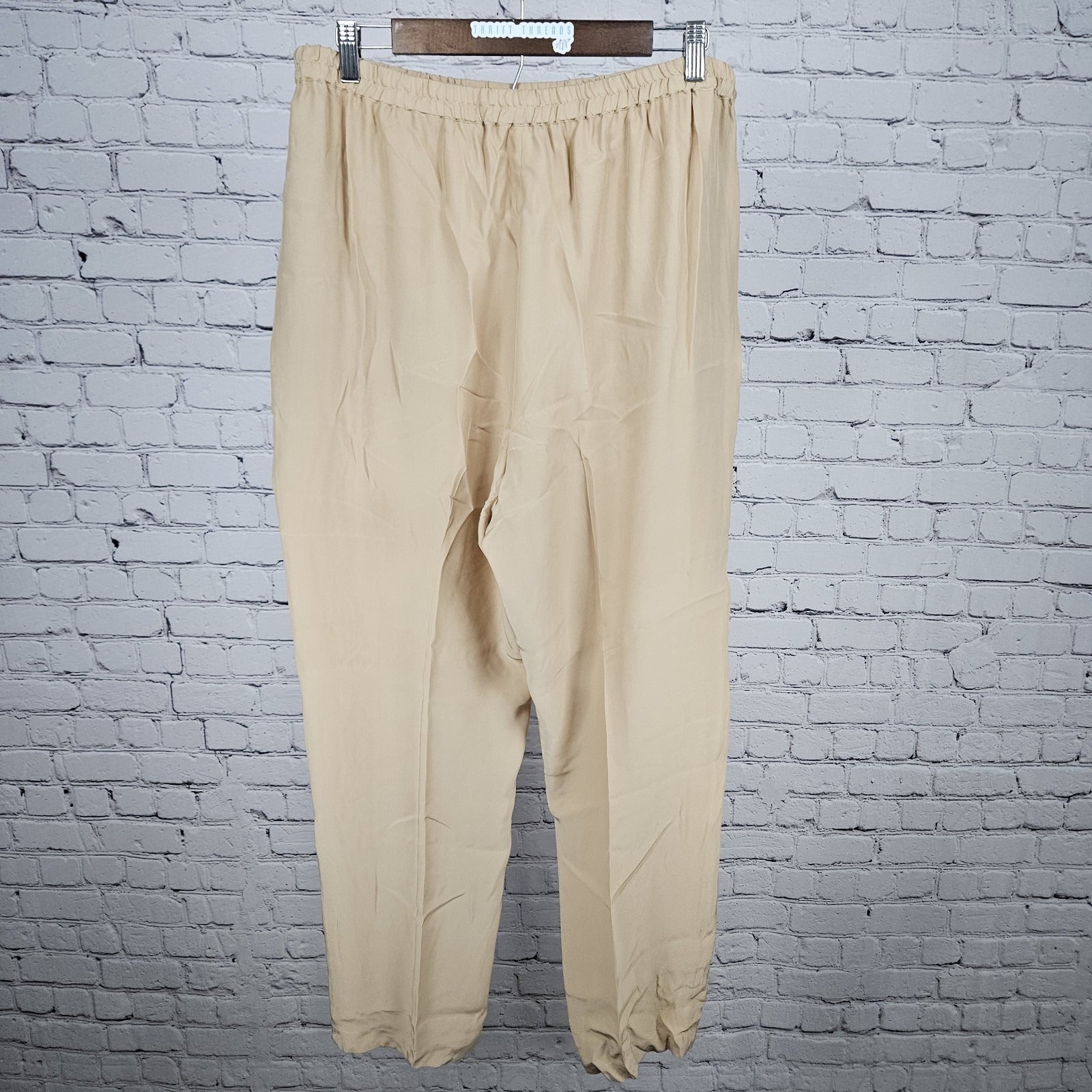 VTG Neiman Marcus Beige 100% Silk Matching 2 Piece Outfit Set Long Sleeve Top XL