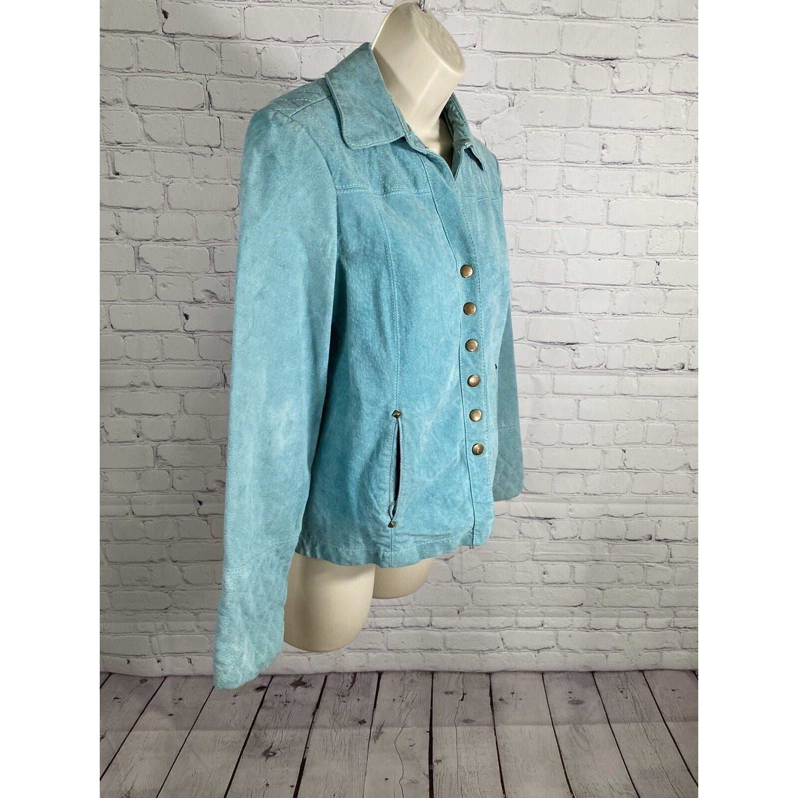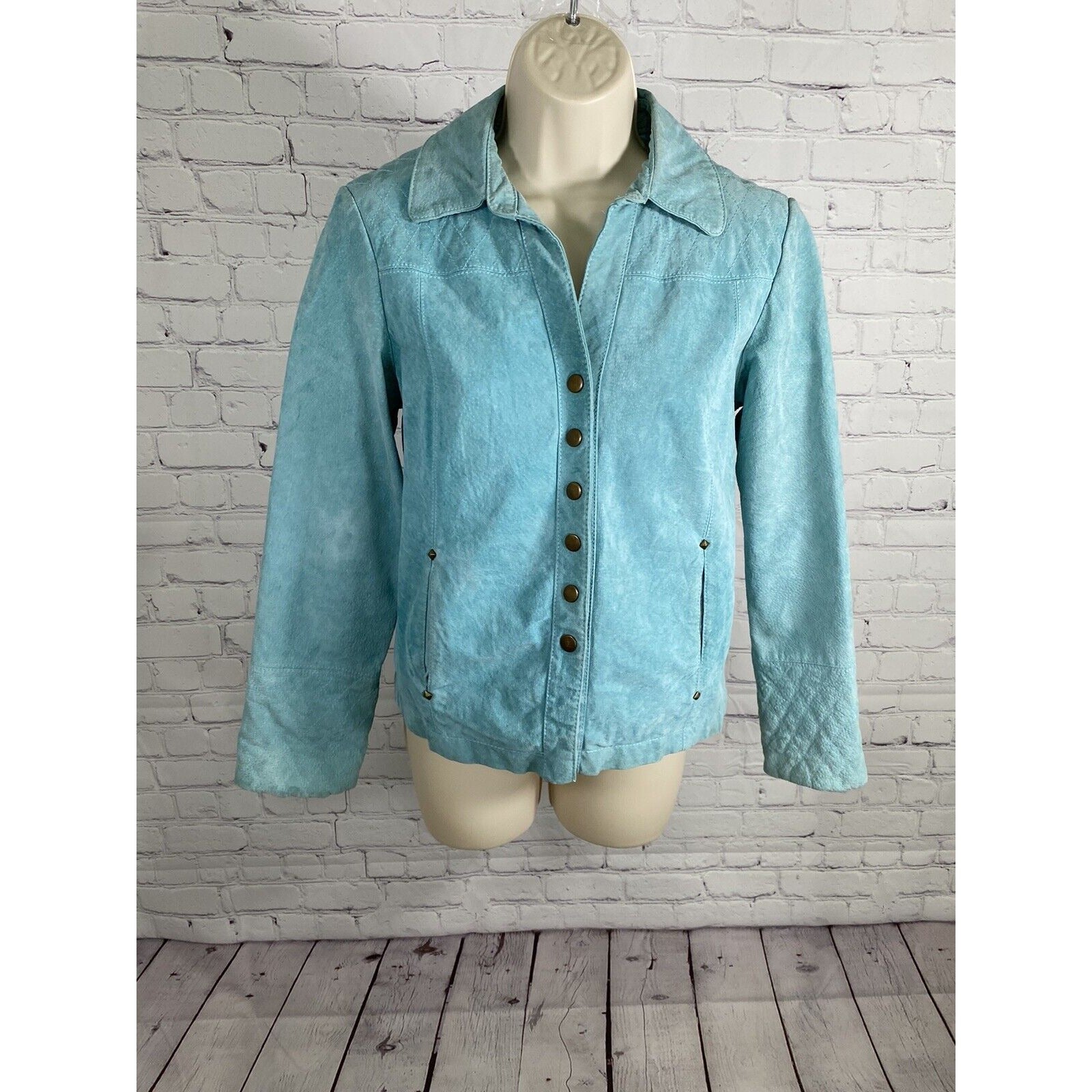 VTG North Style 100% Leather Snap Close Collared Slit Pocket Jacket Womens S