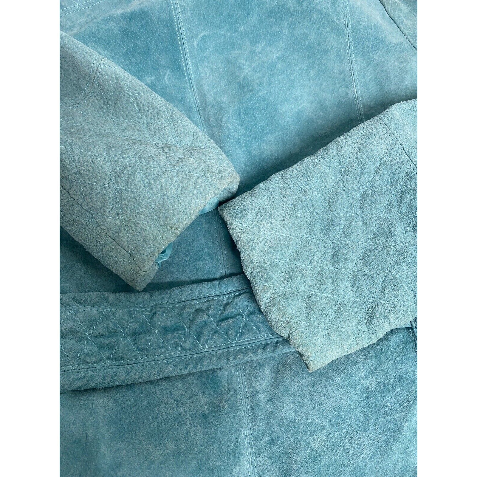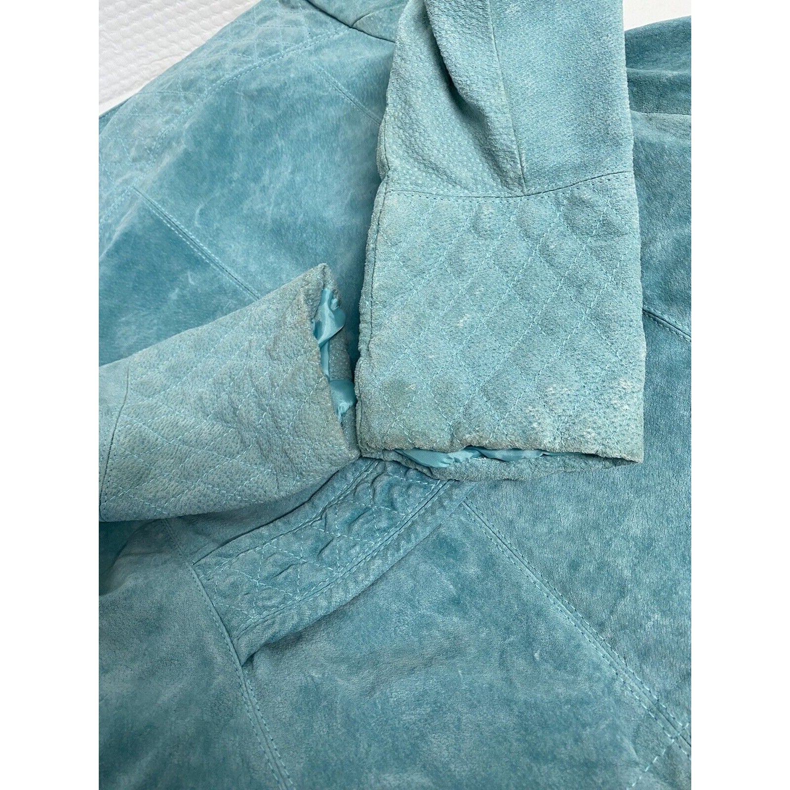 Elevate your wardrobe with this vintage North Style leather jacket. The collared mid-length jacket features a solid blue color with a classic motorcycle/biker theme. The snap closure and slit pockets make it the perfect fit for travel, workwear, or casual occasions.