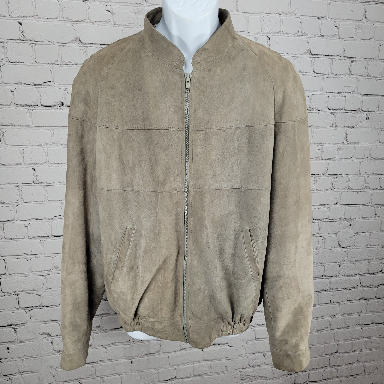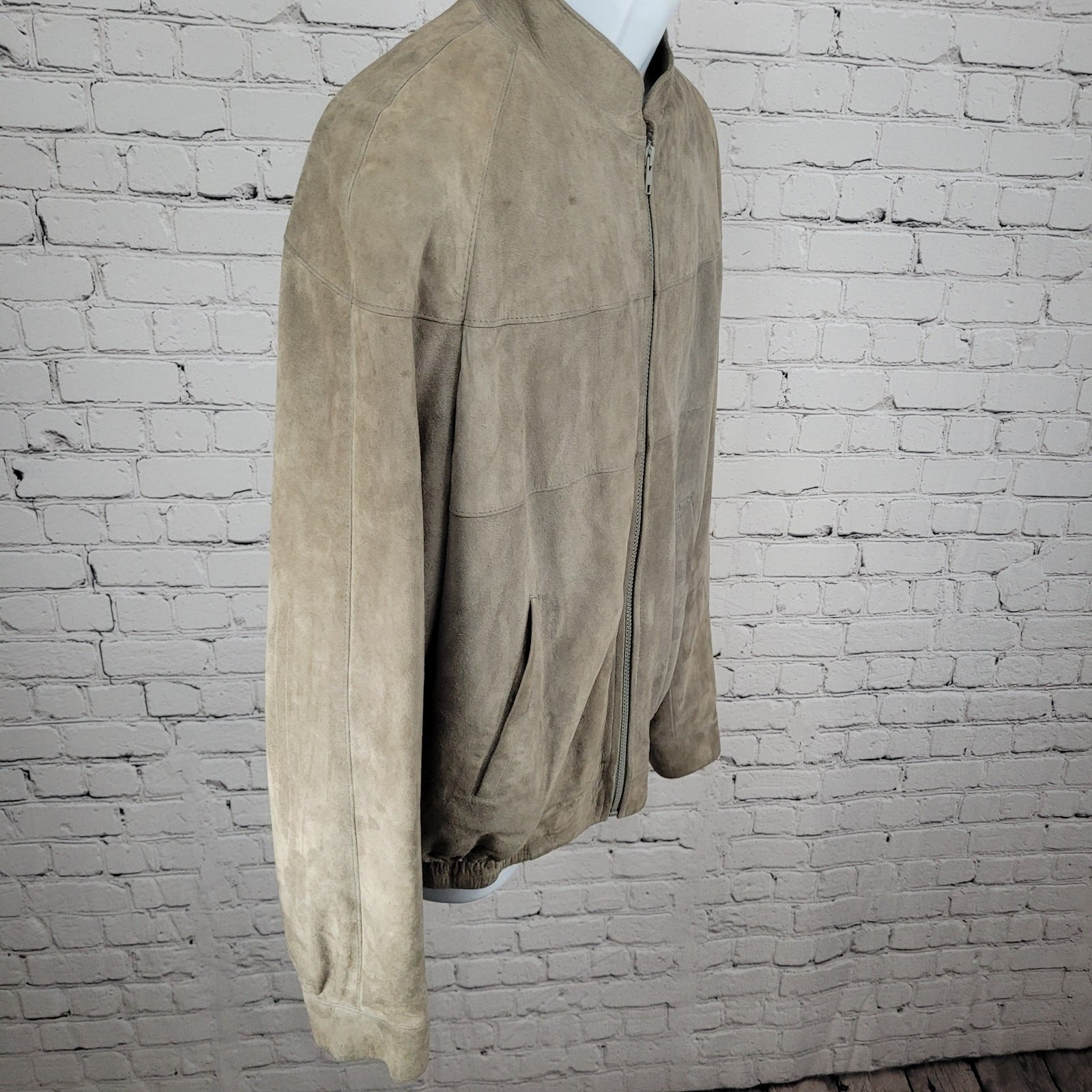 VTG Outbak Grey Taupe Soft Suede Full Zip Jacket New Zealand Handcut Size 46