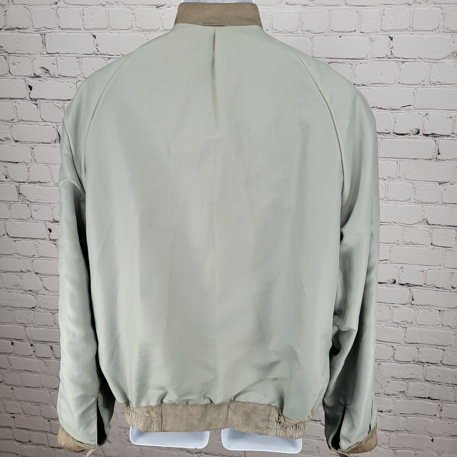 This VTG Outbak Grey Taupe Soft Suede Full Zip Jacket is a stylish and versatile piece perfect for casual, travel, or workwear occasions. Made in New Zealand with high-quality suede and featuring a band collar, this bomber jacket has a classic retro vibe. The short length, regular fit, and full zip closure make it a comfortable and practical choice for the winter, fall, and spring seasons. With lined interior and convenient pockets, this handmade jacket offers both style and functionality for the modern man.
