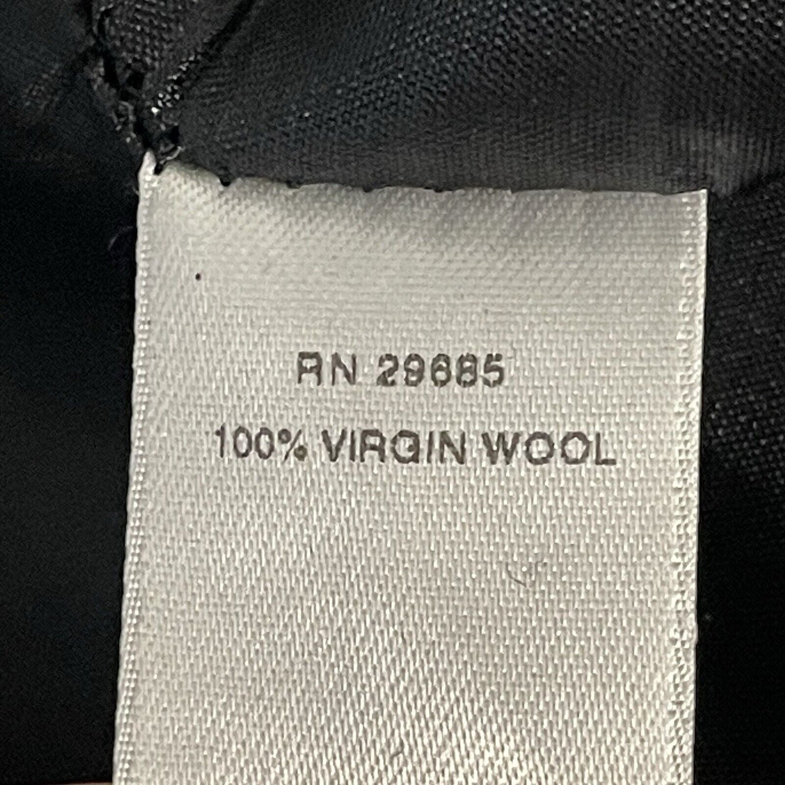 These vintage Pendleton dress pants are made of 100% virgin wool in black. They have a high rise fit and a classic straight leg style, with a flat front and a size 14 waist (33 inches) and 27-inch inseam. The pants are lined and feature pockets, suitable for casual, formal, or business occasions in the winter, fall, or spring. Made in the USA, they have a preppy 90s style.
