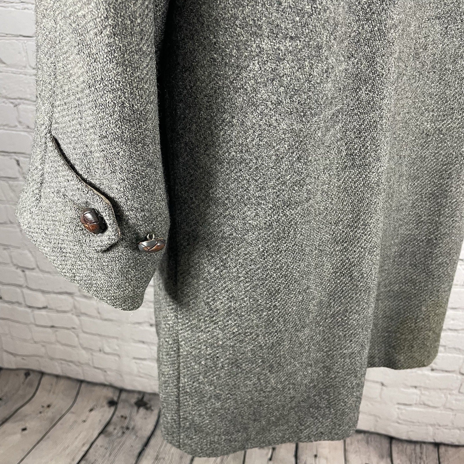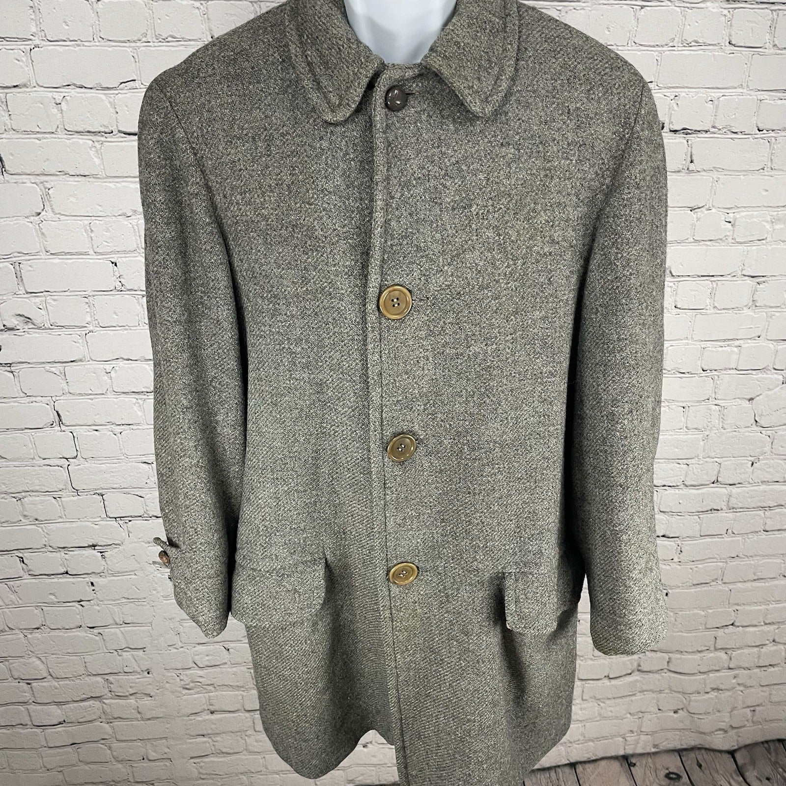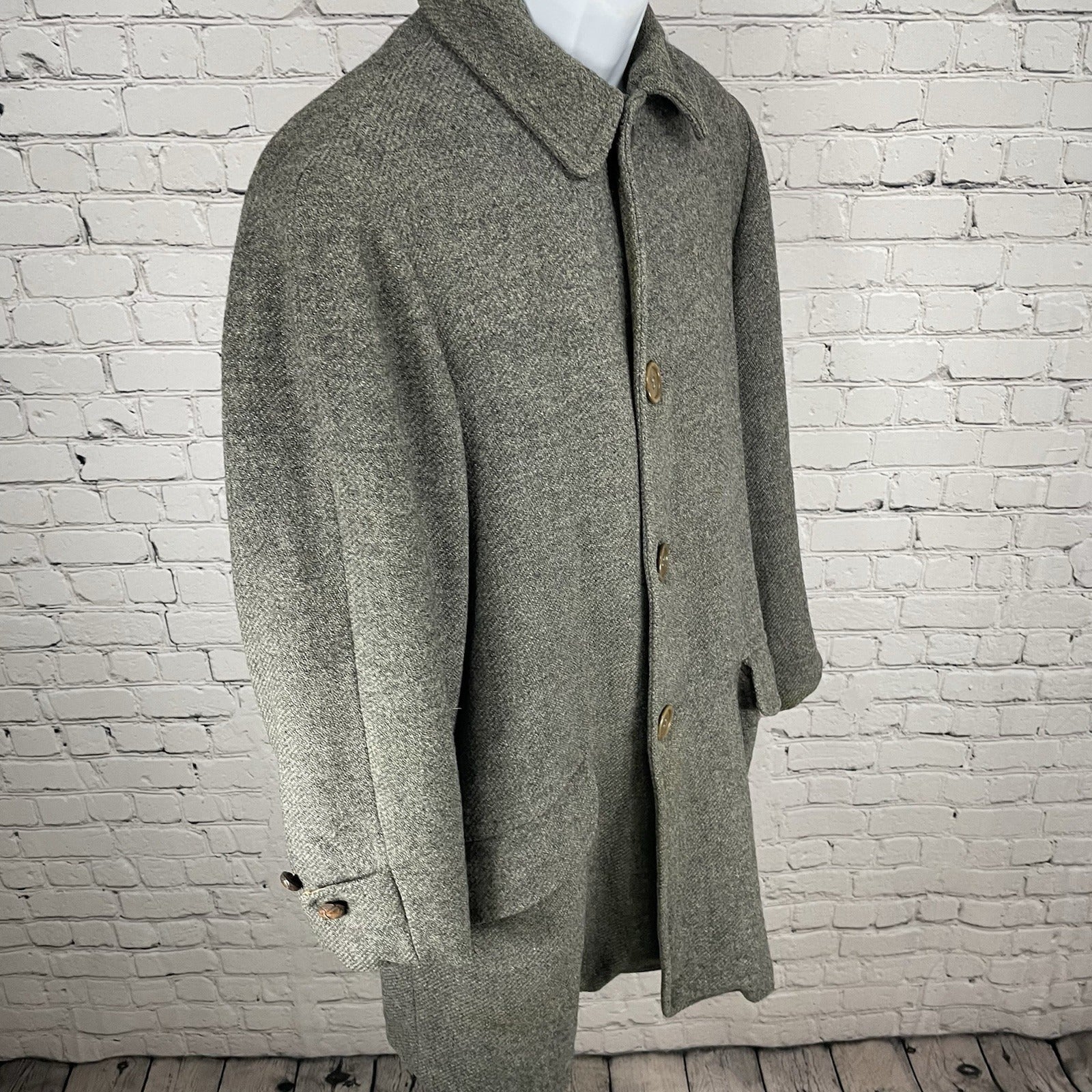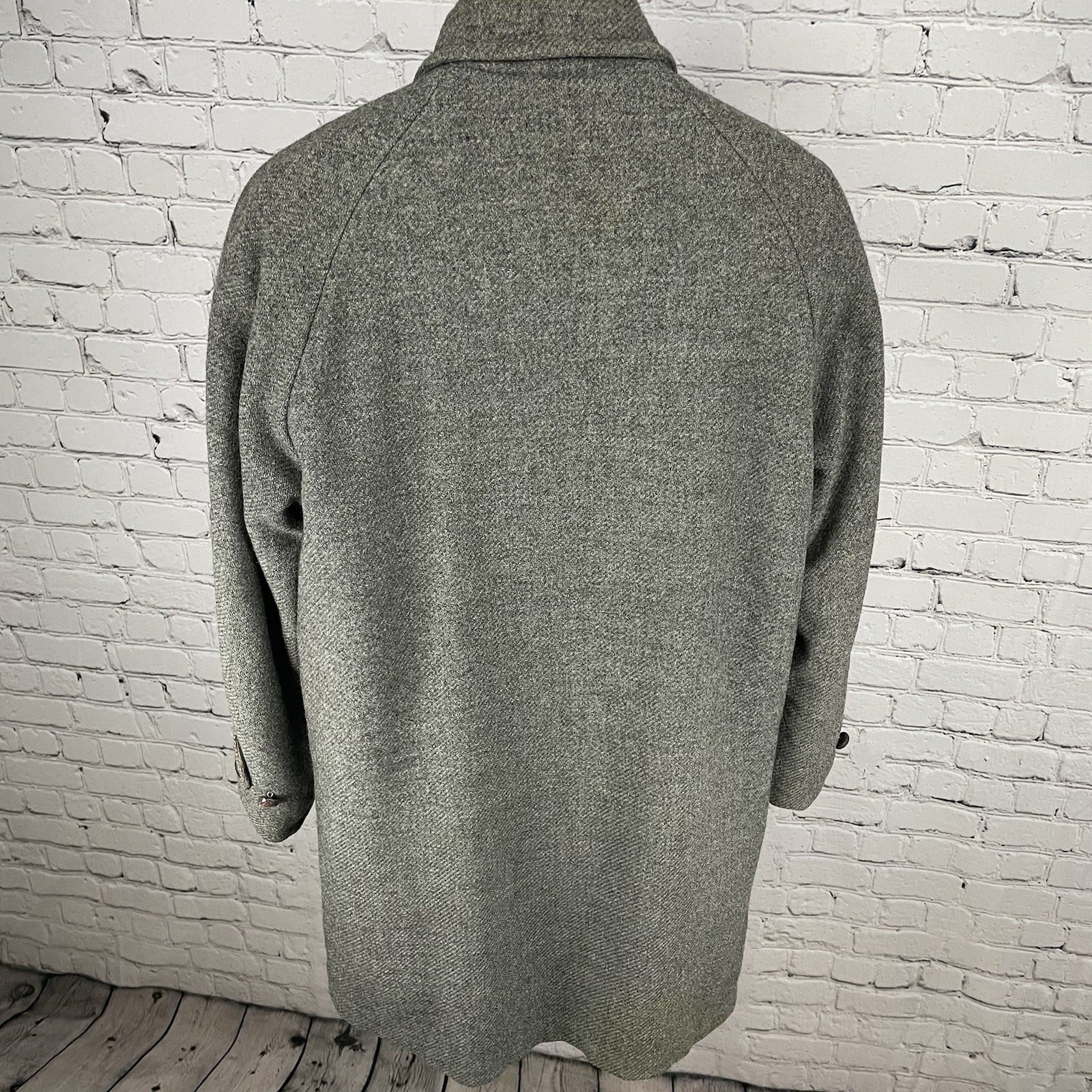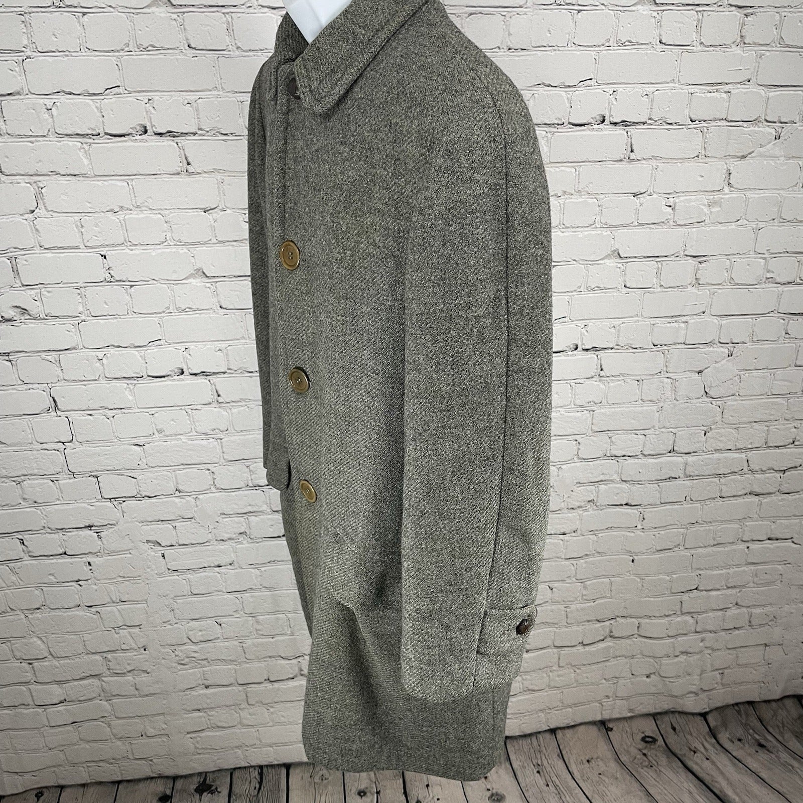 Available in a men's size large, this regular fit coat ensures ease of movement while maintaining a polished silhouette. Proudly made in the USA, this coat is a celebration of quality and enduring fashion. Whether layered over a sweater or vest, it is a versatile addition to any discerning wardrobe.