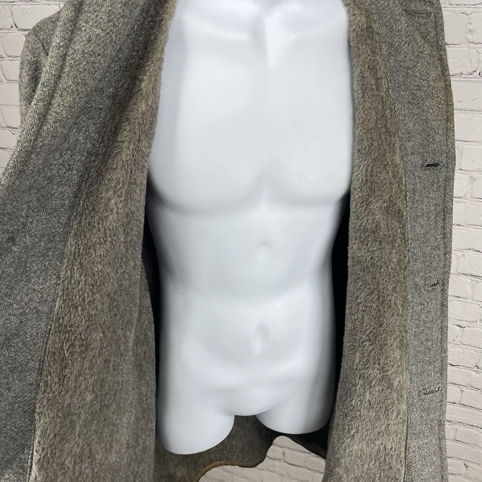 VTG Pendleton Grey Wool Buttoned Fur Lined Collared Coat USA Large L *defects