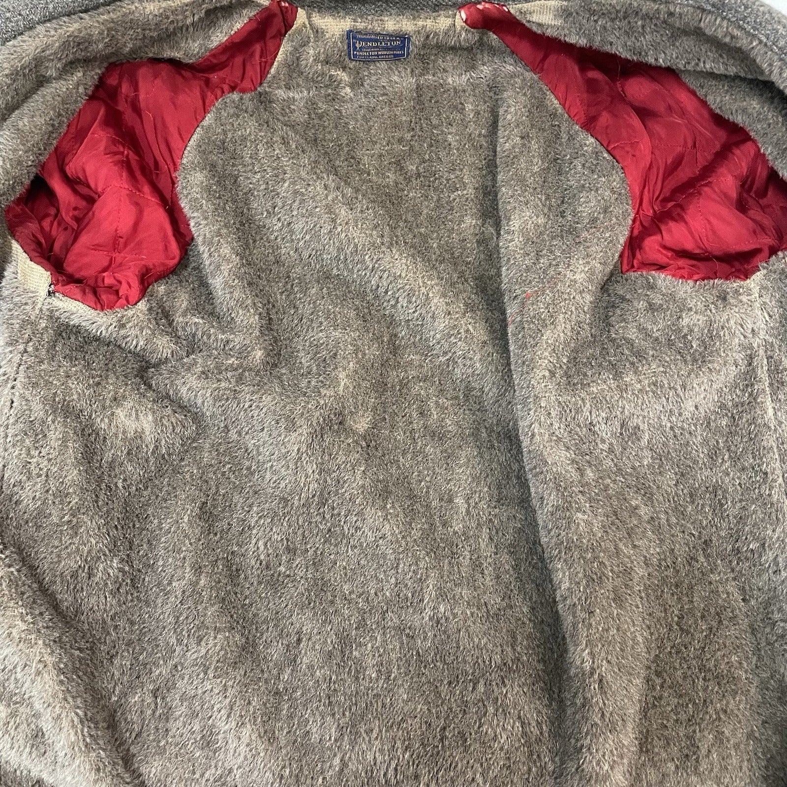 Embrace timeless style with this VTG Pendleton coat, a testament to classic American craftsmanship. The coat features a luxurious wool outer shell in a versatile gray, complemented by a fur-lined interior for unmatched warmth and comfort. Designed with a sharp aesthetic, the coat boasts a sophisticated collared design and secure button closure.