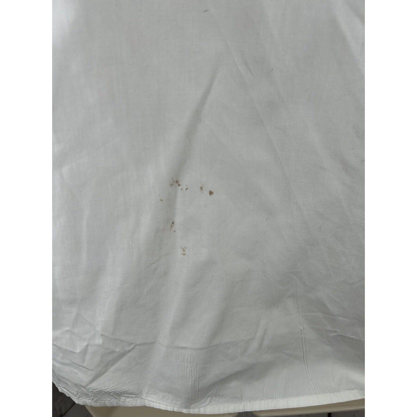 Faint stain on middle front right side and bottom front. Several stains on back of shirt. See photos for reference.