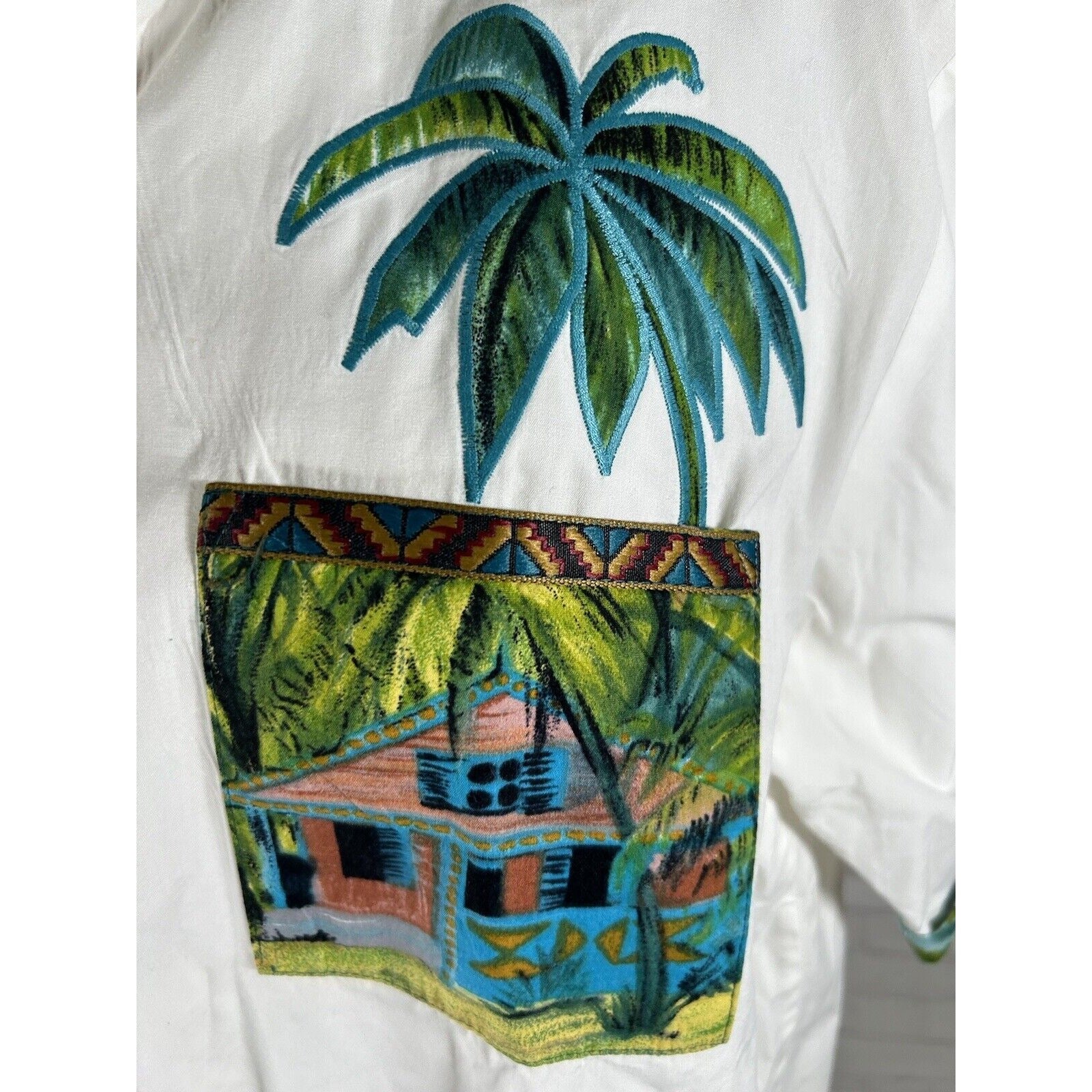 The XL size shirt is made of lightweight material and has pockets for added convenience. It is perfect for travel and casual occasions. The shirt is in excellent shape and has been well-maintained over the years. Don't miss out on the opportunity to own a unique and stylish piece of clothing from Pine Cove.