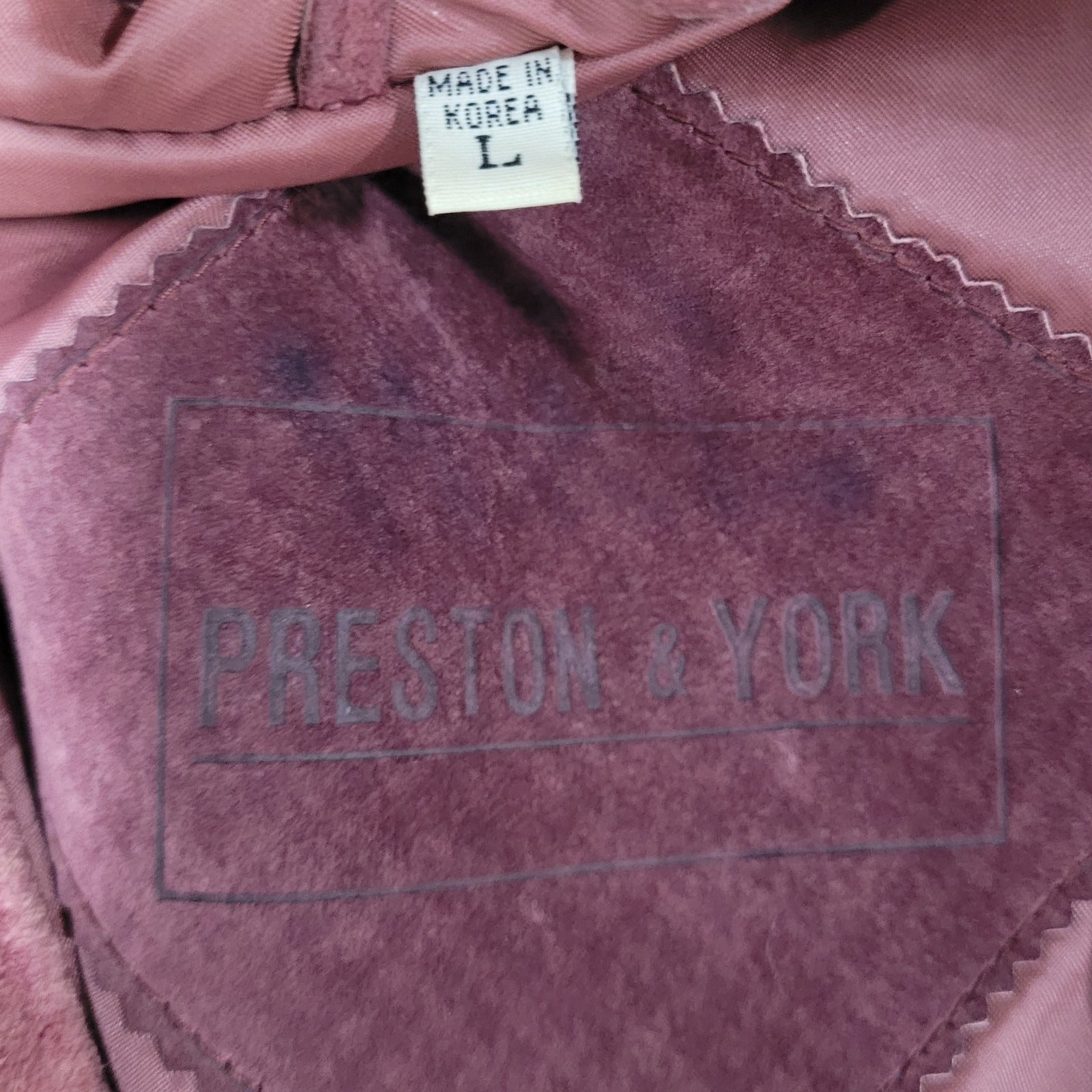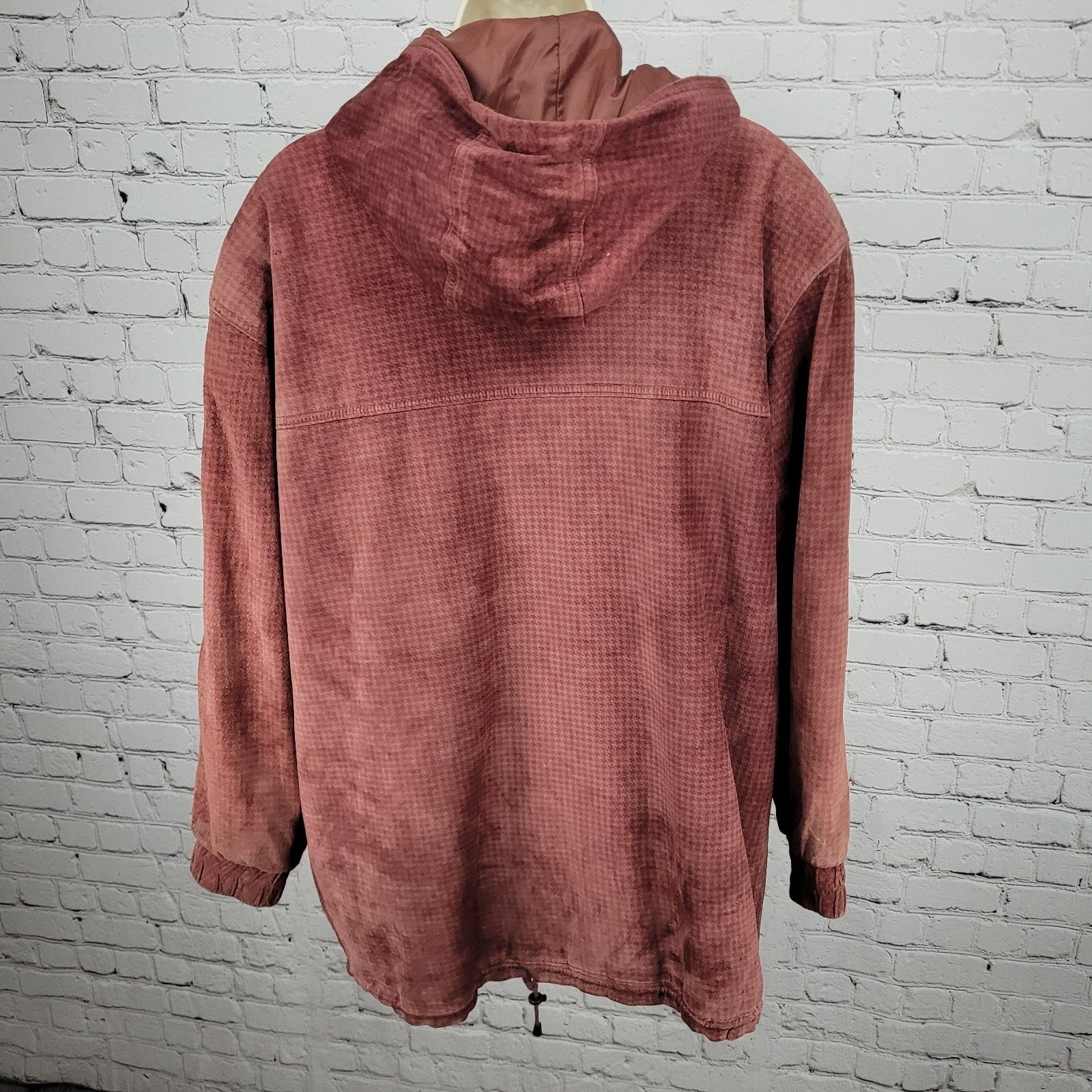 VTG Preston & York Red Genuine Suede Houndstooth Hooded Zip Jacket Large *zipper