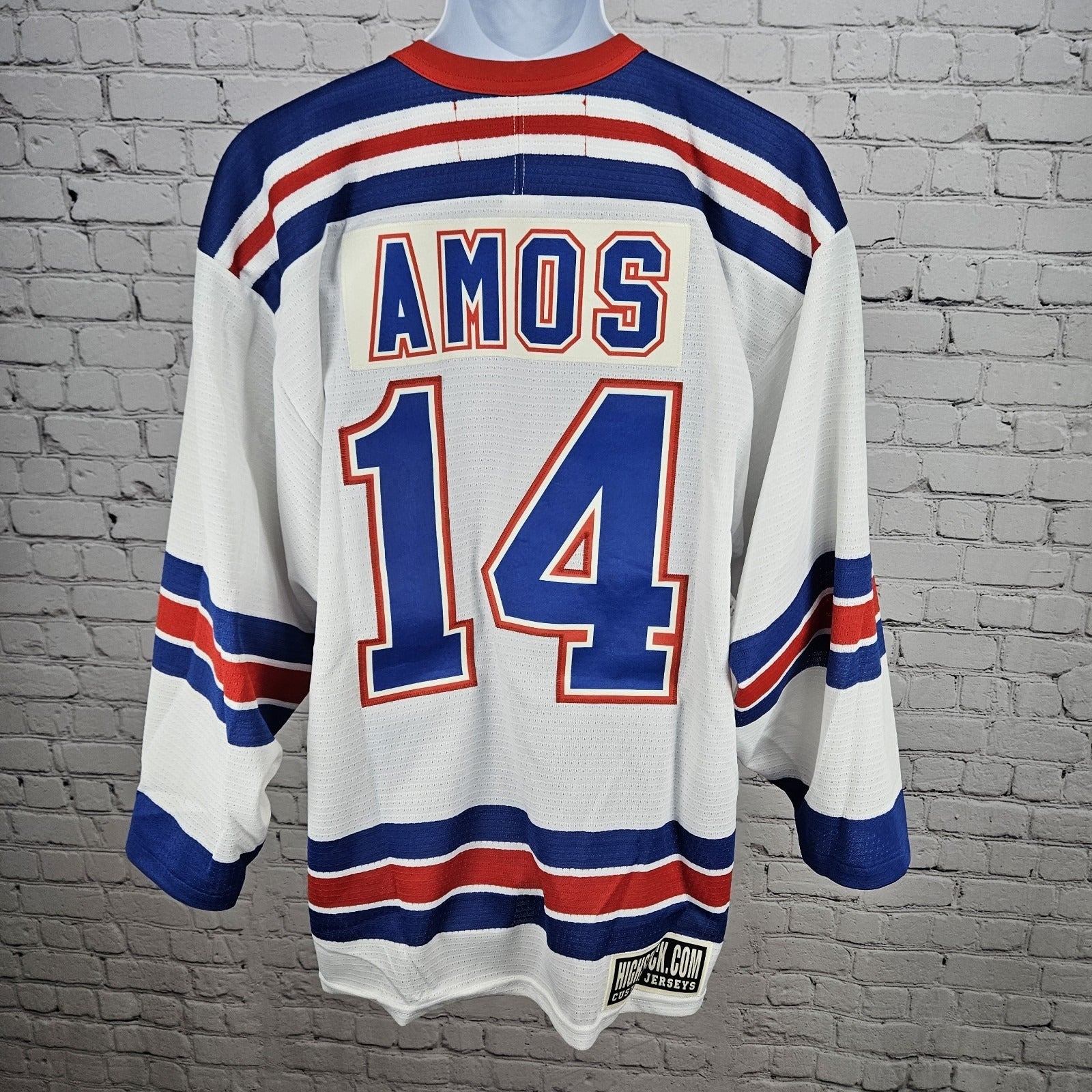 The VTG Puddle Jumpers Hockey Club Amos 14 Highstick Flo Knit Jersey in size Medium is a vintage hockey jersey featuring the unique design of the Puddle Jumpers Hockey Club. Made with a comfortable knit fabric, this jersey is perfect for fans of hockey looking to show their support for their favorite team. With a Medium size, this jersey is designed to fit most adult hockey enthusiasts comfortably during games or casual wear.