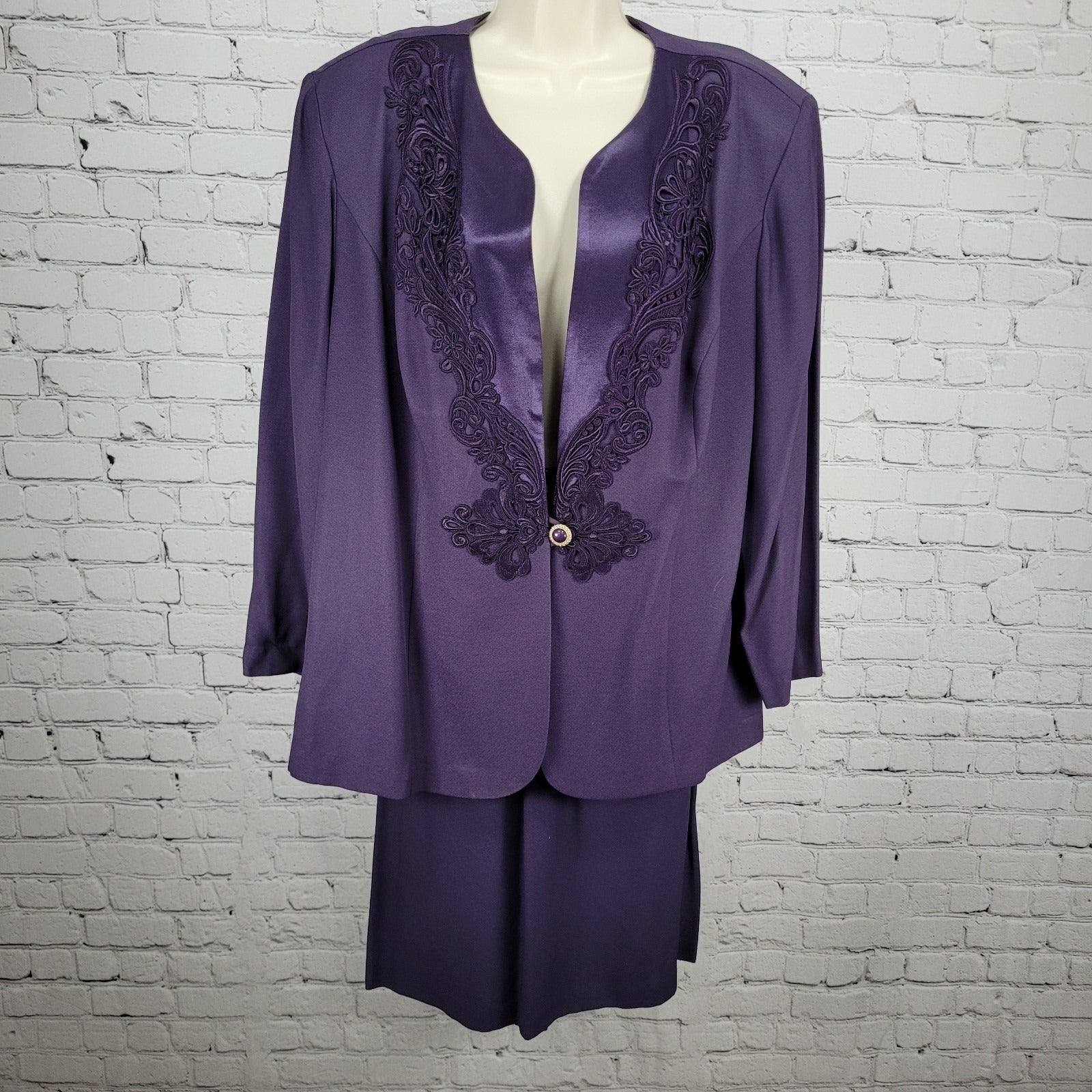 VTG R&M Richards Purple Skirt Suit Outfit 2 Piece Set USA Made Size 22W