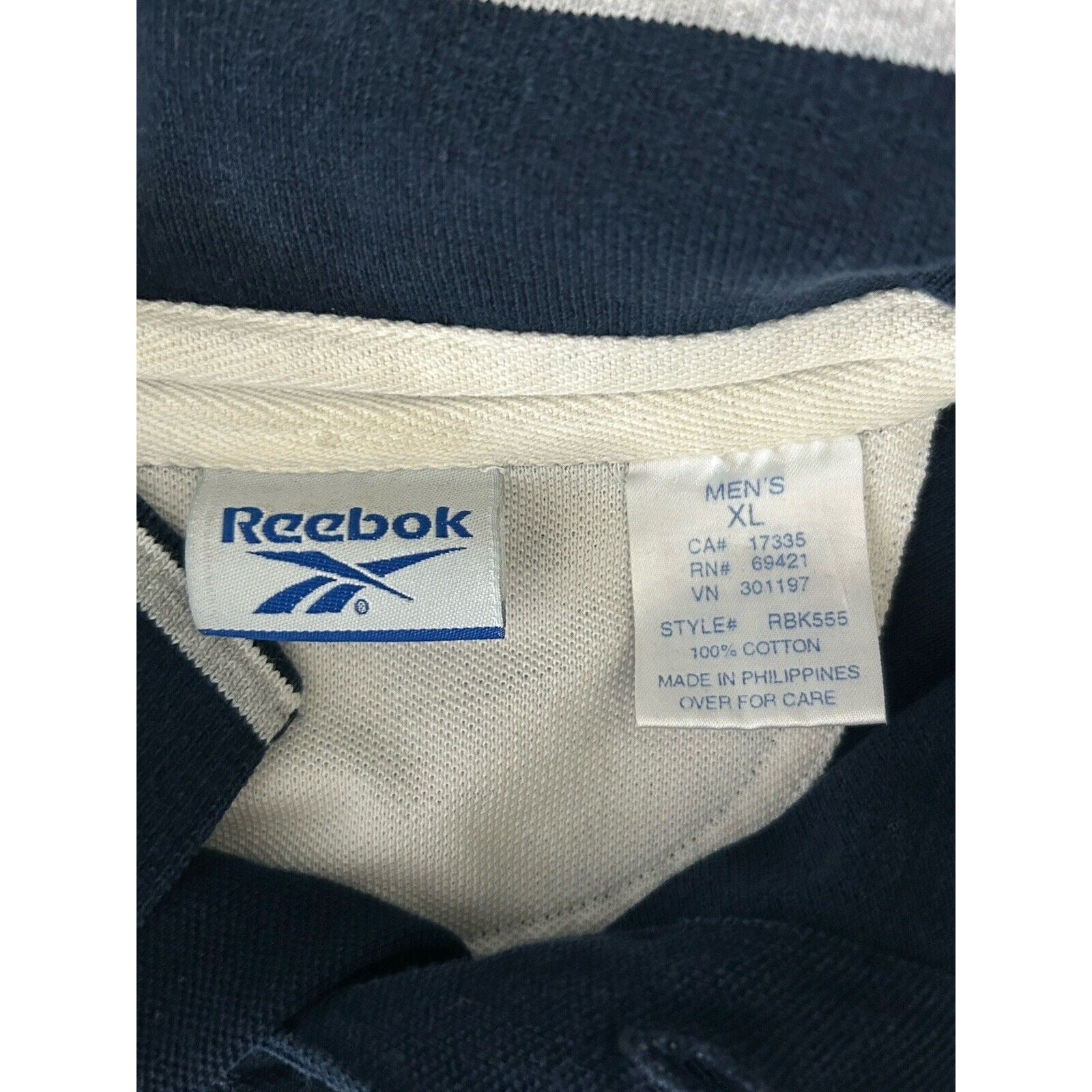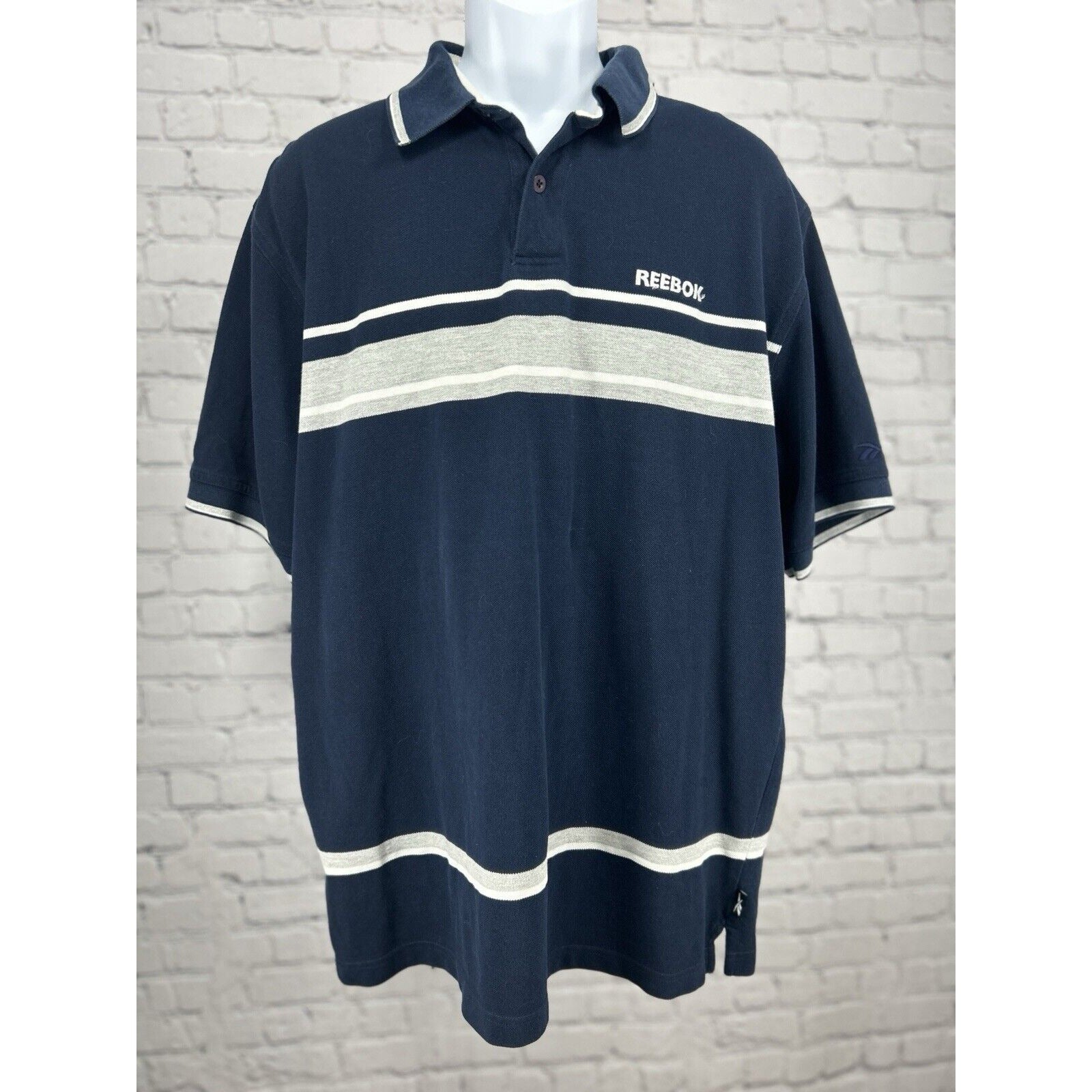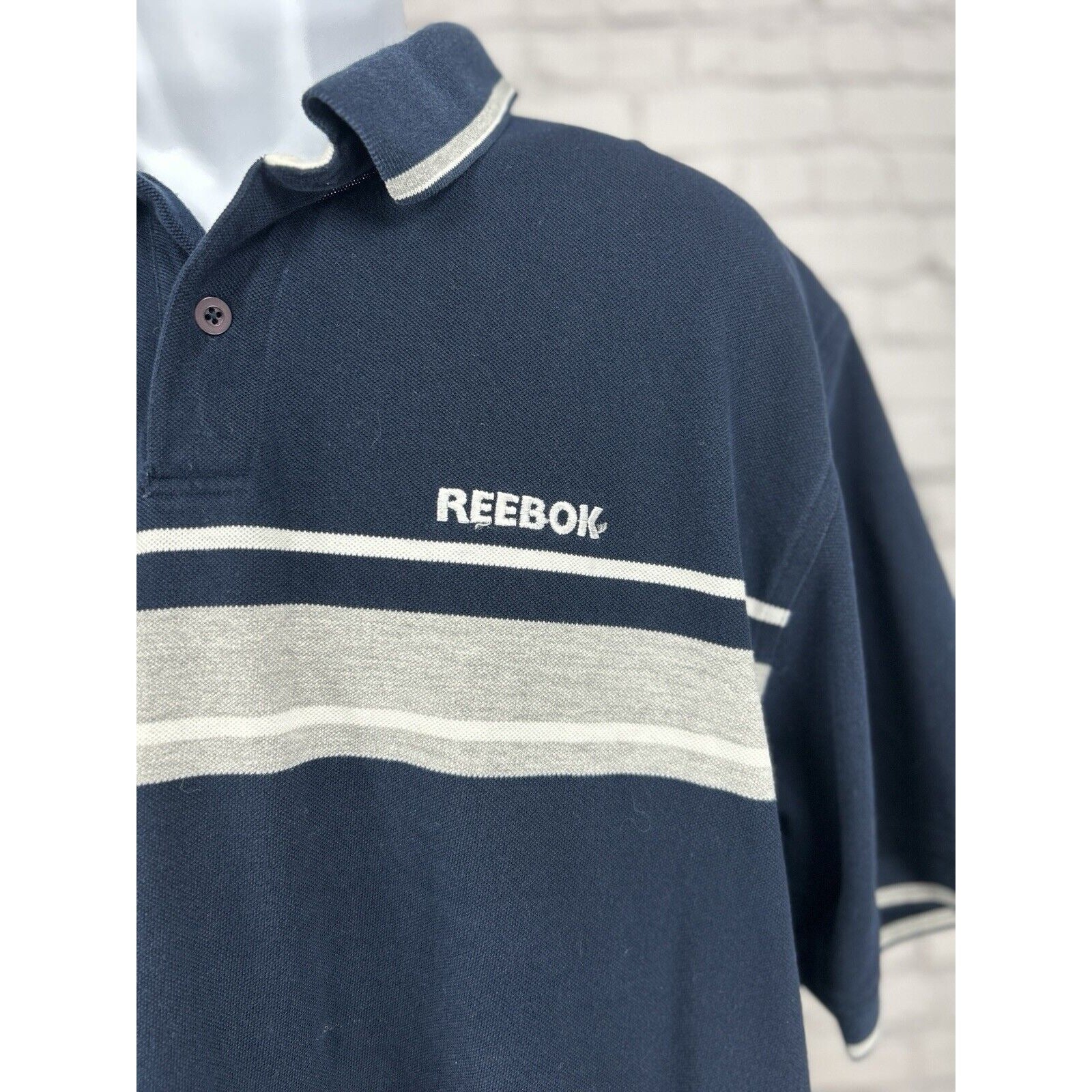 VTG Reebok Blue Gray 100% Cotton Short Sleeve Striped Collared Mens Polo Size XL