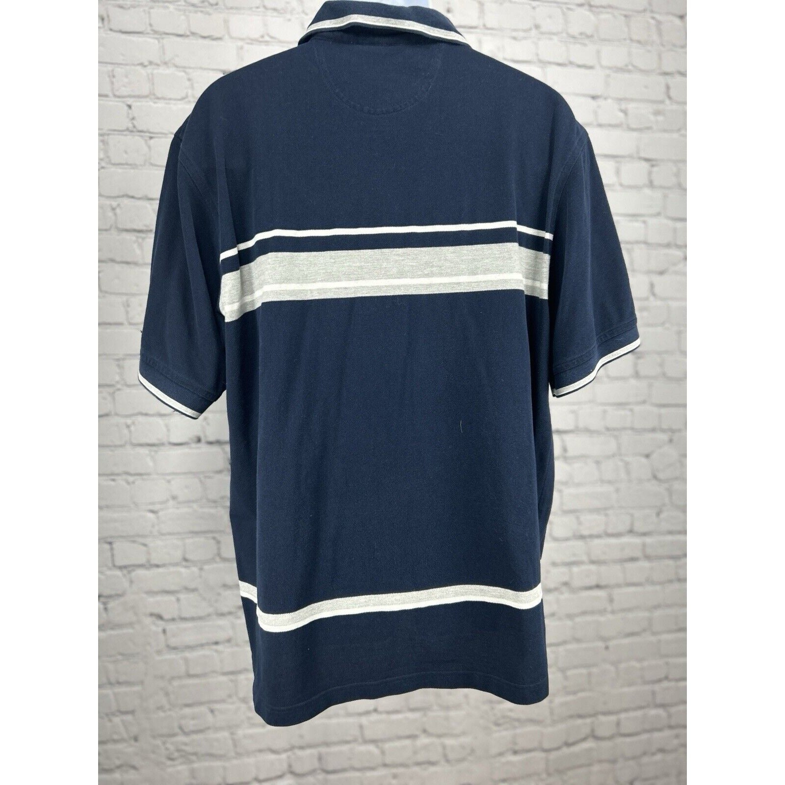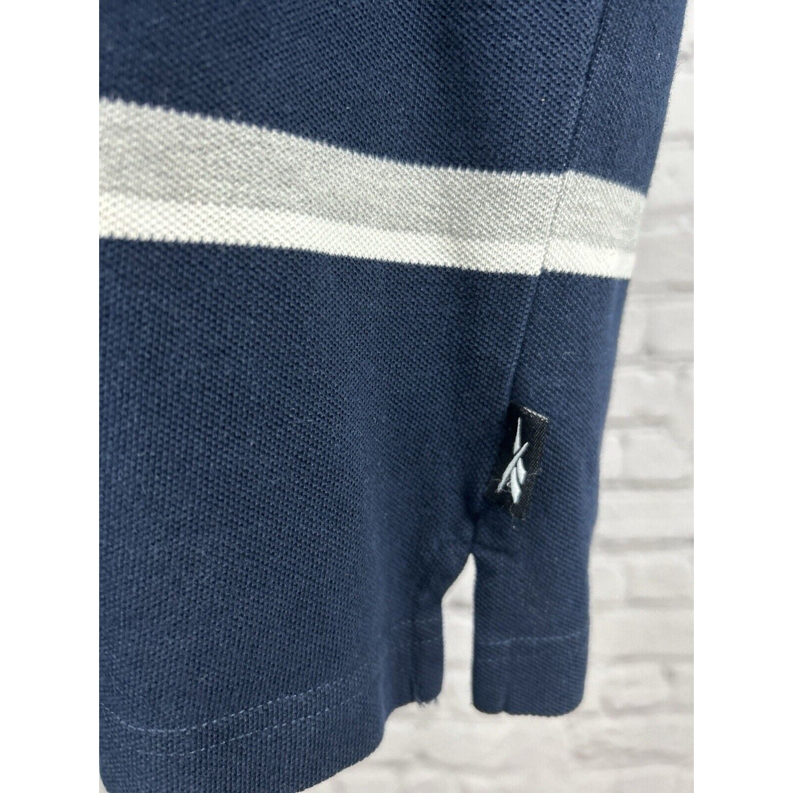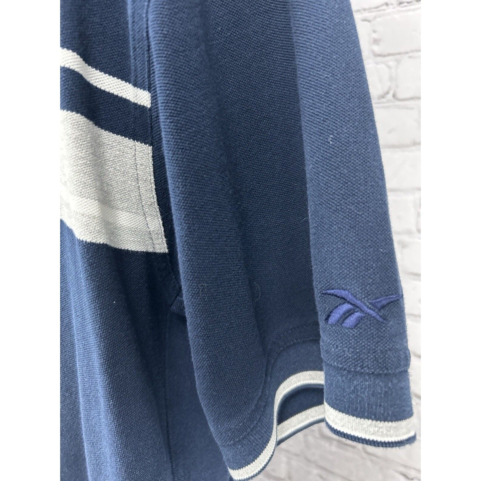 VTG Reebok Blue Gray 100% Cotton Short Sleeve Striped Collared Mens Polo Size XL