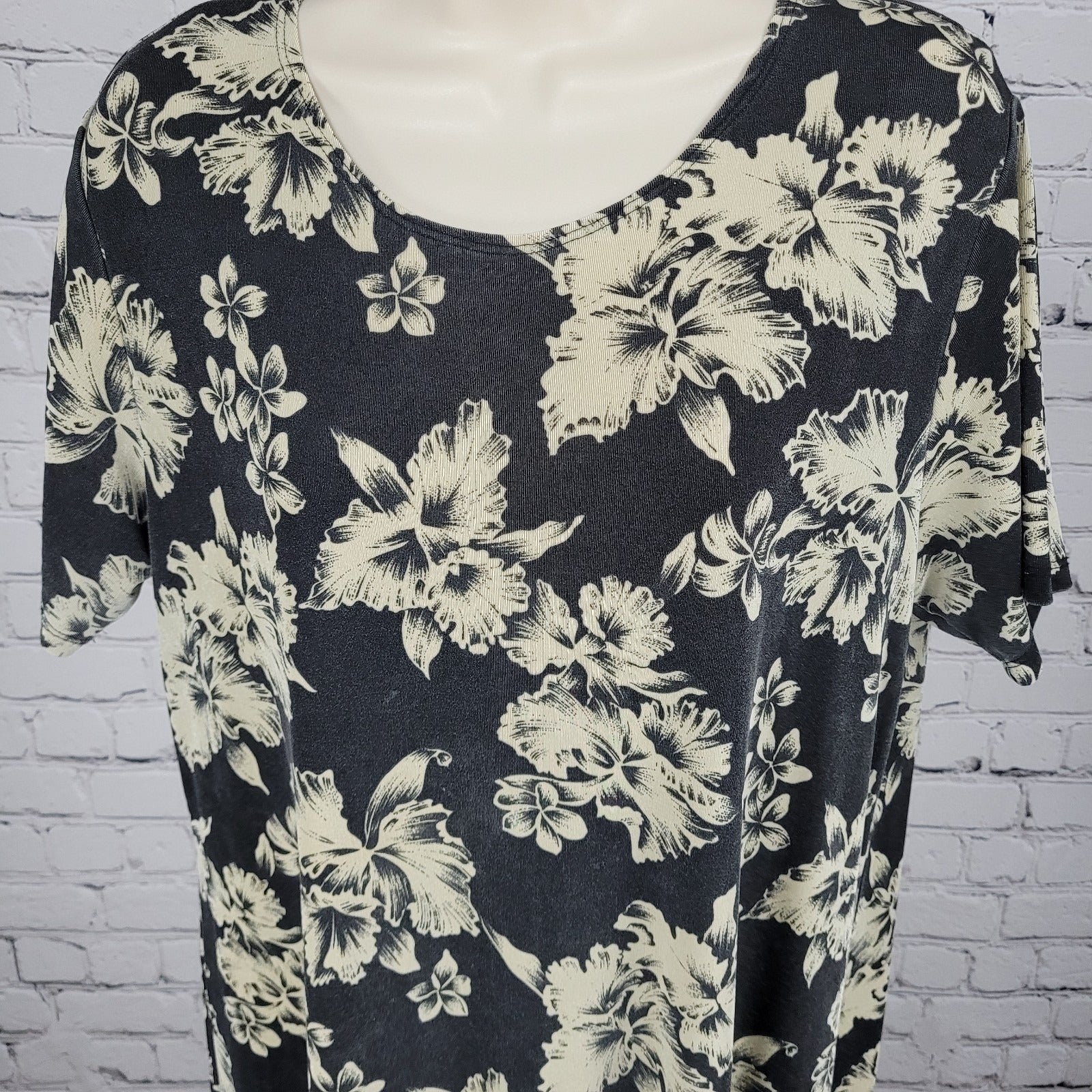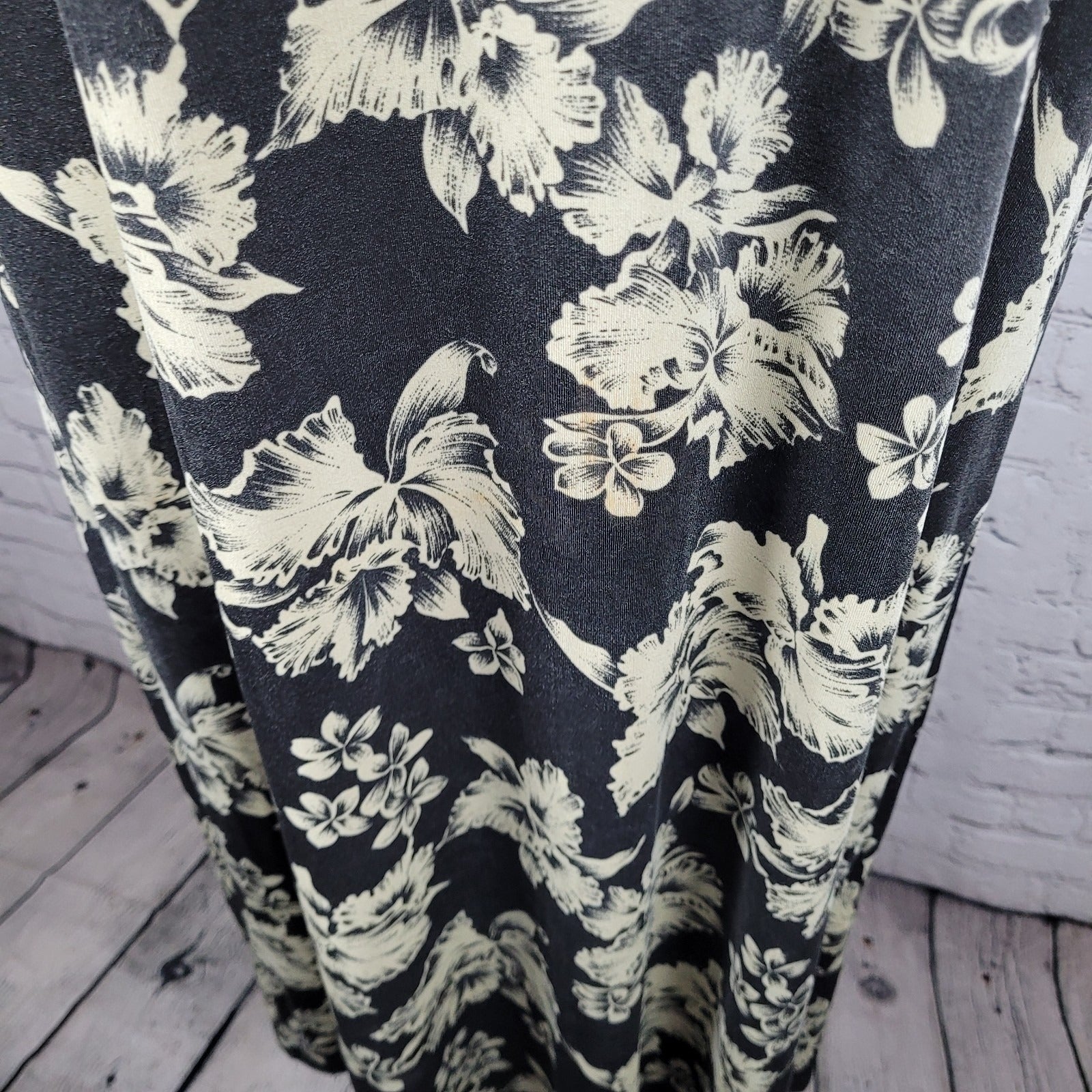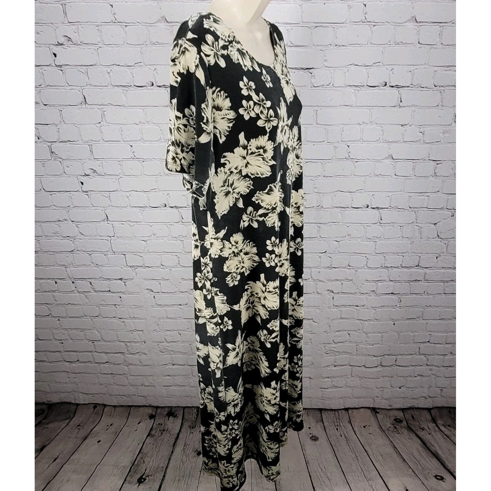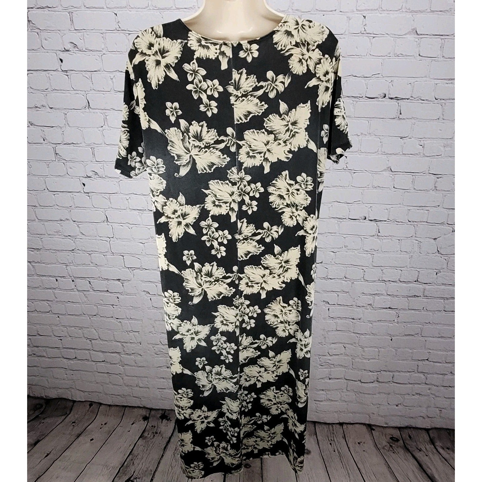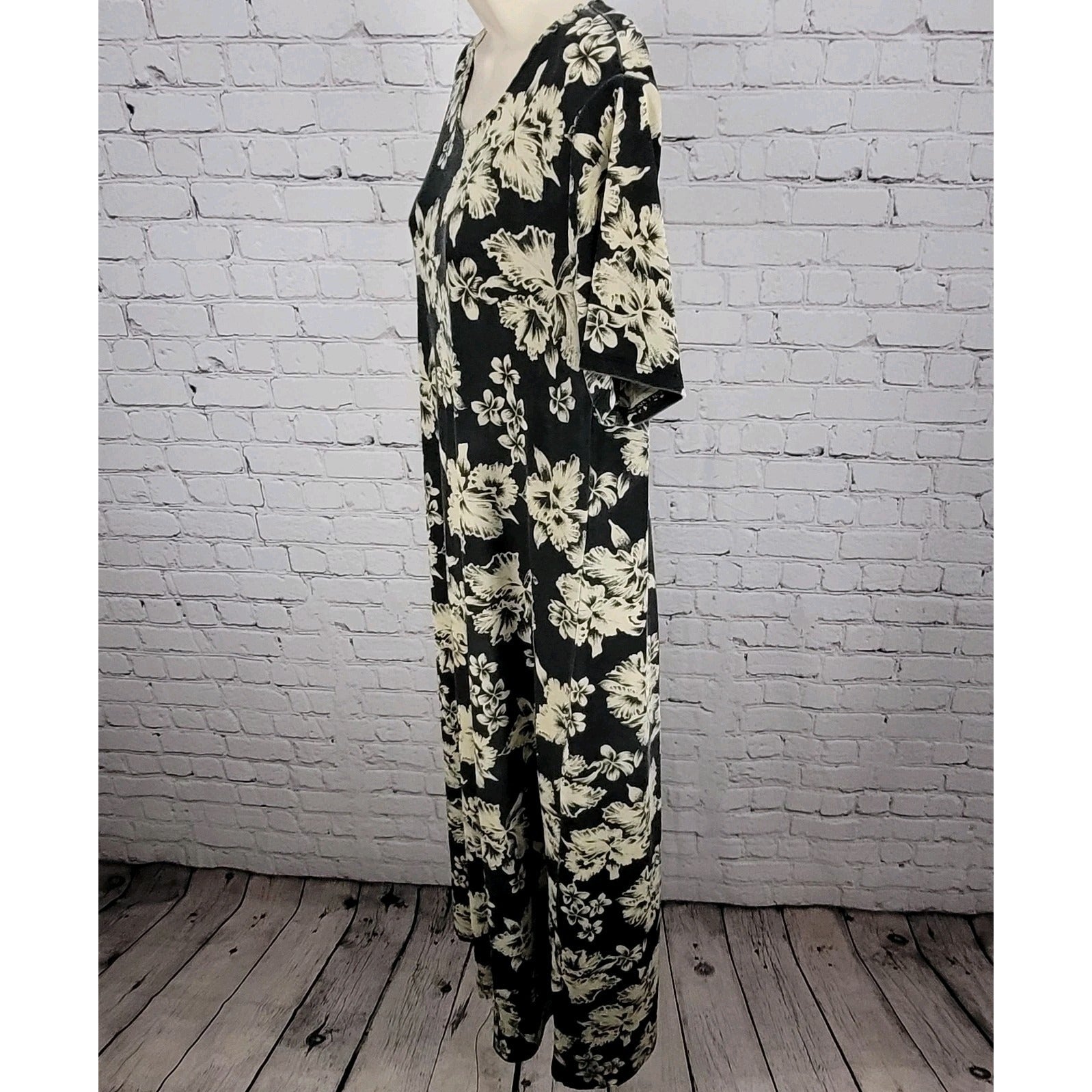 VTG Royal Creations Black & Ivory Tropical Floral Made In Hawaii Dress Size XL