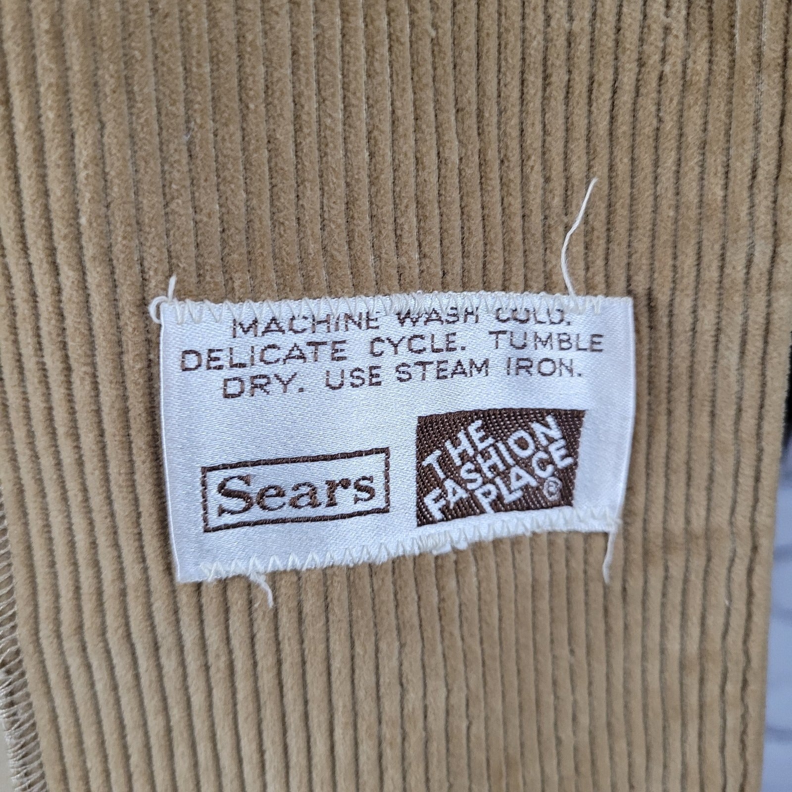 VTG Sears Brown Corduroy Buttoned Unlined Notch Blazer Jacket Size Medium M