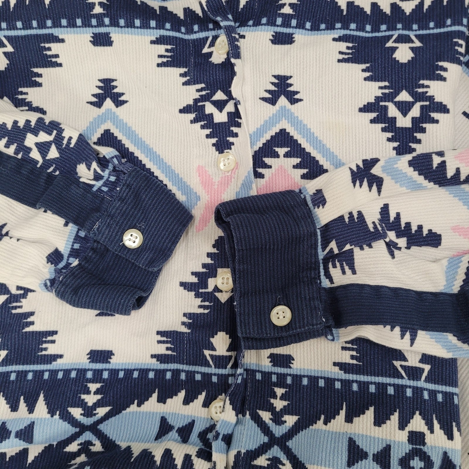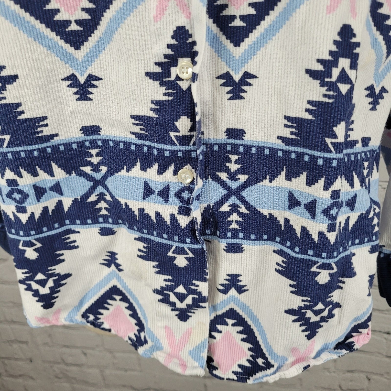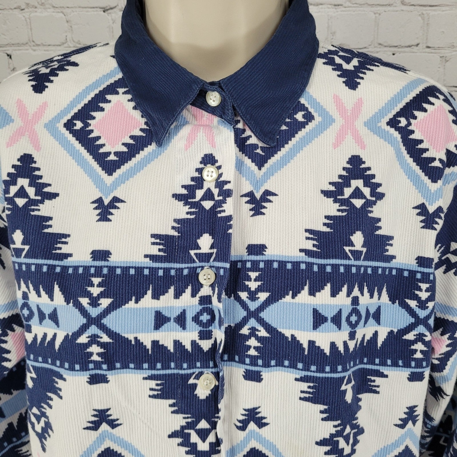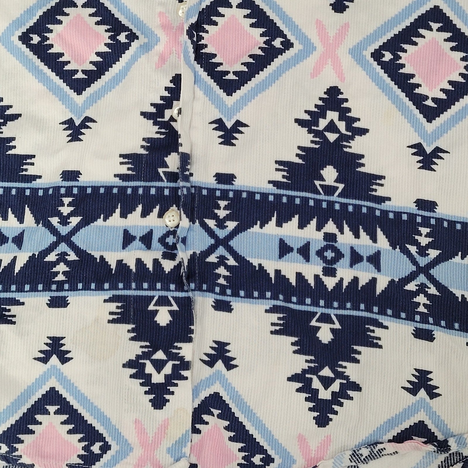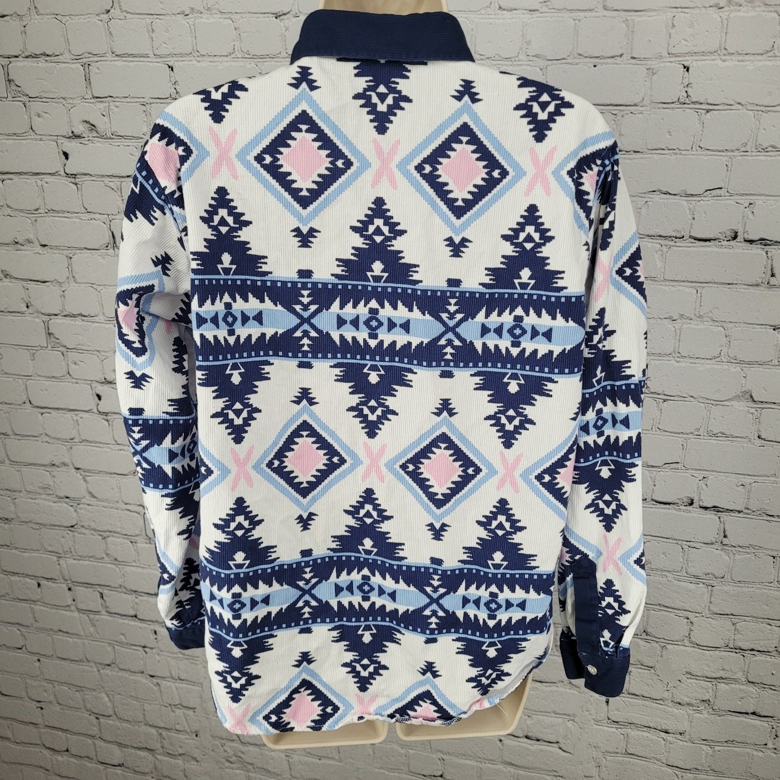 VTG Southeast Canyon Blue Pink Aztec Cotton Corduroy Button Up Shirt Large L