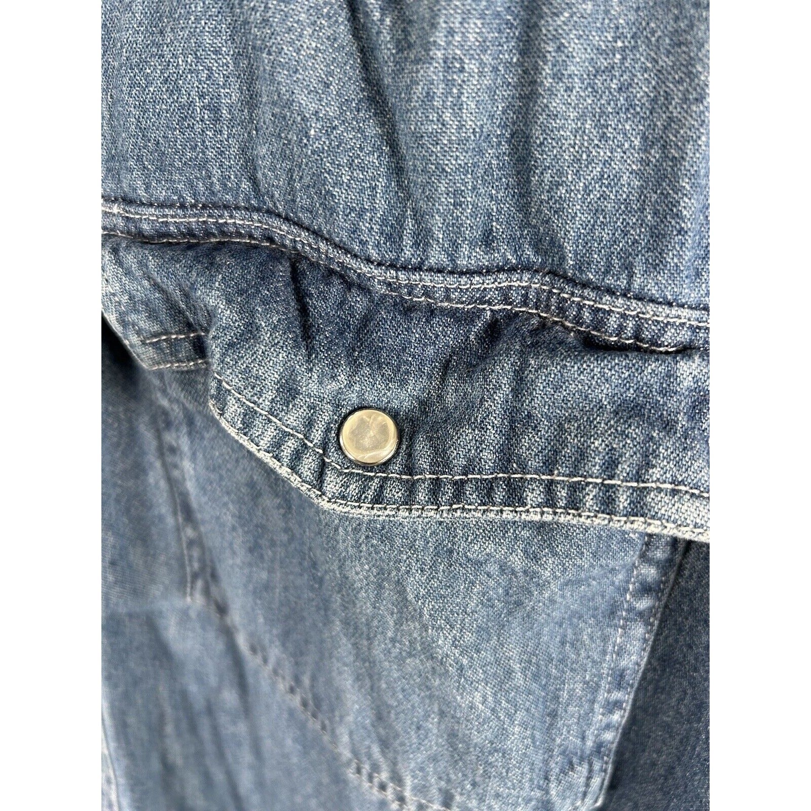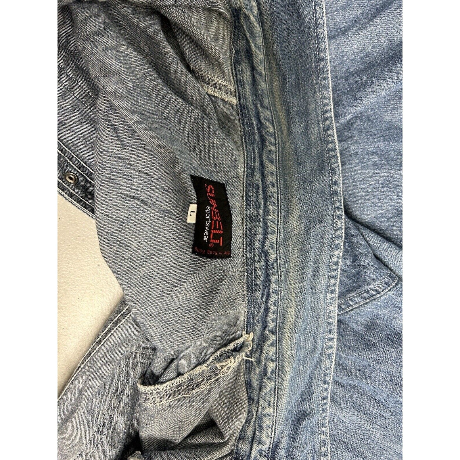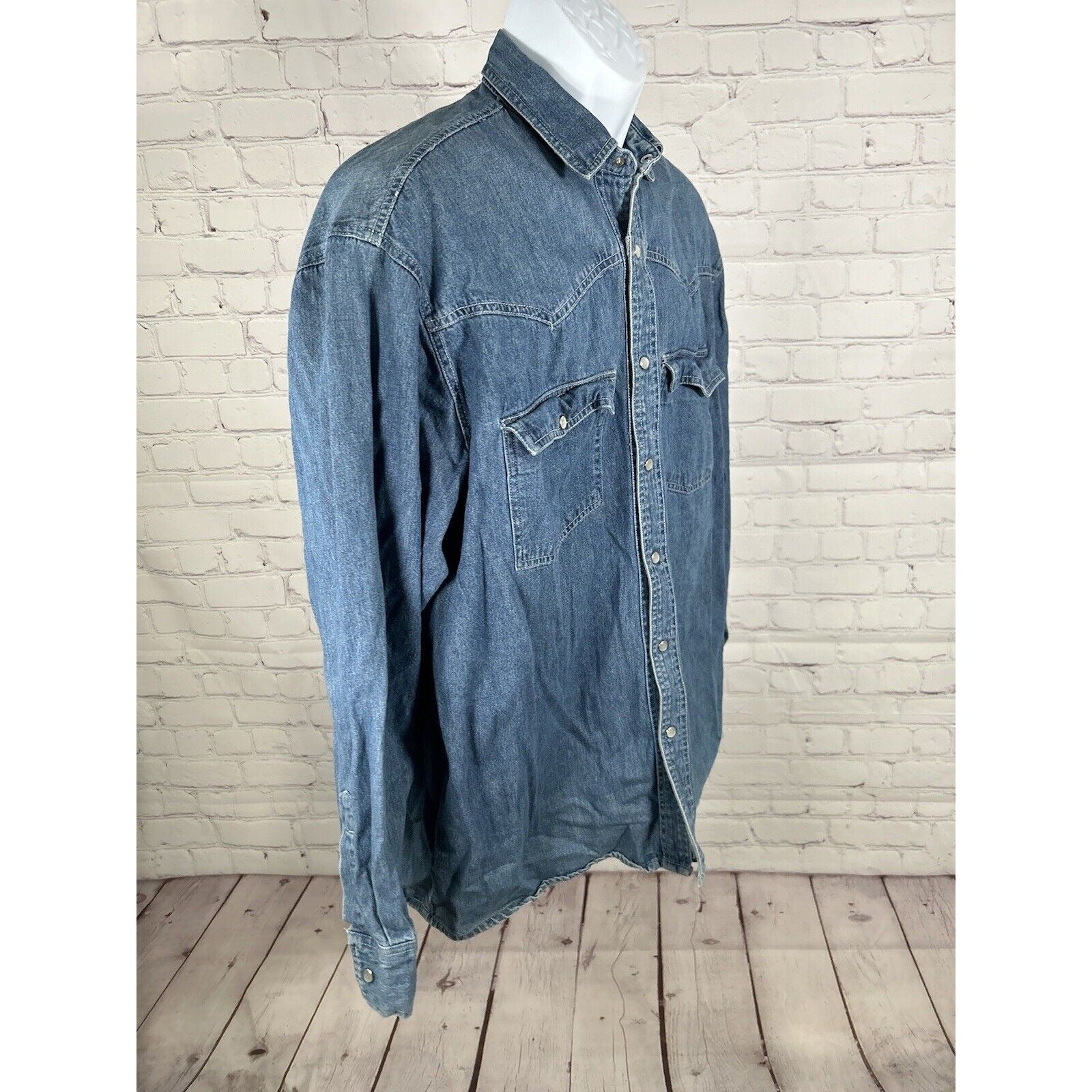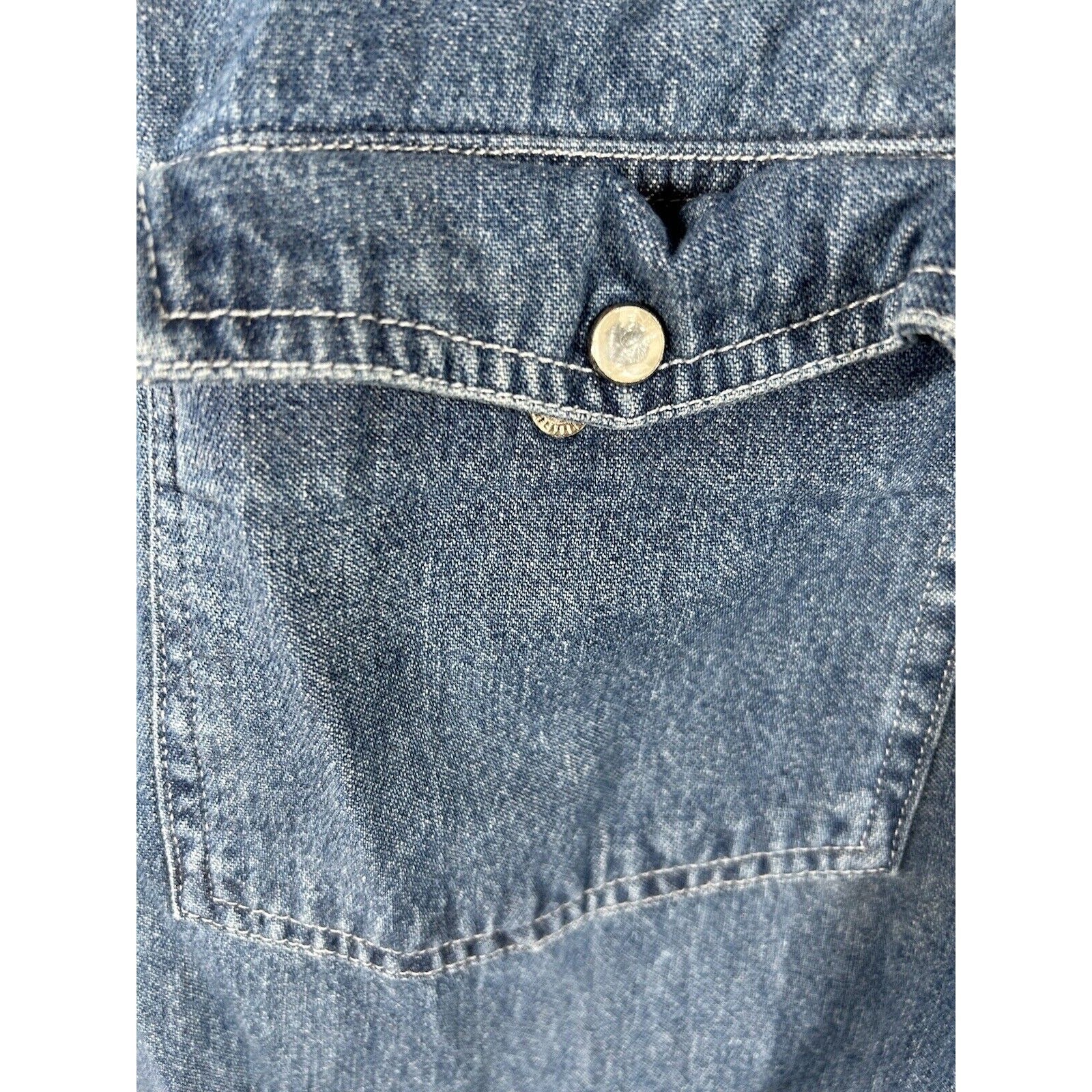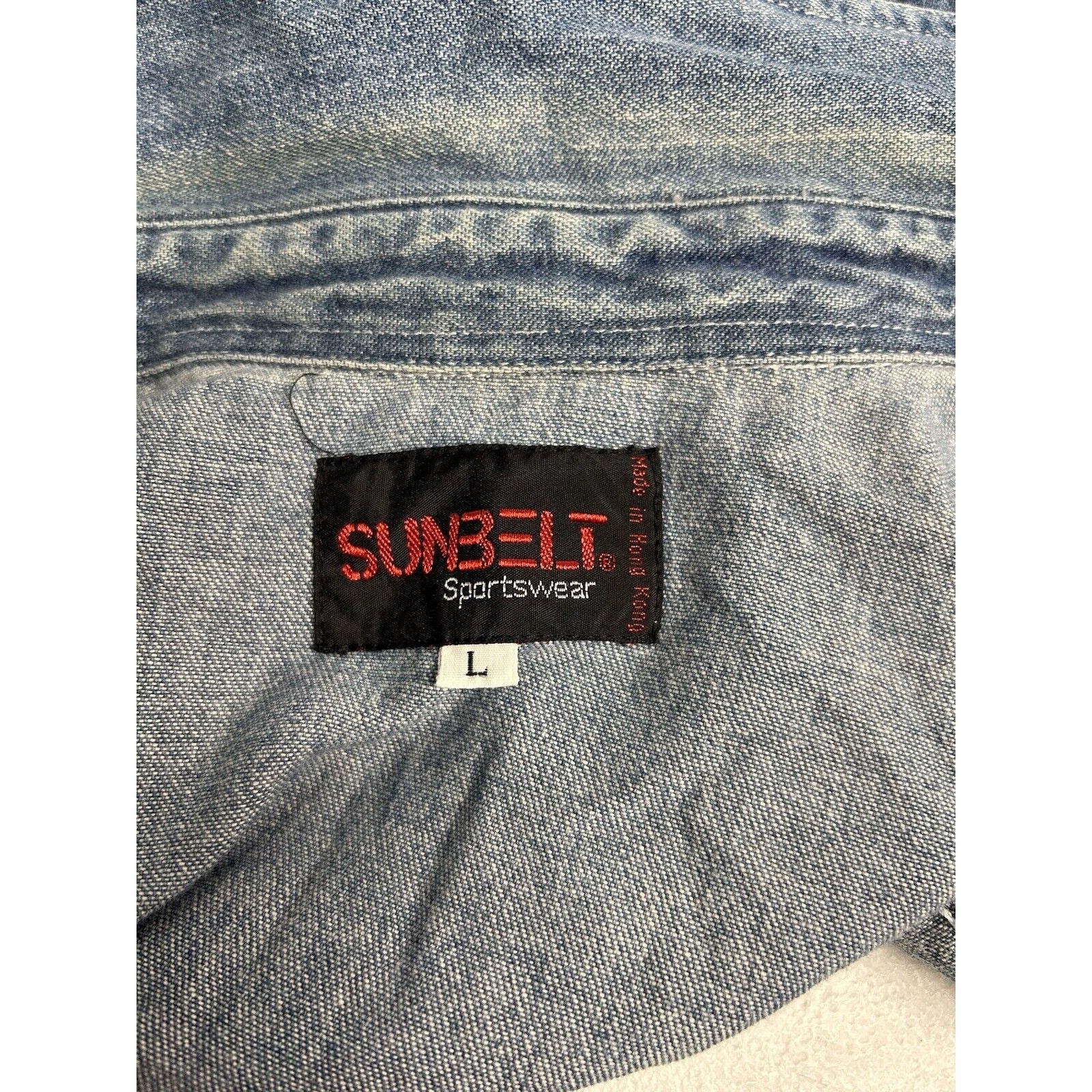 VTG Sunbelt Sportswear Medium Wash Long Sleeve Pearl Snap Button Up Shirt Men L