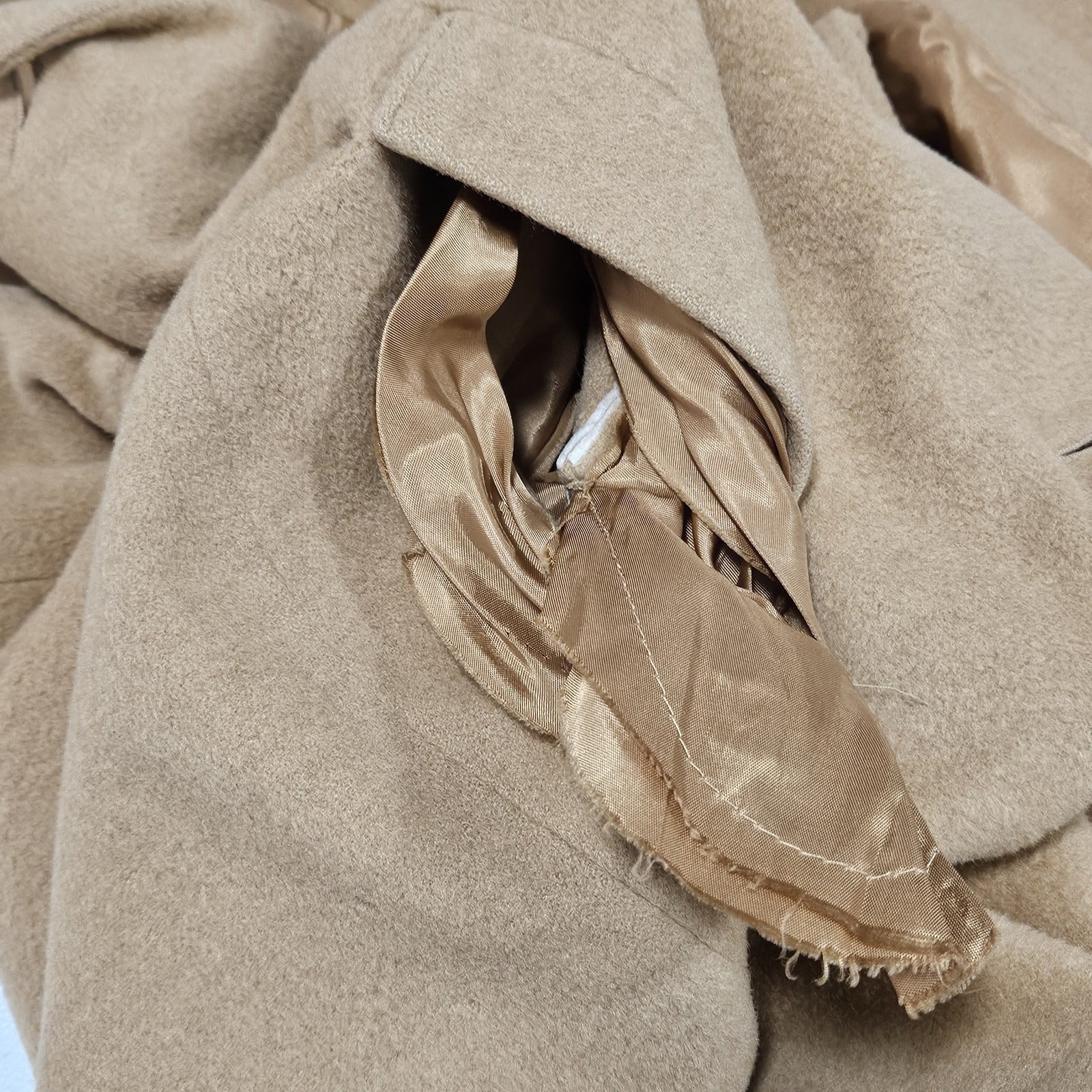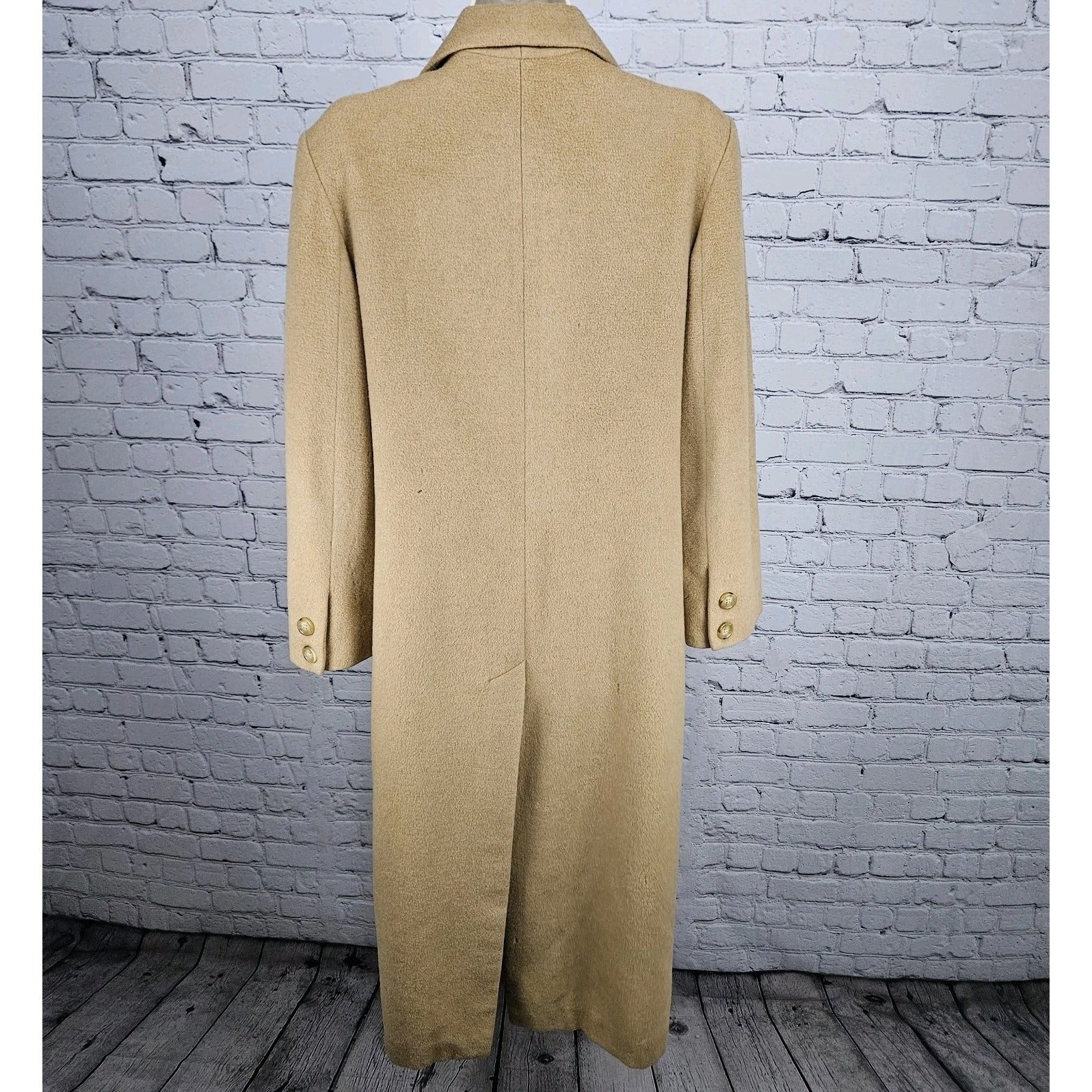 VTG Tan 100% Camelhair Buttoned Vented Long Over Coat Trench USA Medium M