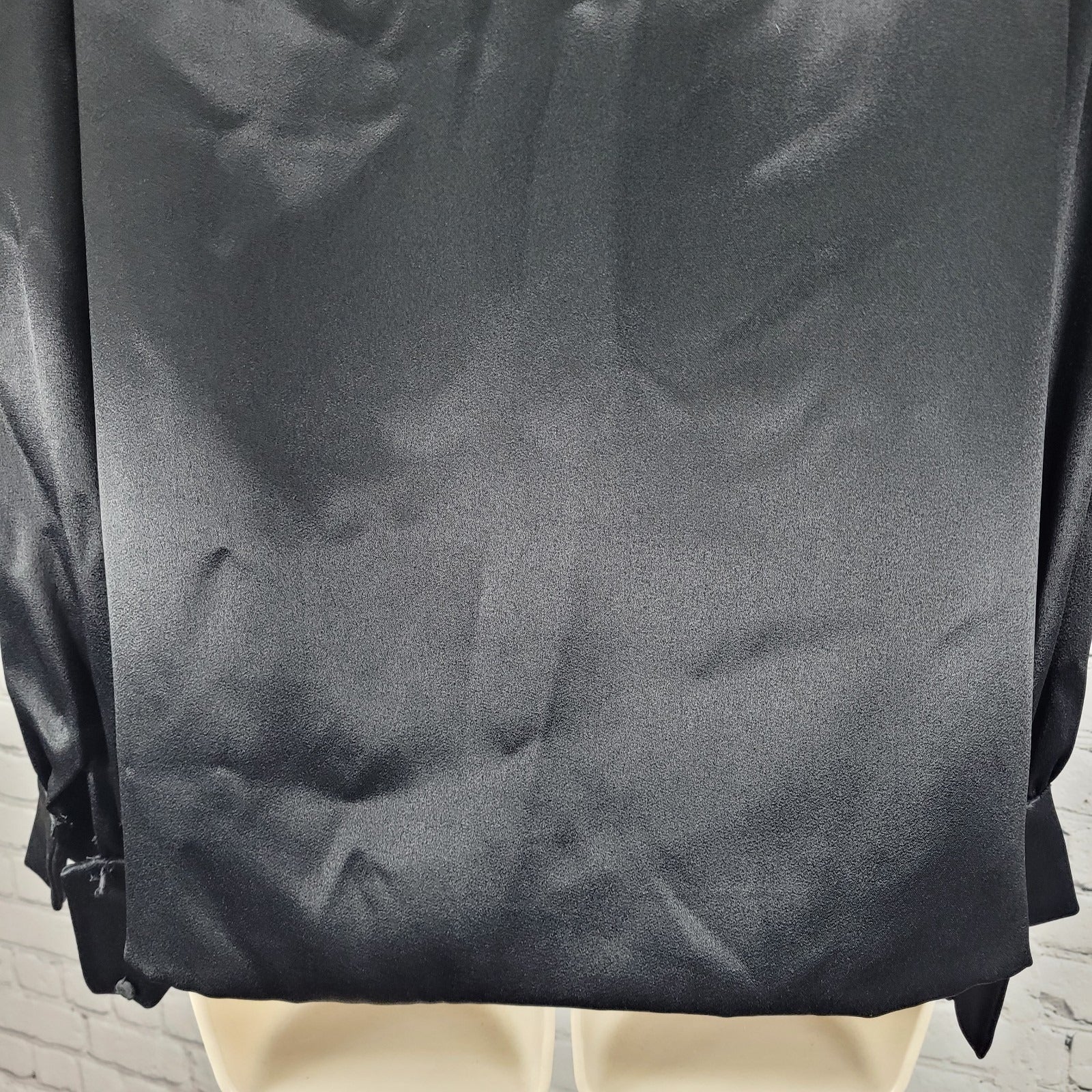 VTG Unbranded Black Satin Button Up Long Sleeve Blouse USA Union Made Size 14