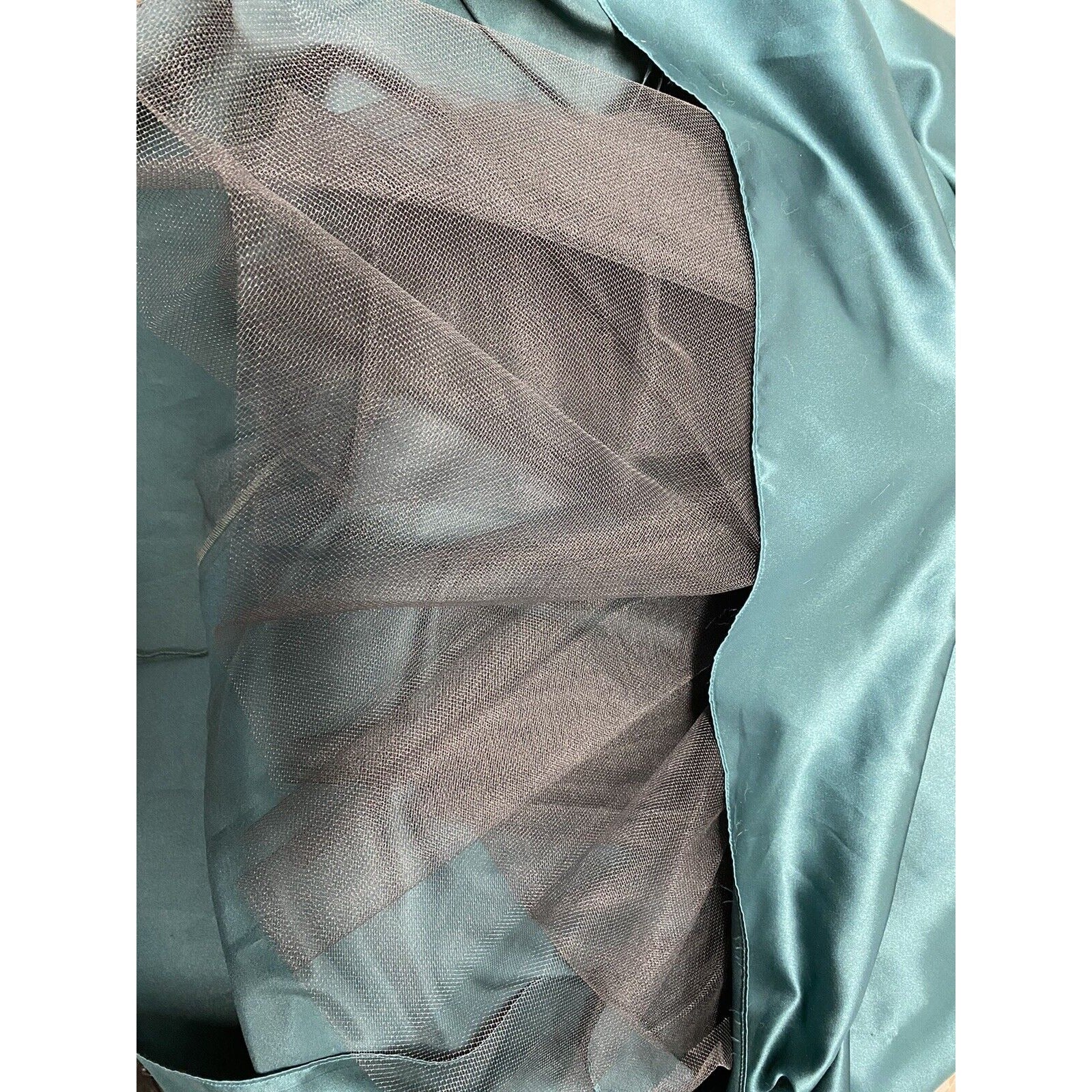 No material type, brand name, or size tags. Hook for hook and eye closure is missing. Several small defects (scratches/ stains) on skirt of dress. See photos for reference.