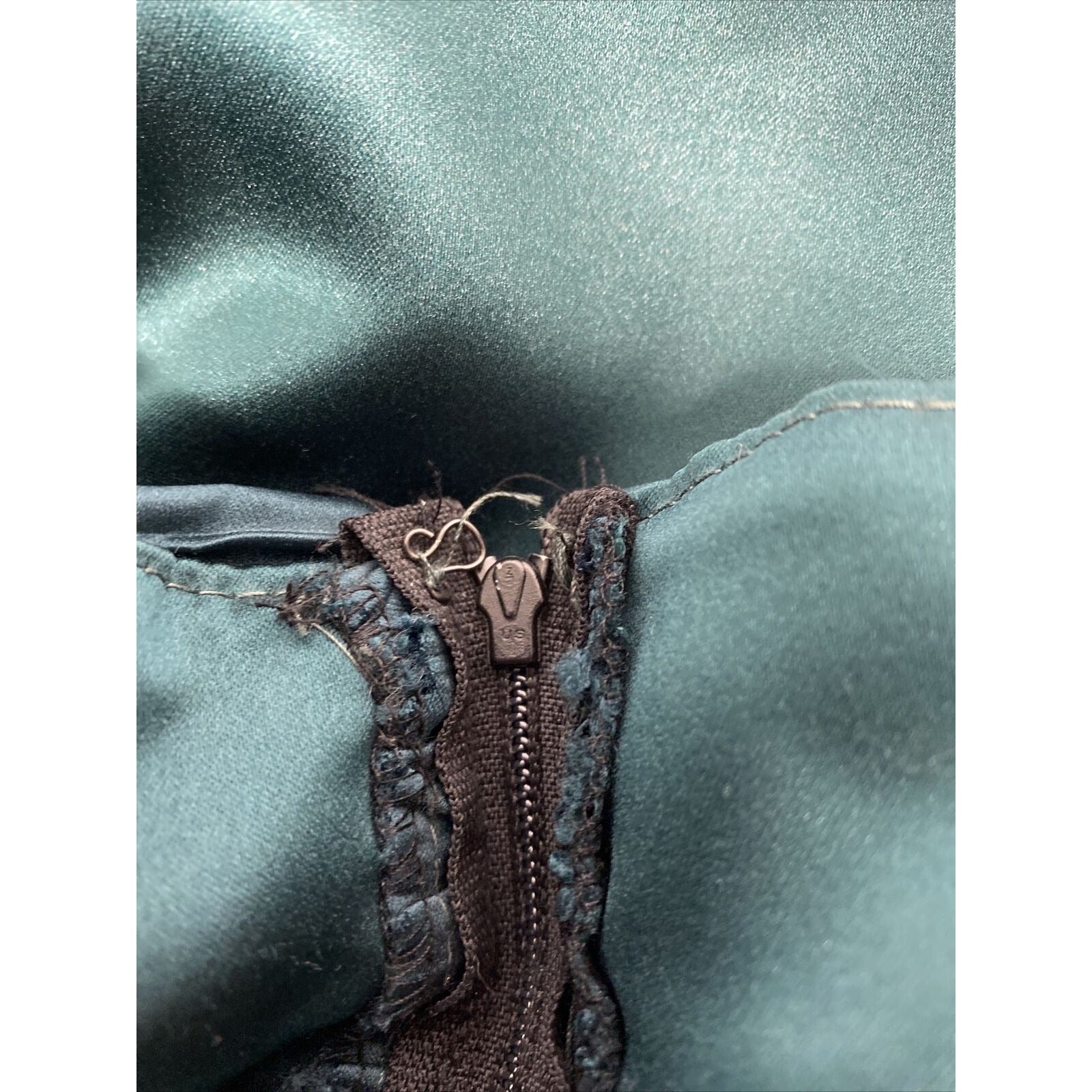 VTG Unbranded Black Velvet Metallic Green Off Shoulder Prom Dress USA 4/XS READ