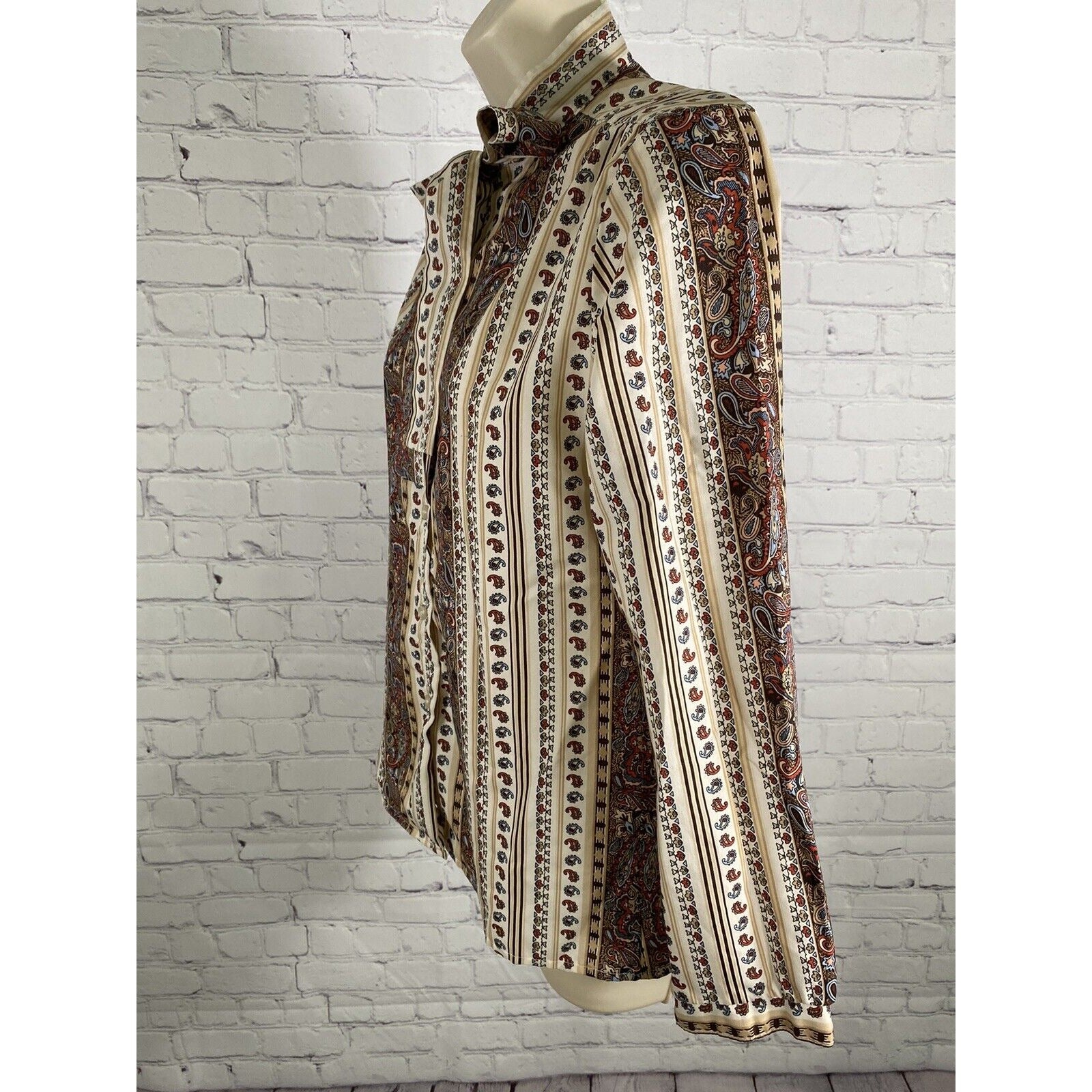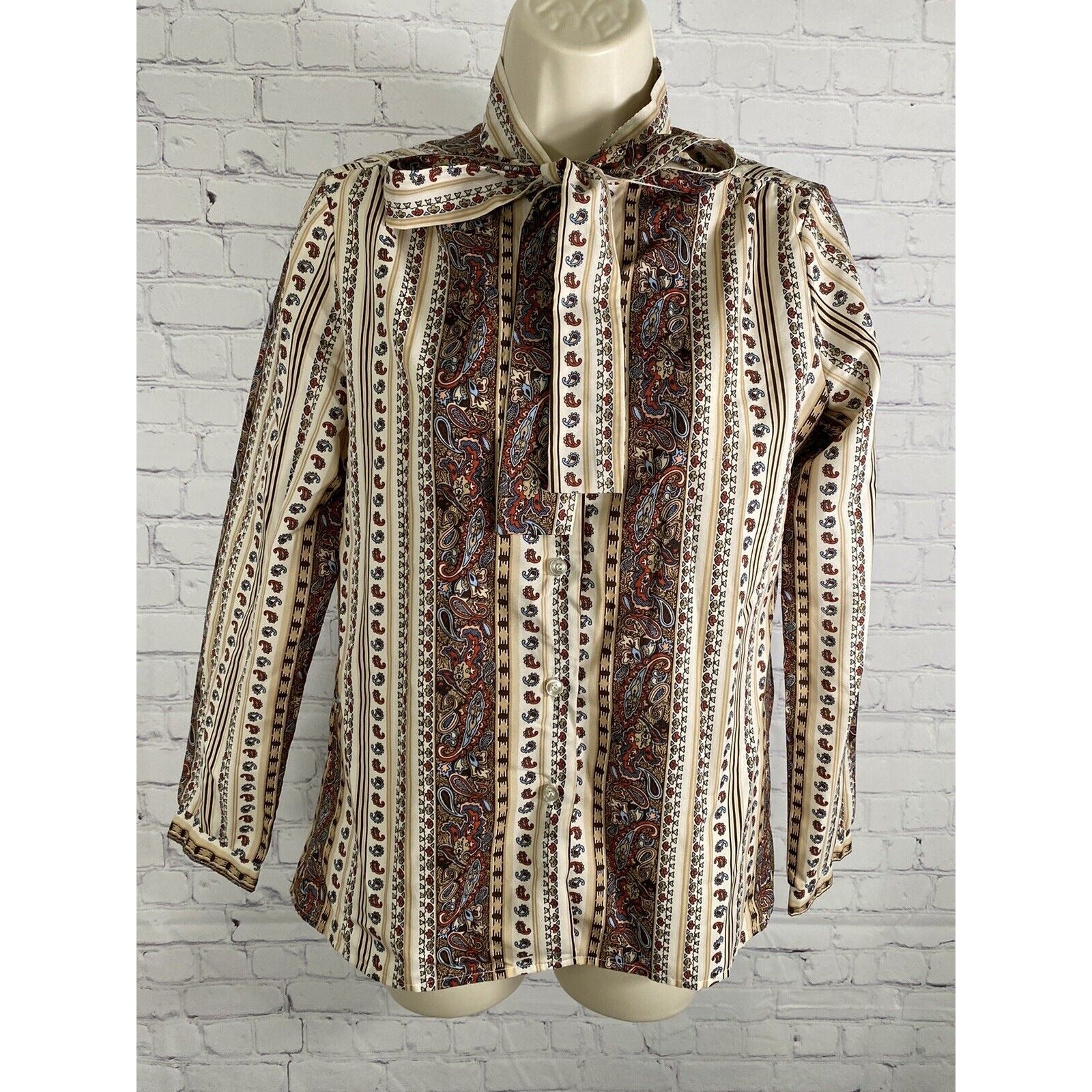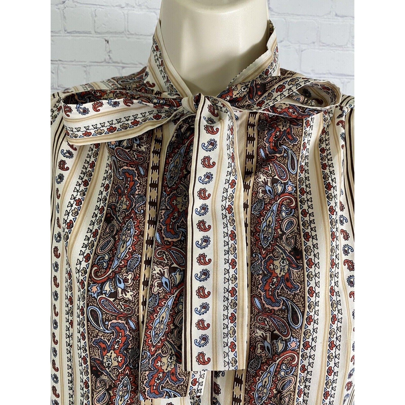 VTG Unbranded Multicolored Long Sleeve Paisley Button Up Neck Tie Blouse Medium