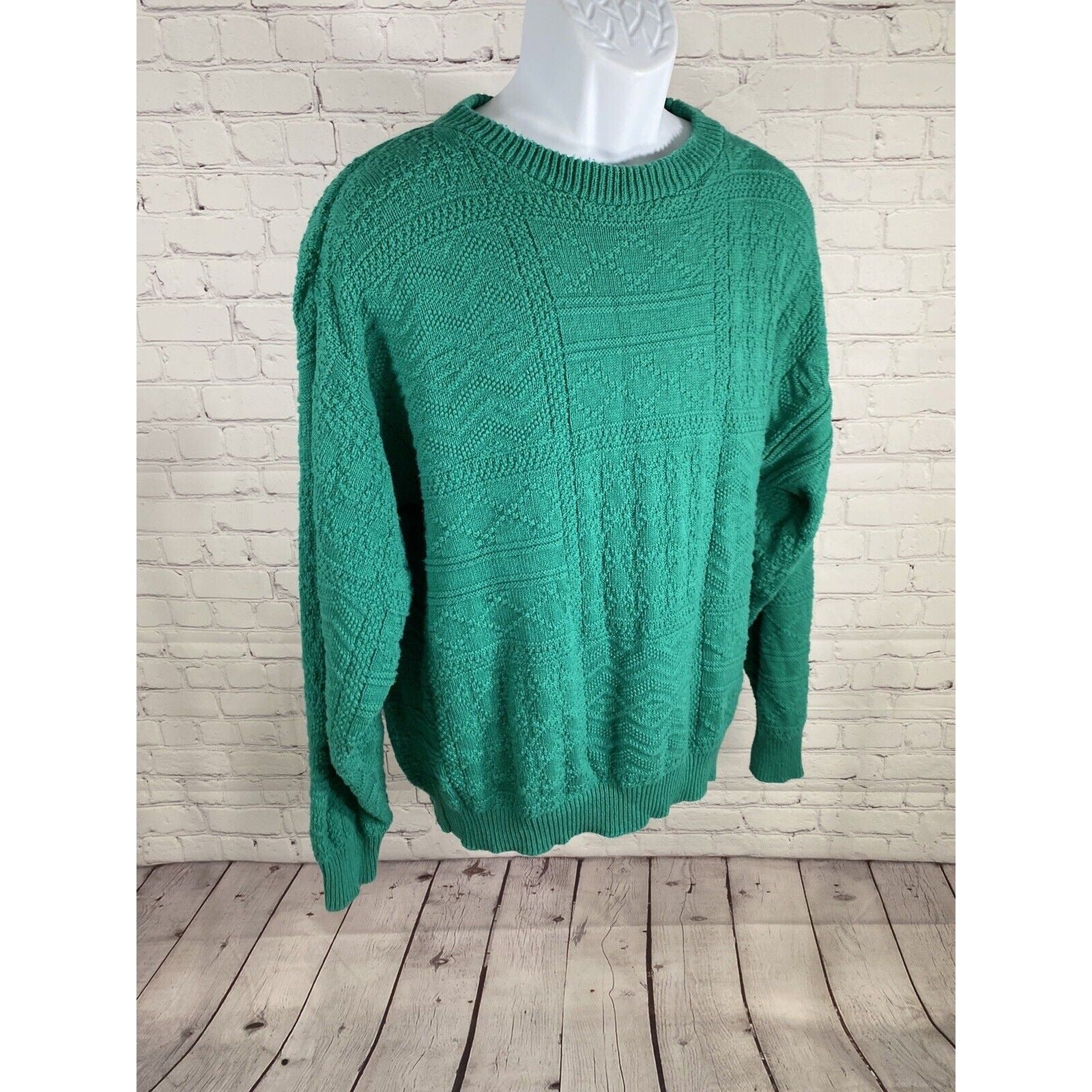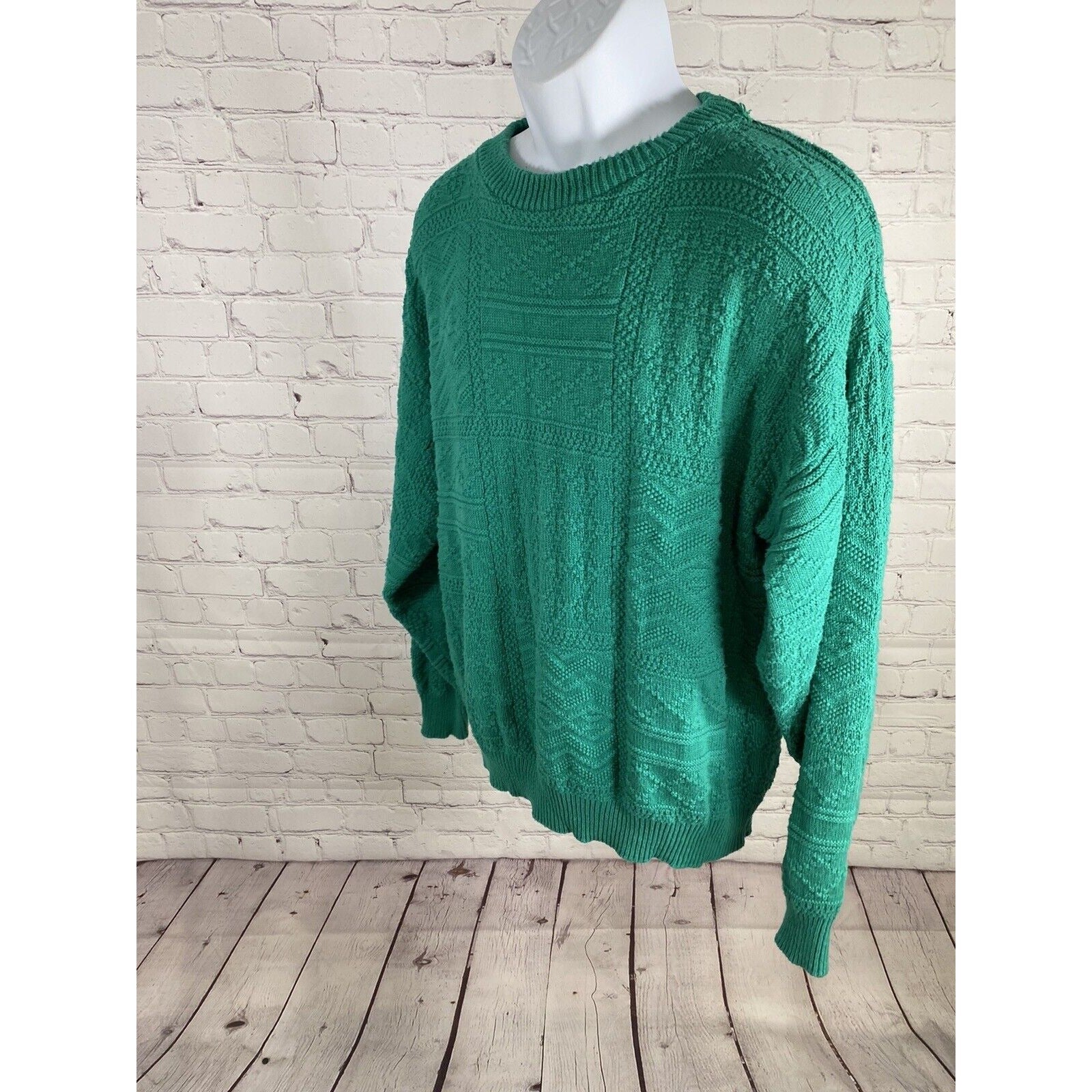 VTG Victoria Dry Goods 100% Cotton Green Chunky Knit Pullover Sweater Men’s XL