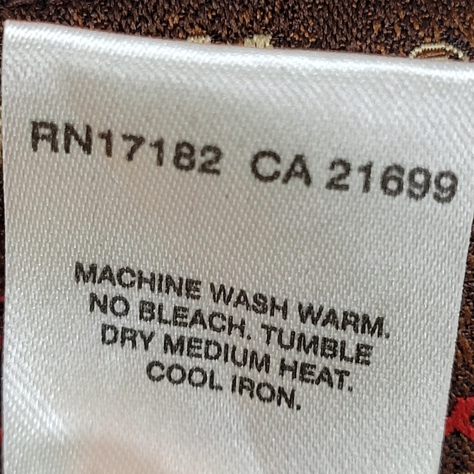 Light staining on mid front closure and marking on tag, as pictured.