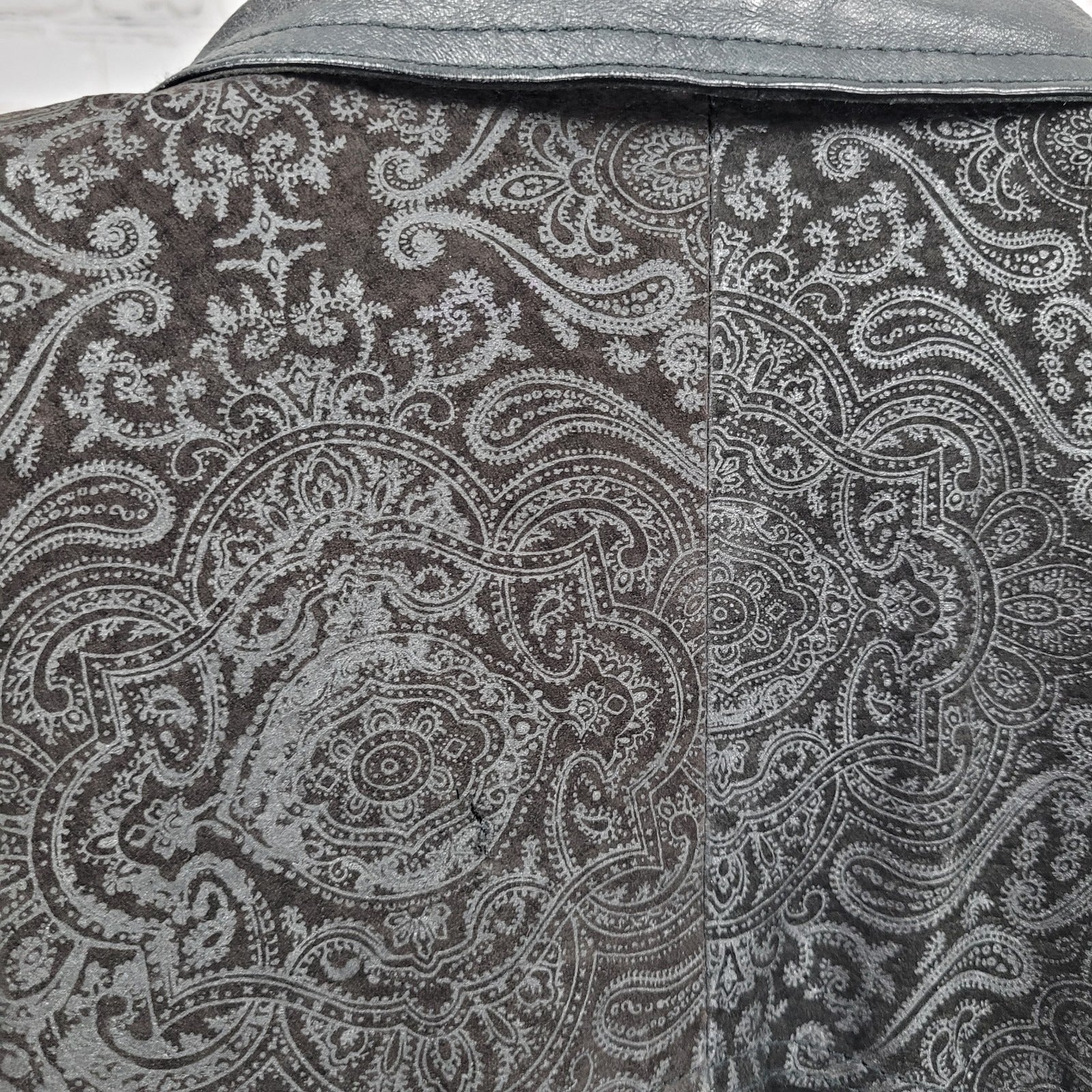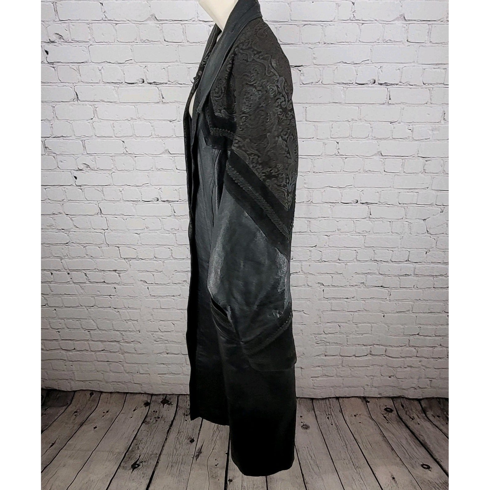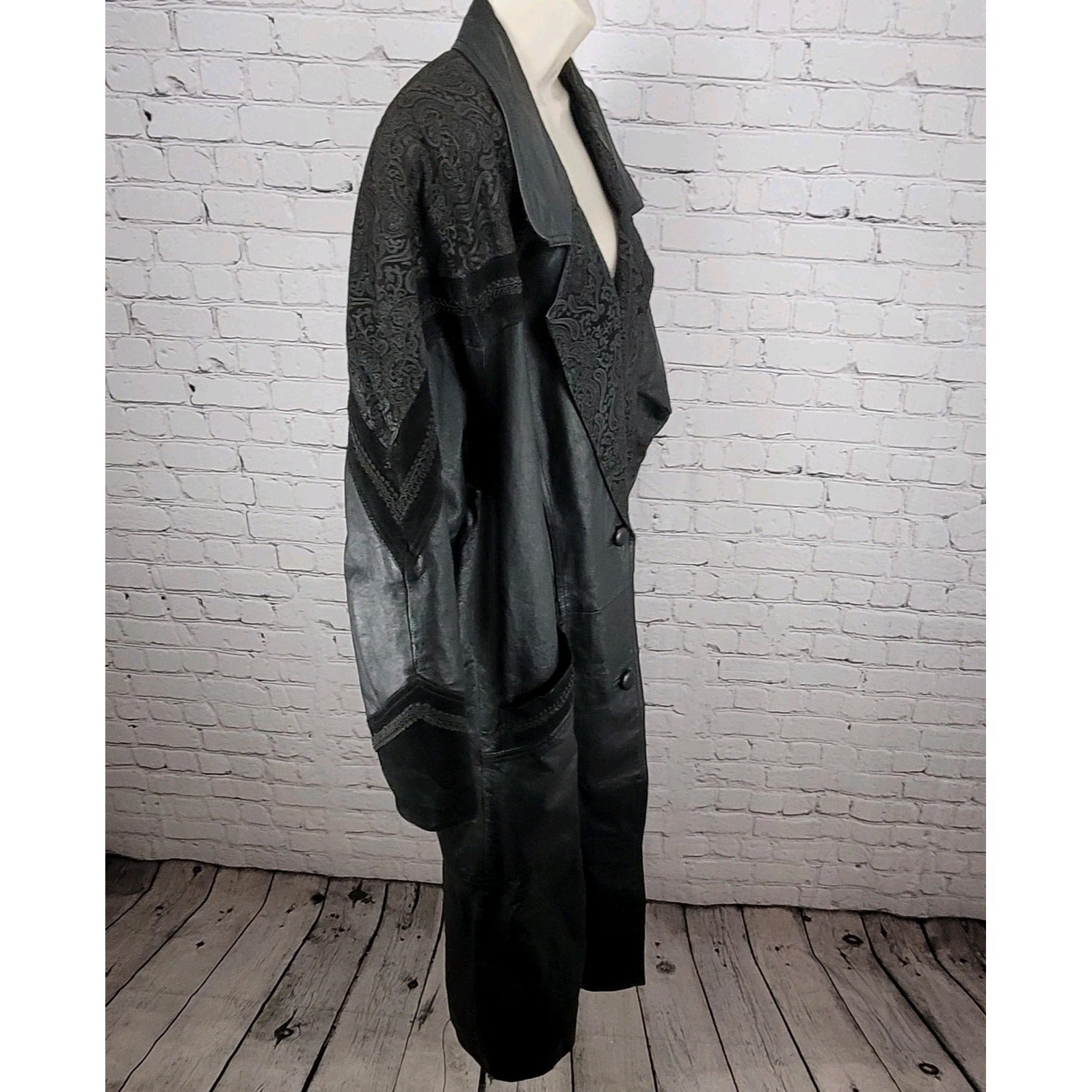 VTG Winlit Black Genuine Leather Suede Paisley Trench Long Jacket Coat L *defect