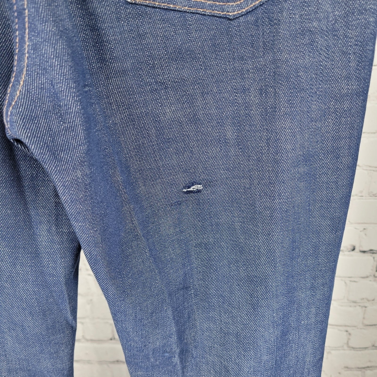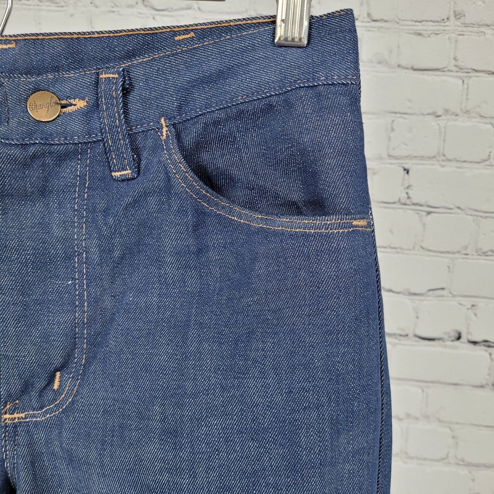 The product is a pair of VTG Wrangler Blue Denim Western Cowboy Medium Wash Bootcut Jeans in size 28x34. These jeans are designed for men with a regular size fit and are made of denim fabric. The medium wash blue color and bootcut style give them a classic Western cowboy look, perfect for those who appreciate a traditional and rugged aesthetic. With the Wrangler brand name known for quality and durability, these jeans combine style with functionality for a versatile addition to any wardrobe.