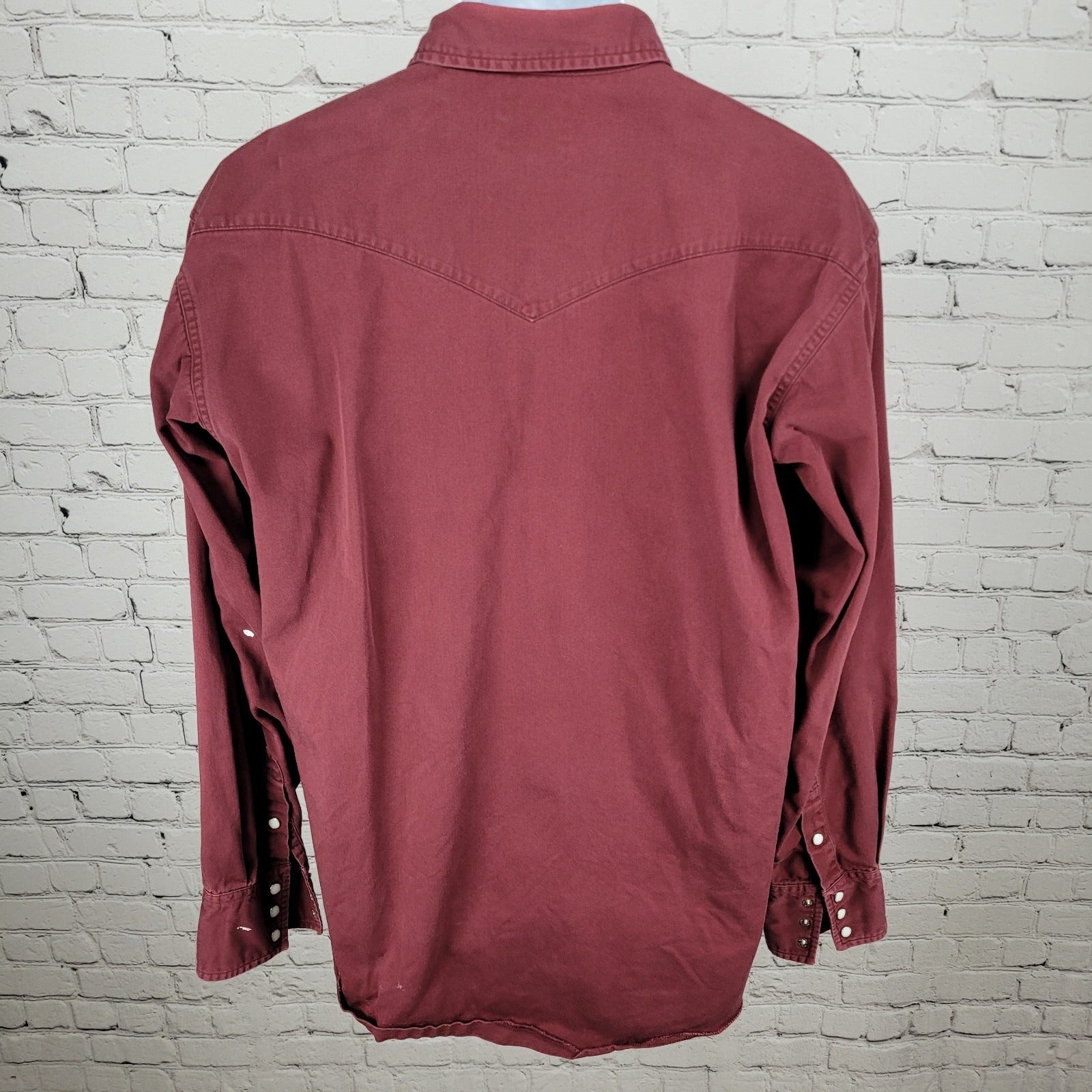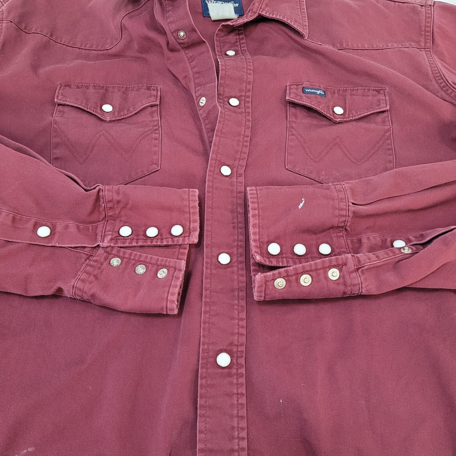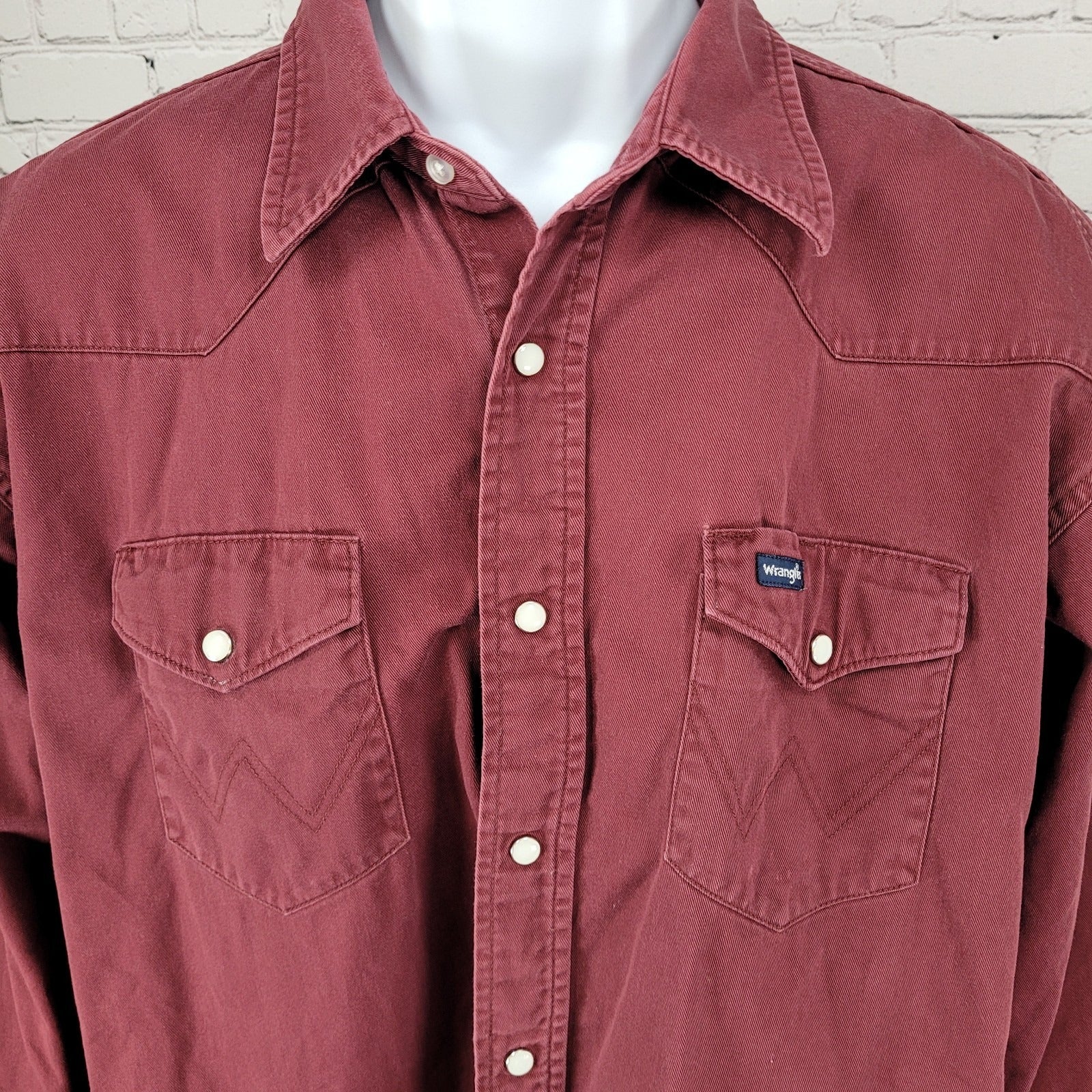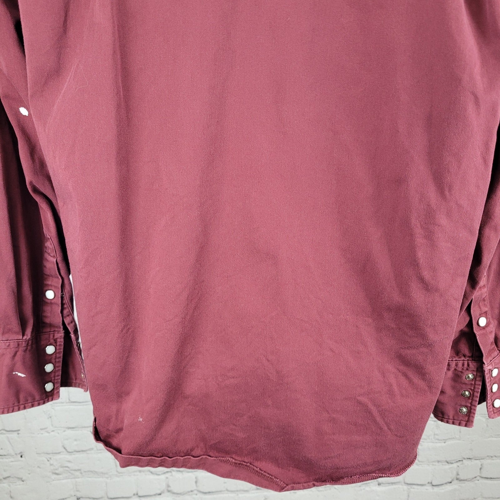 VTG Wrangler Dark Red Cowboy Workwear Western Pearl Snap Long Sleeve Shirt 2XL