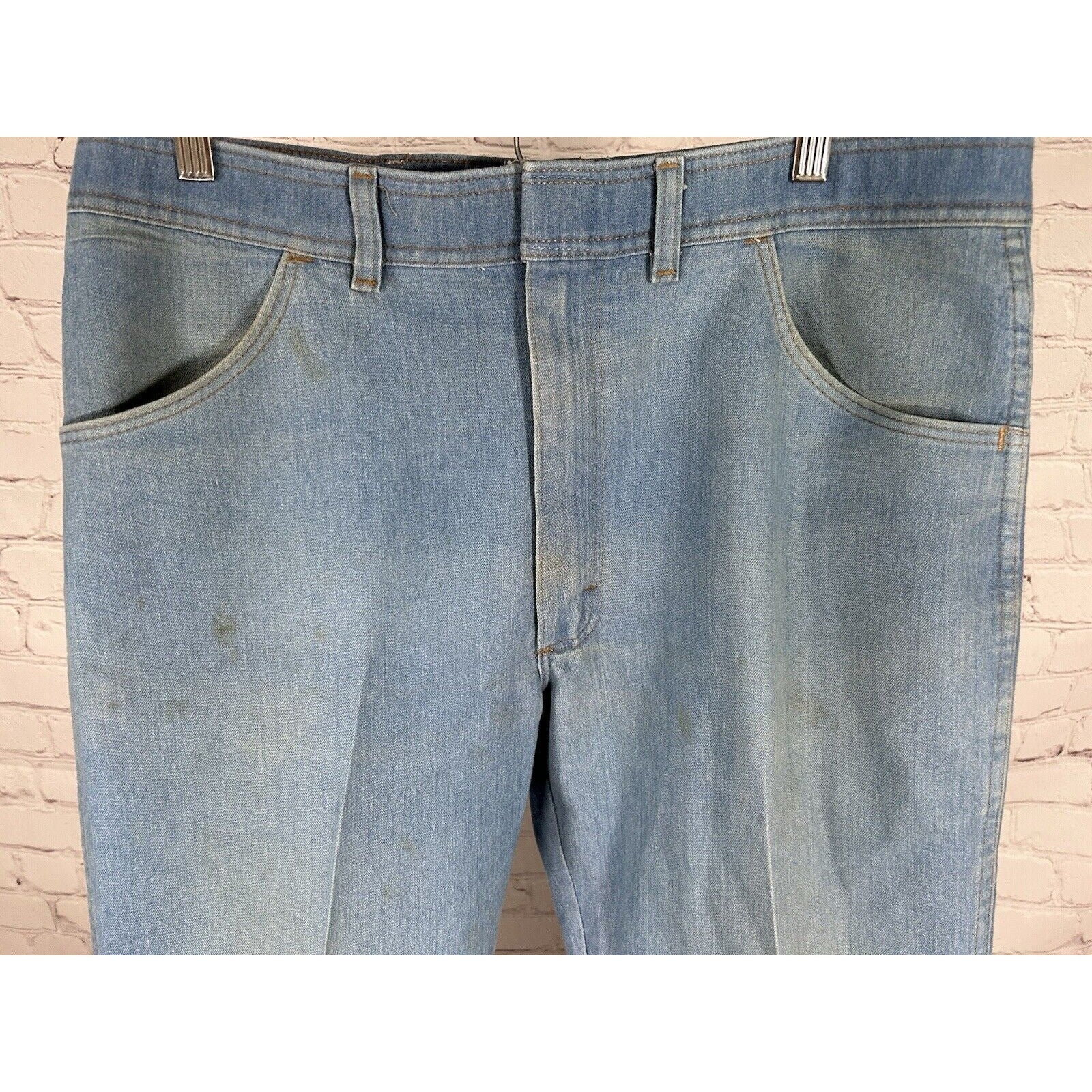 VTG Wrangler Light Wash Distressed Blue Denim Wide Leg Men’s Jeans (36 X 29)