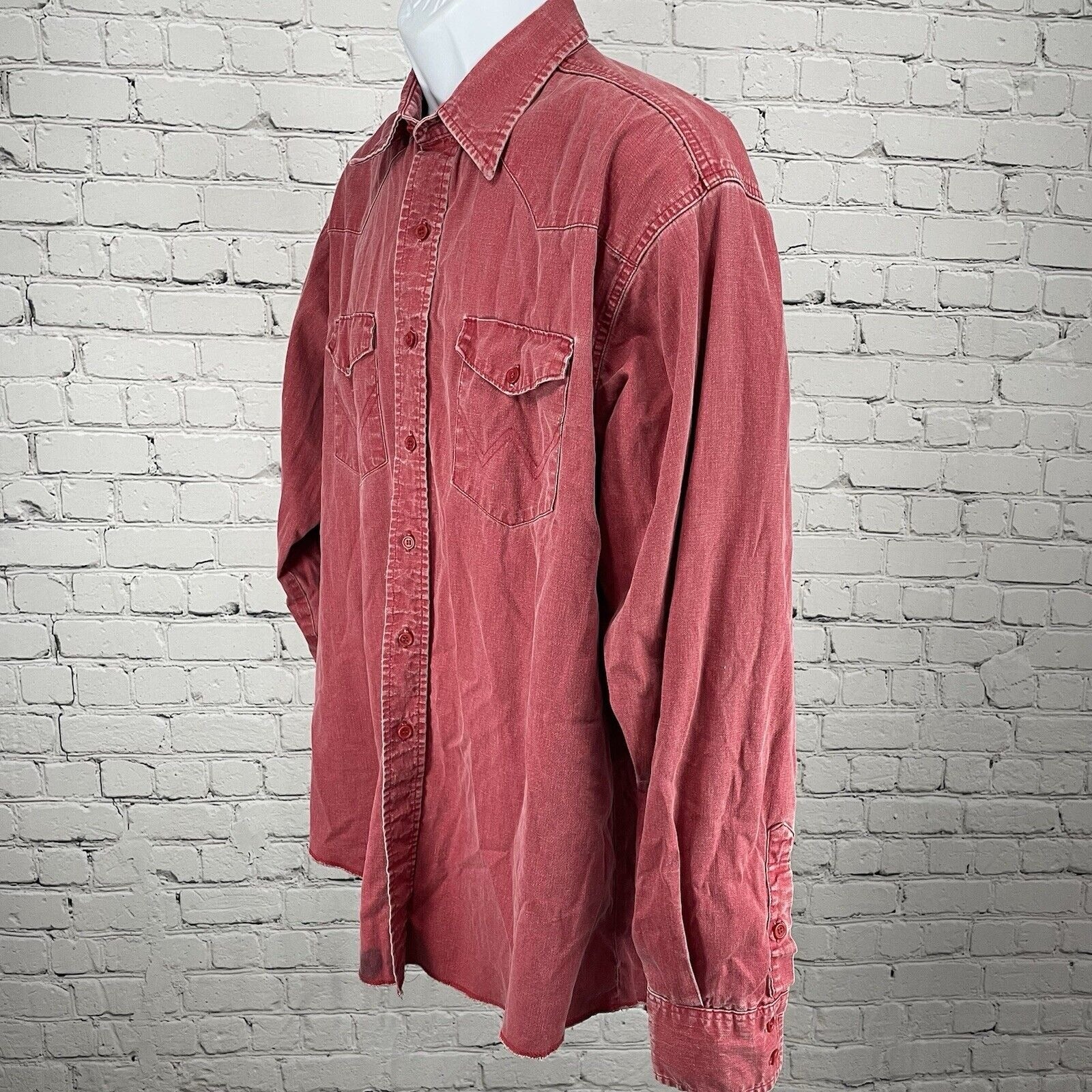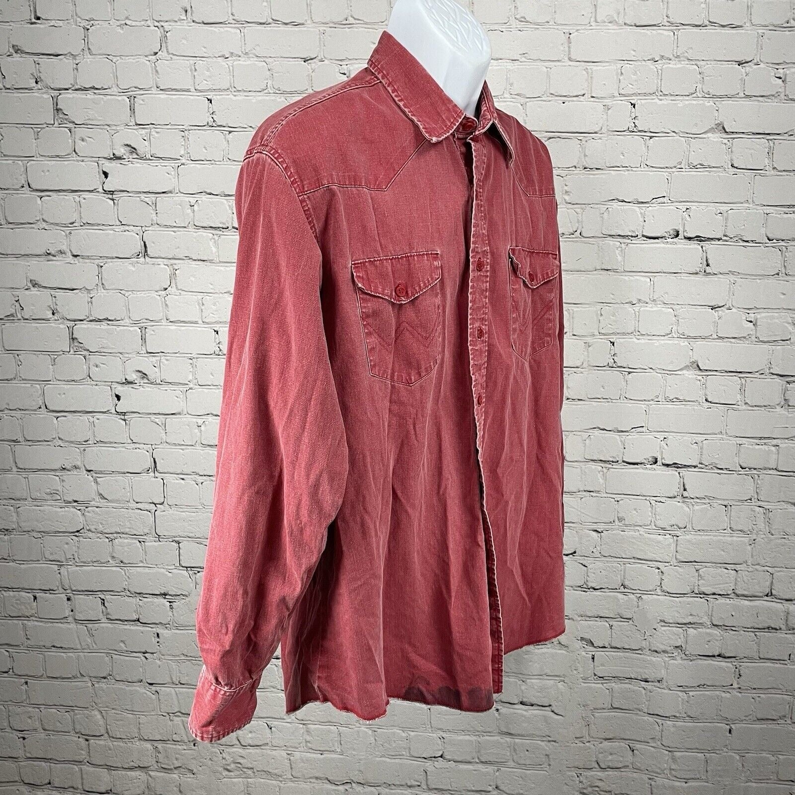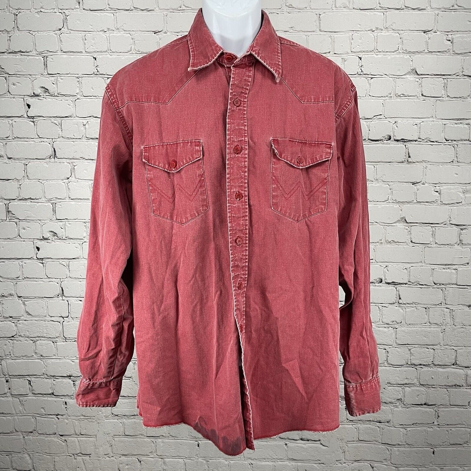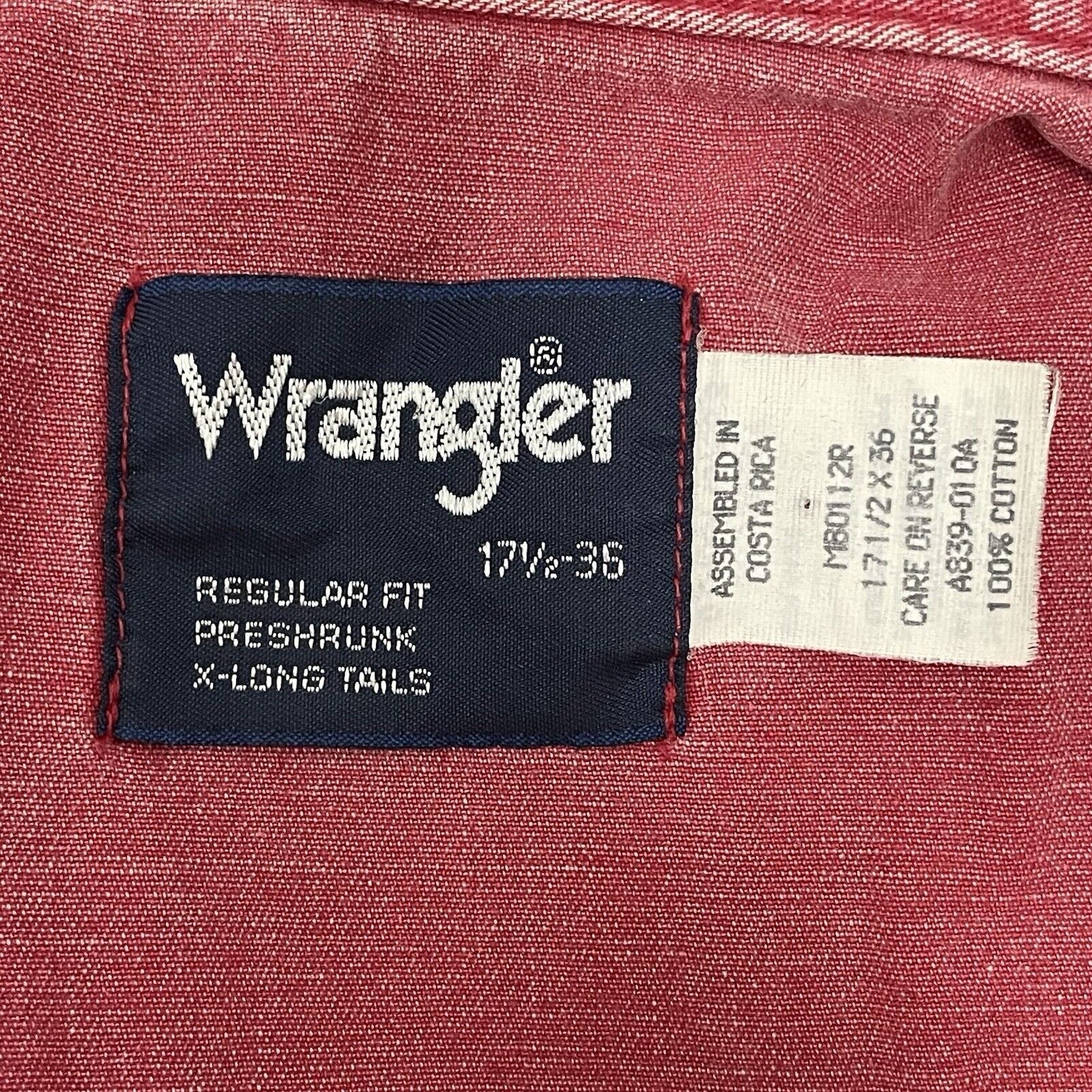 VTG Wrangler Muted Red X-Long Tails Button Up Long Sleeve Shirt Size 17.5-36