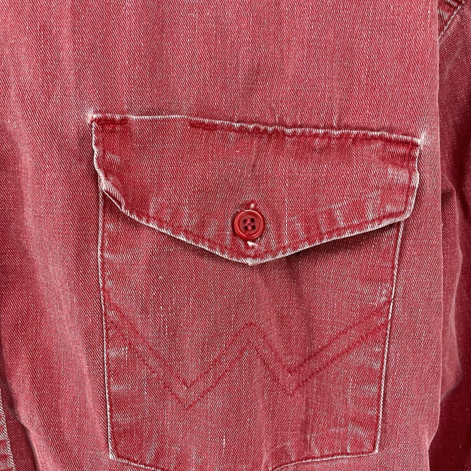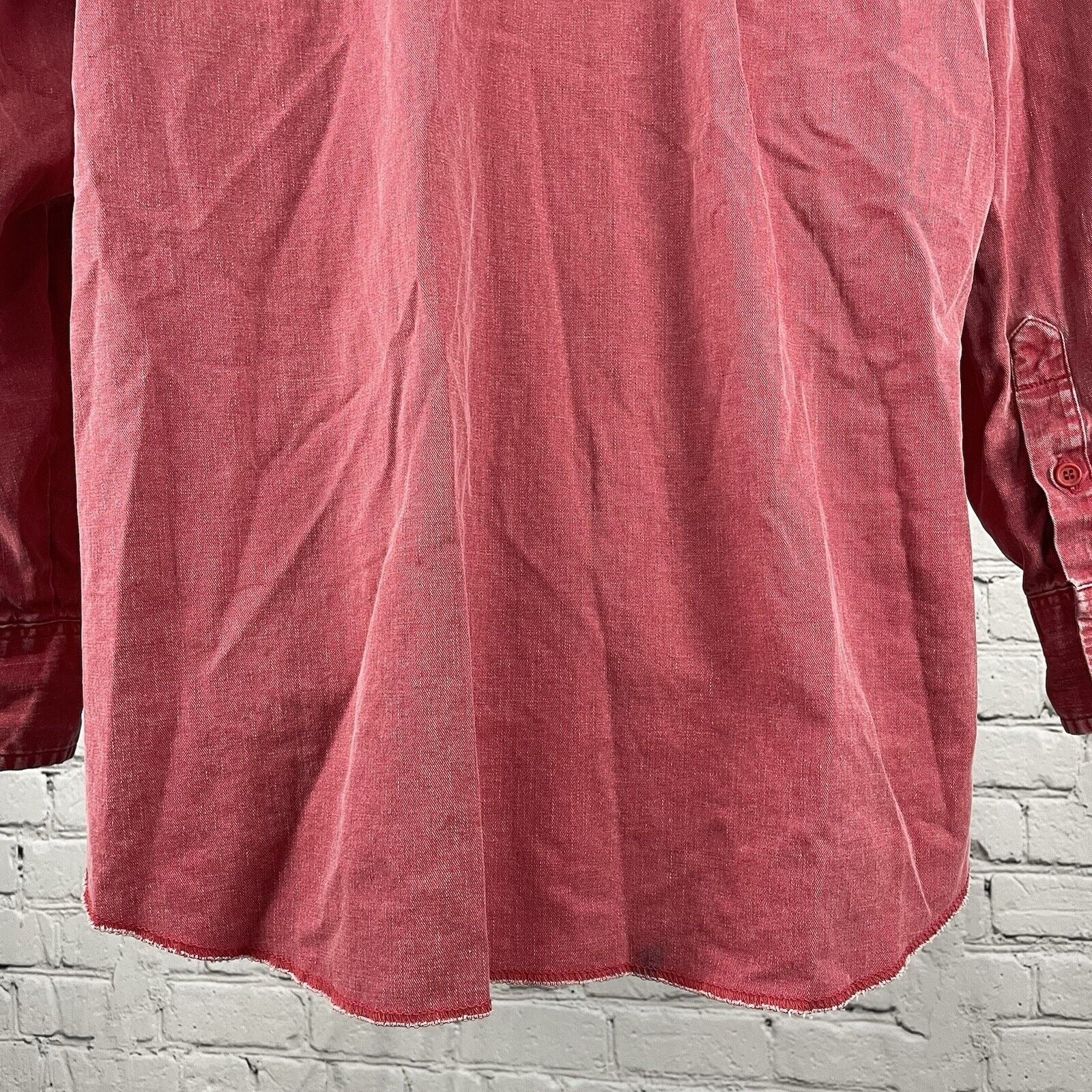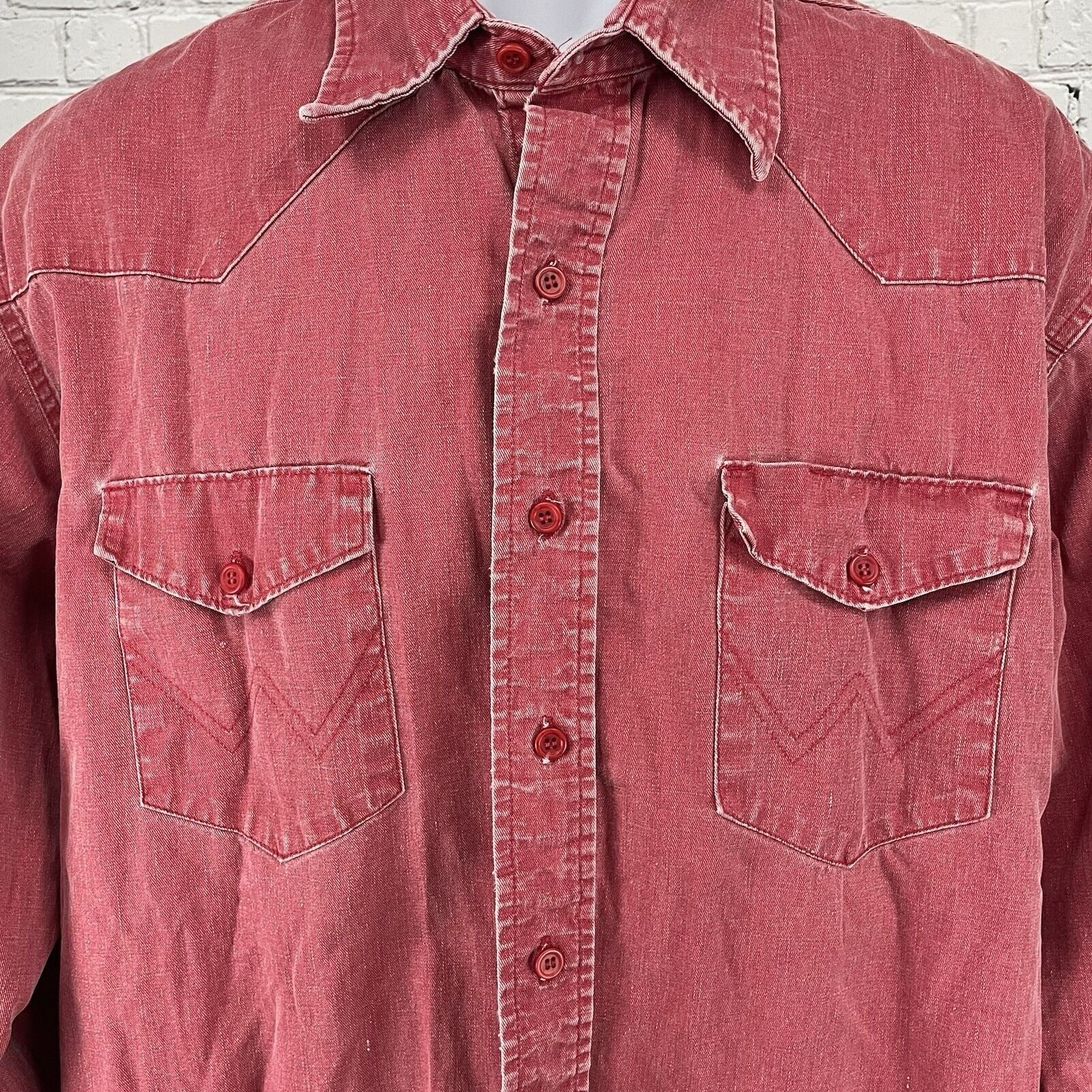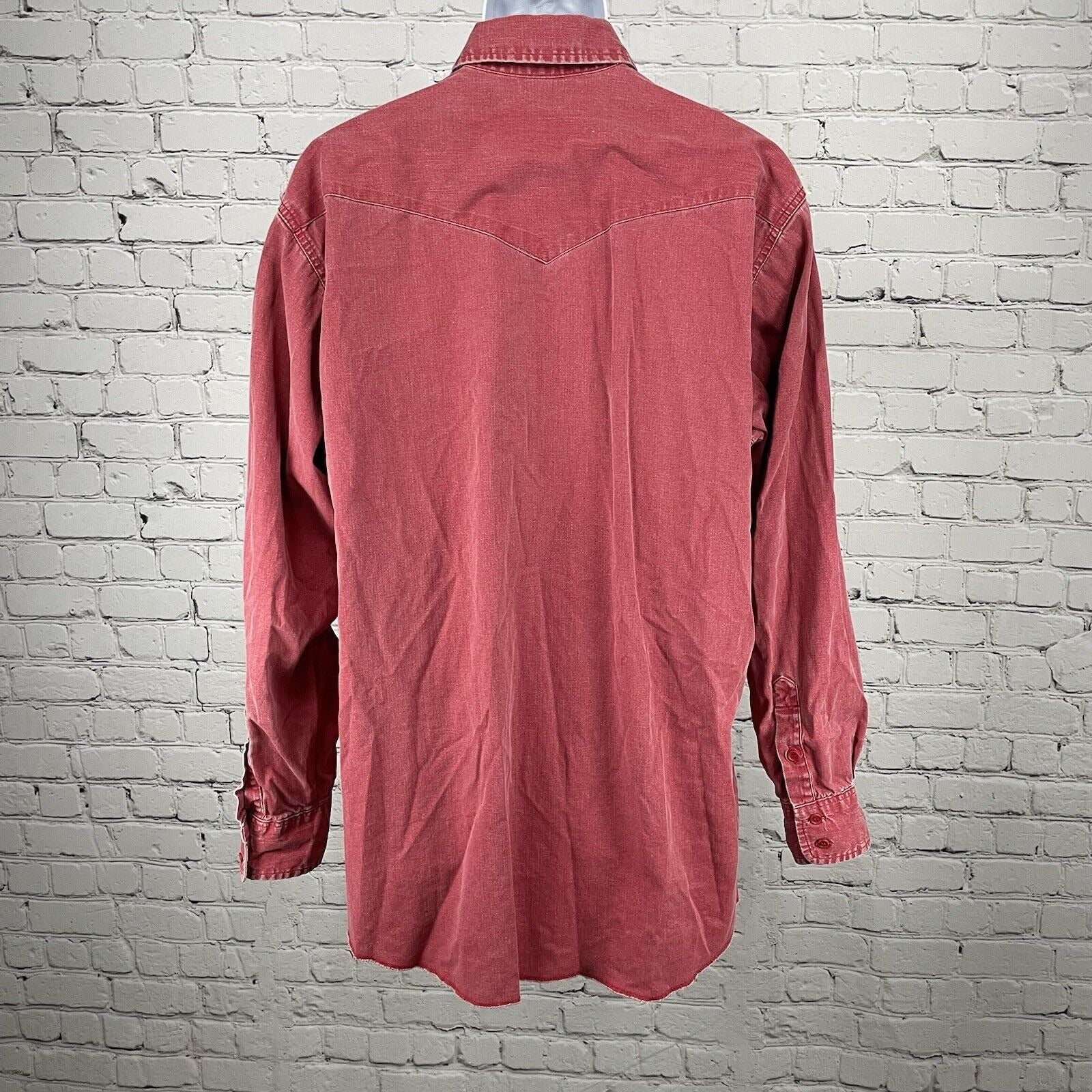 VTG Wrangler Muted Red X-Long Tails Button Up Long Sleeve Shirt Size 17.5-36