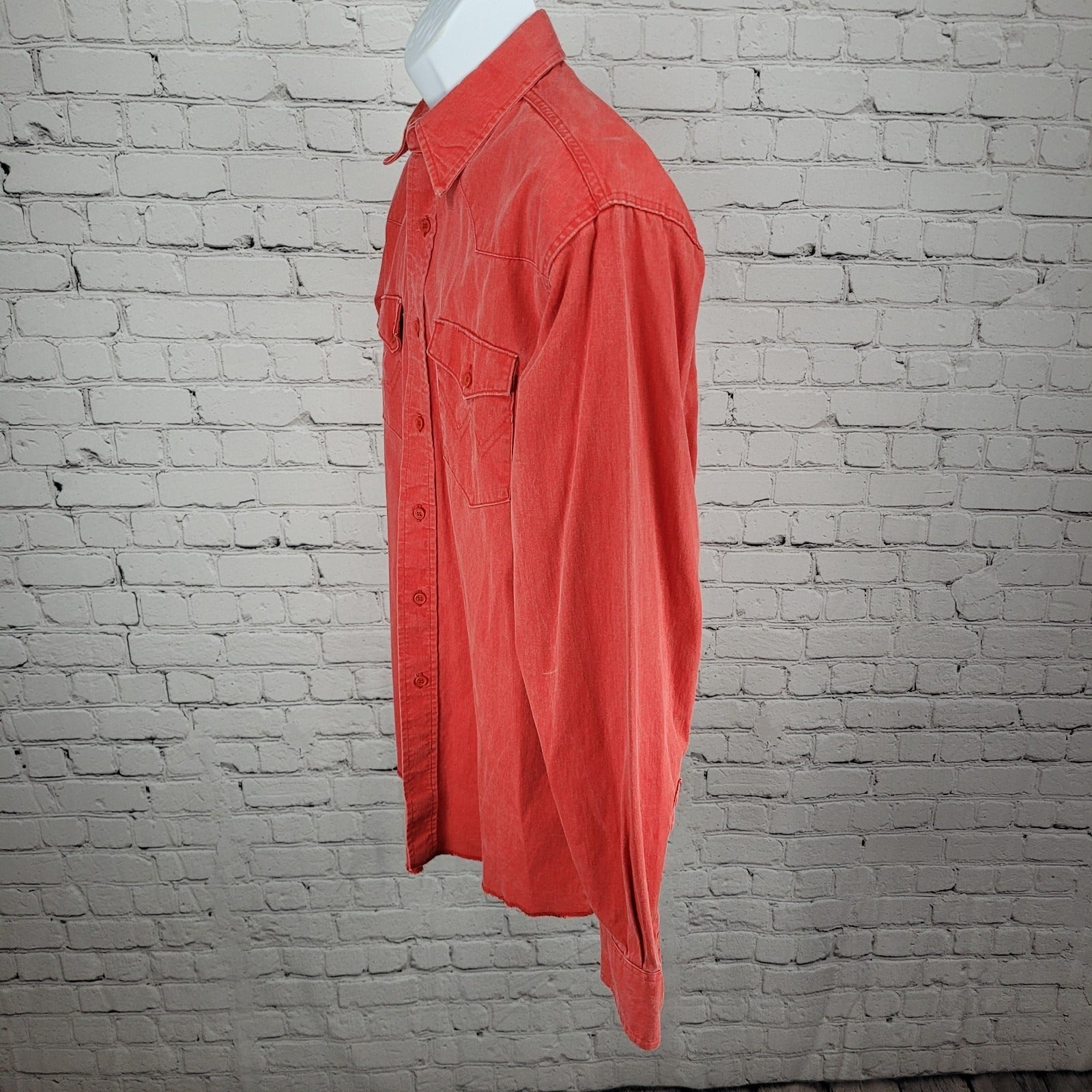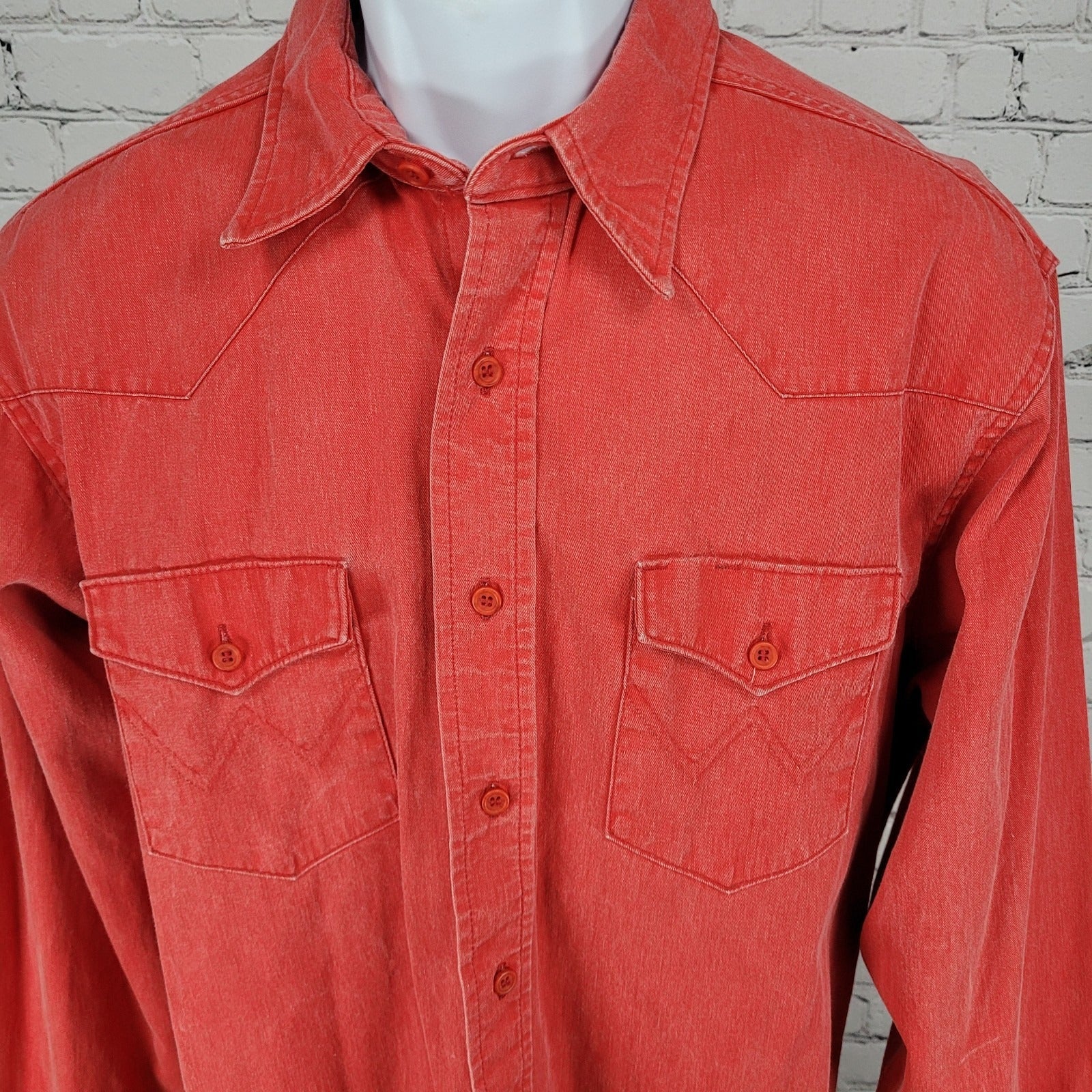 VTG Wrangler Red Cotton Western Button Up Long Sleeve Shirt USA Made Size 16-35