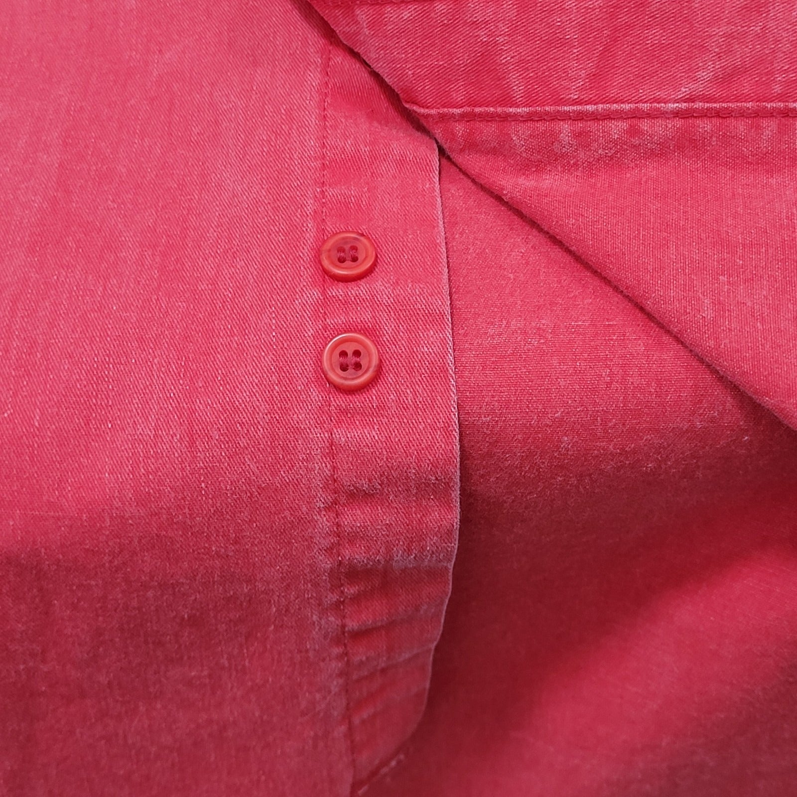 The VTG Wrangler Red Cotton Western Button Up Long Sleeve Shirt is a vintage piece made in the USA, featuring a solid red color and a collared neckline with a button closure. This shirt is perfect for travel, casual outings, or workwear, with a regular fit and breathable cotton material making it suitable for all seasons. The western cowboy theme adds a retro touch, while the easy care and convenient pockets make it a practical and versatile addition to any man's wardrobe.