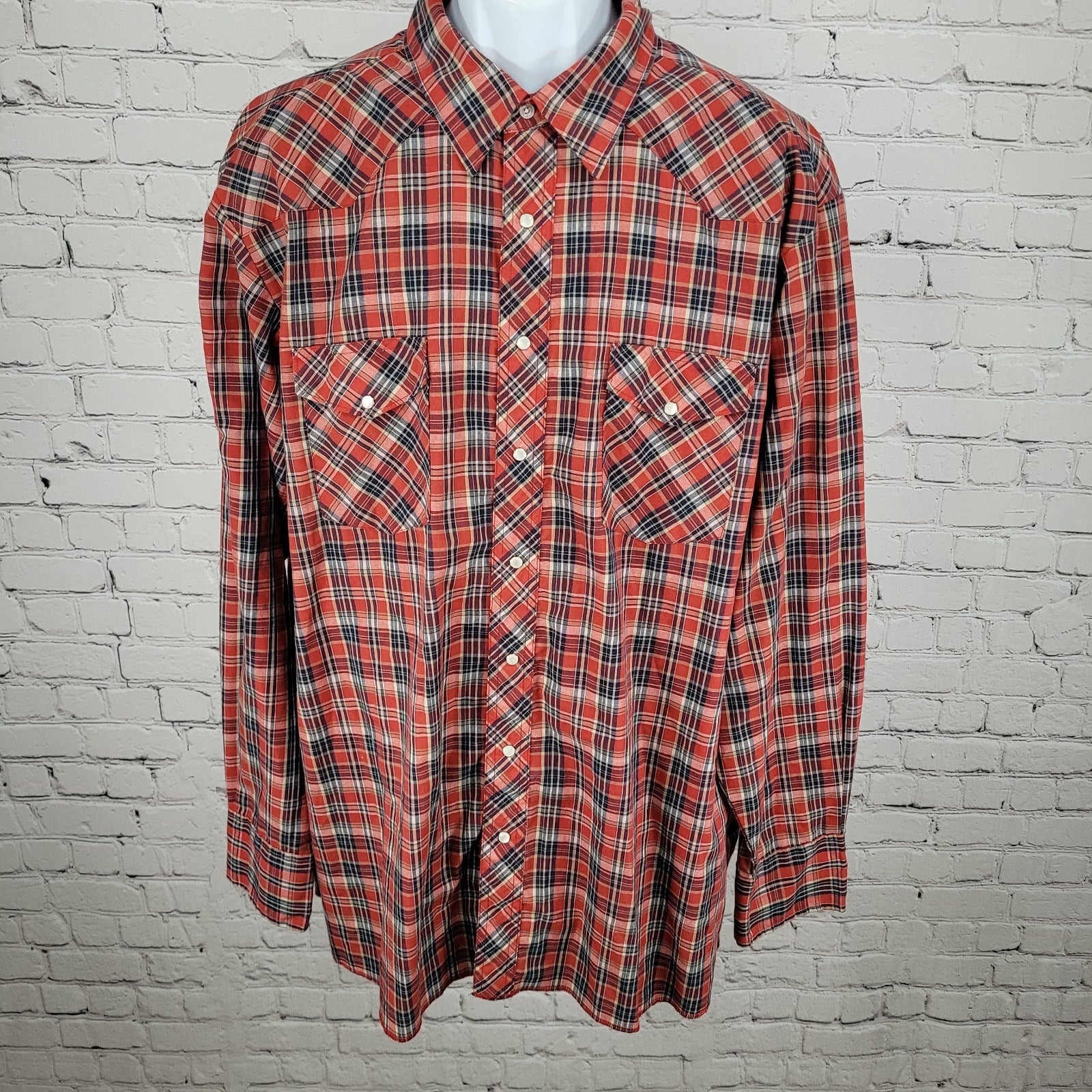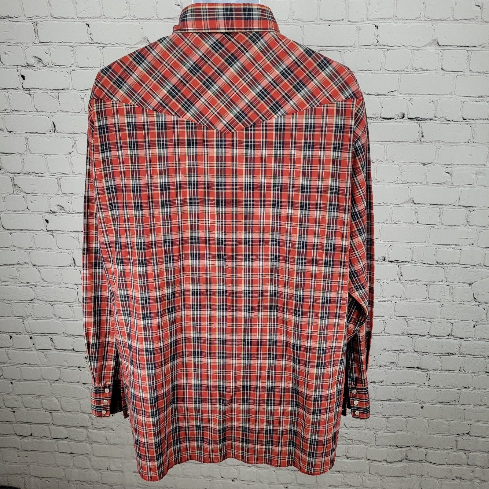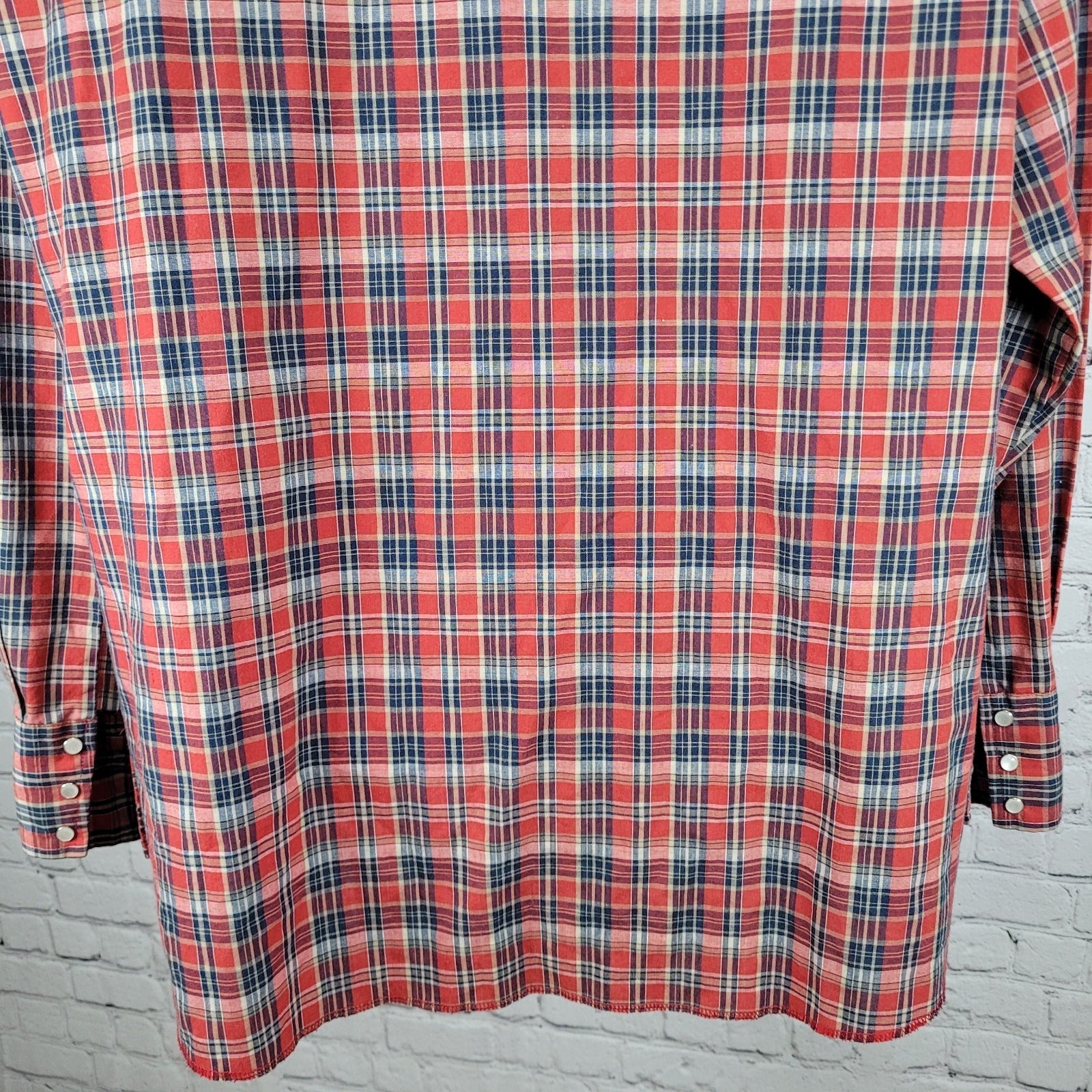 VTG Wrangler Red Plaid Western Pearl Snap Long Sleeve Lightweight Shirt Size XXL