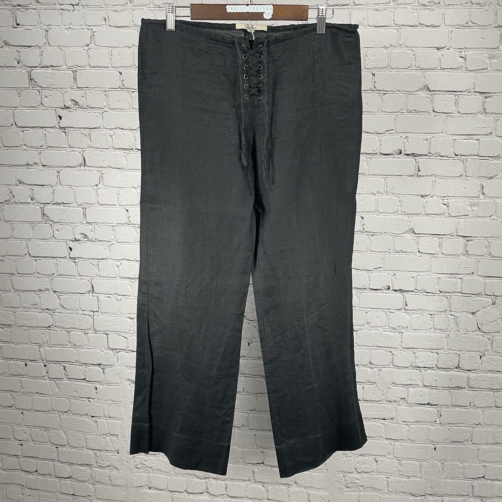VTG Zara Basic Black Ramie Lightweight Semi Sheer Wide Leg Pants Size US Small S