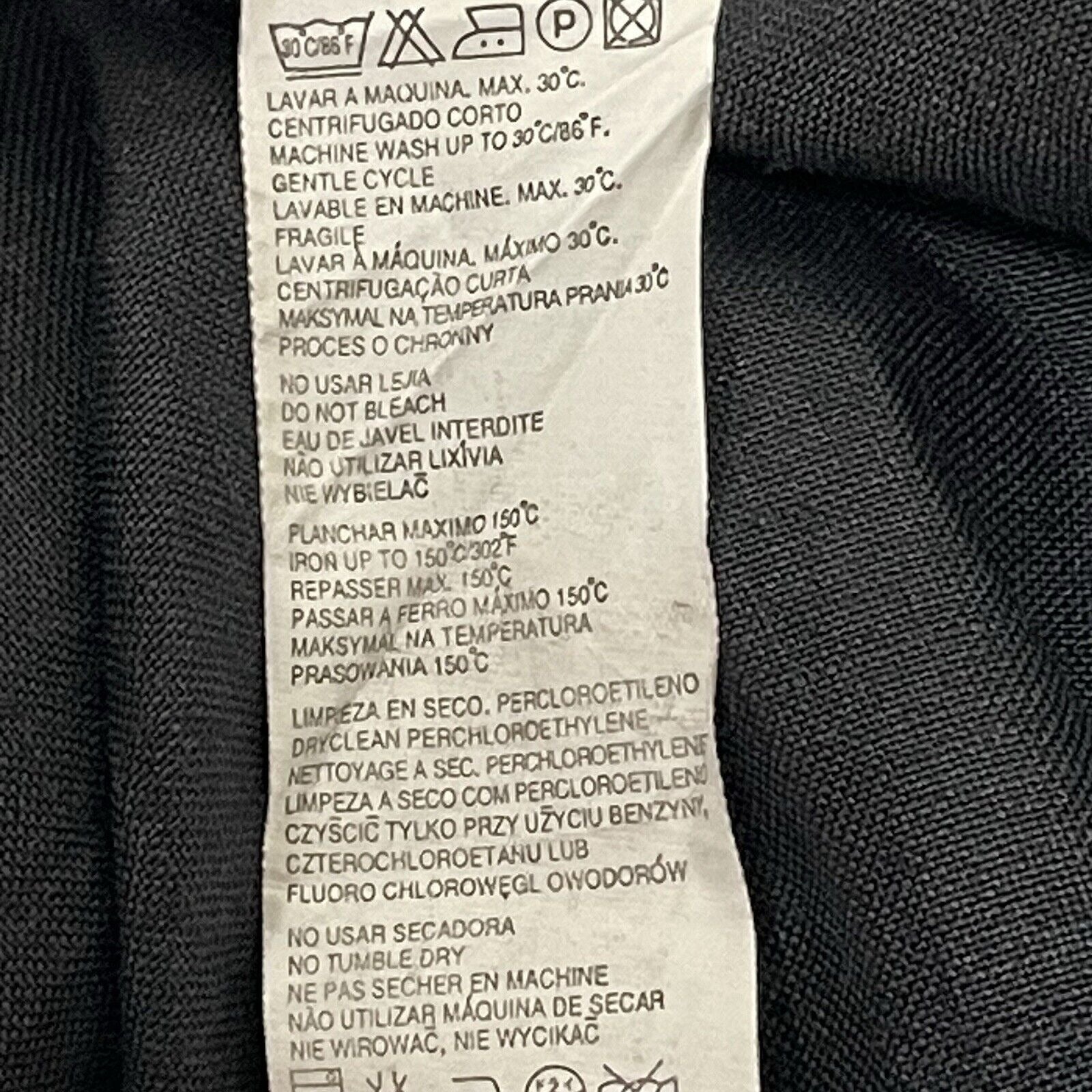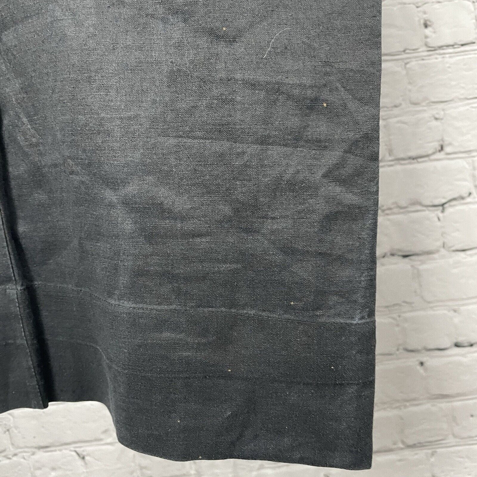 Crotch wear and small discoloration spots front bottom of legs, as pictured.