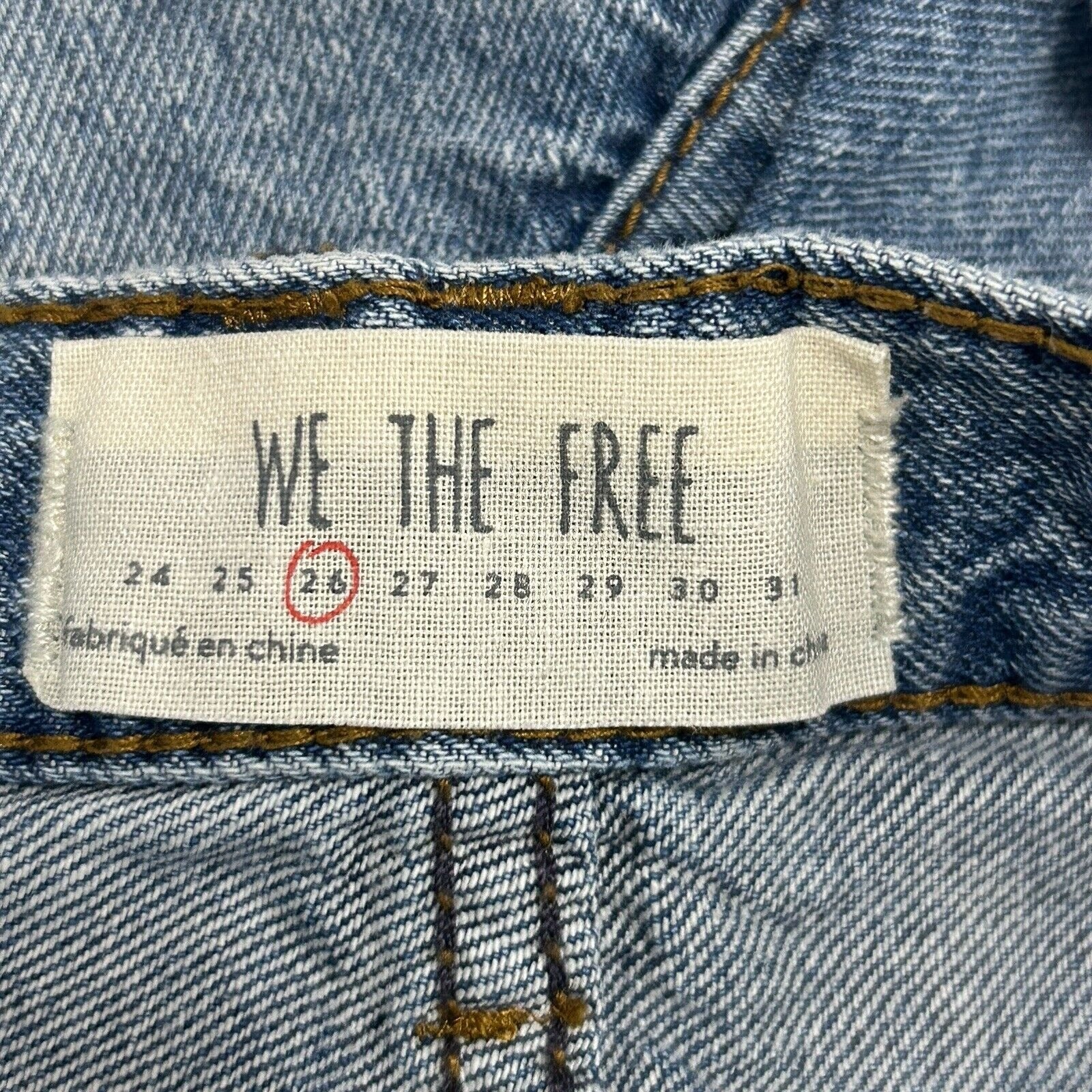 These We The Free denim mini jean shorts are in light blue with a distressed look, making them perfect for a casual or party/cocktail occasion during the summer season. The shorts feature a button closure and a 5-pocket design with a flat front and a regular fit. Made from 100% cotton fabric with a light wash, these mid-rise cut-off shorts have a 2.0-inch inseam and a waist size of 29 inches, suitable for a bohemian or classic style. Perfect for activities like walking, going to the beach, or attending school events.