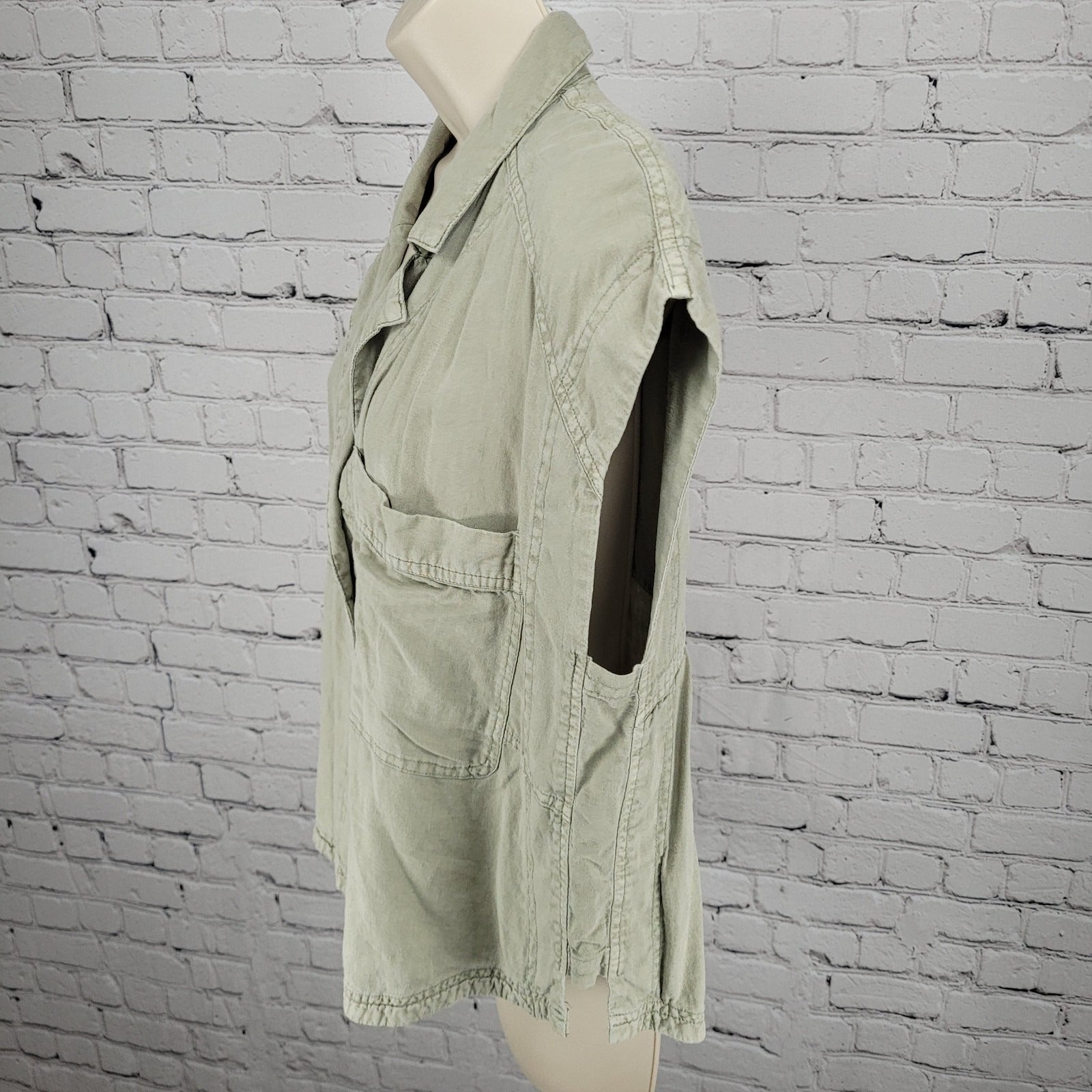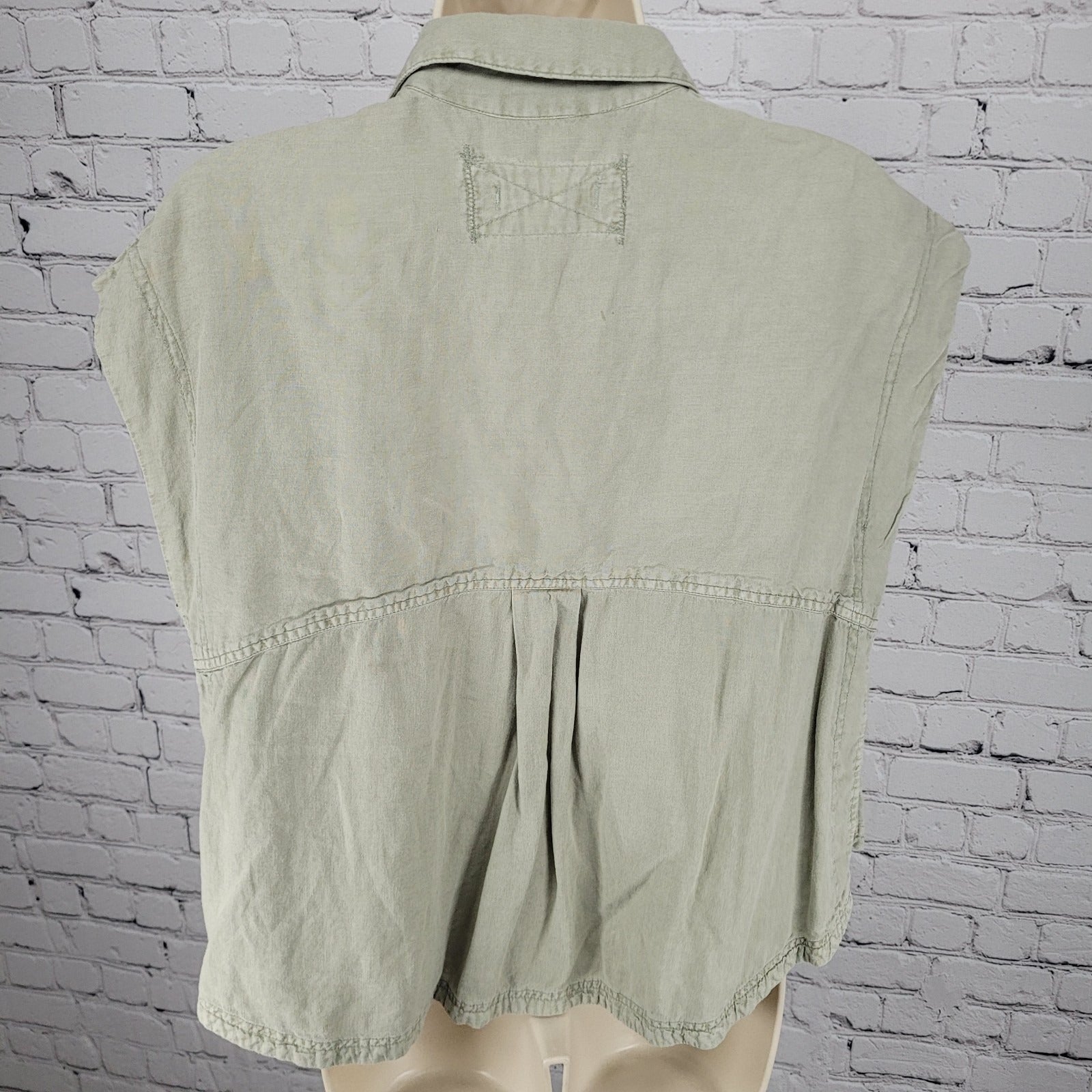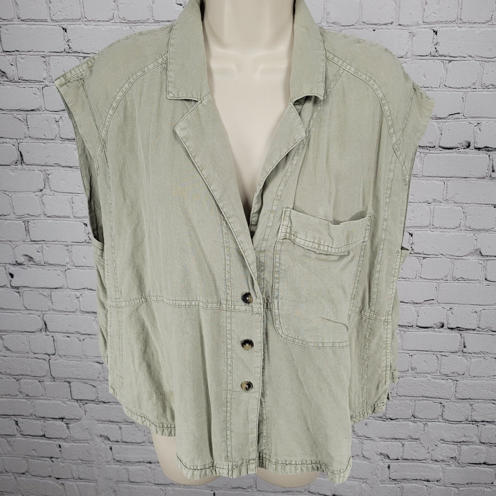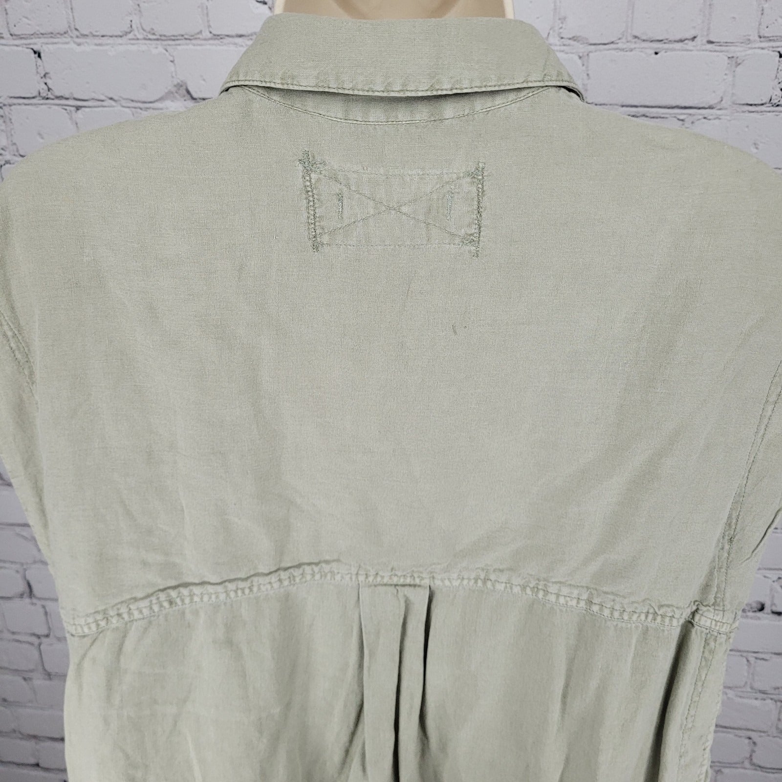 We The Free Urban Outfitters Muted Green Linen Blend Boxy Shirt Size Medium M