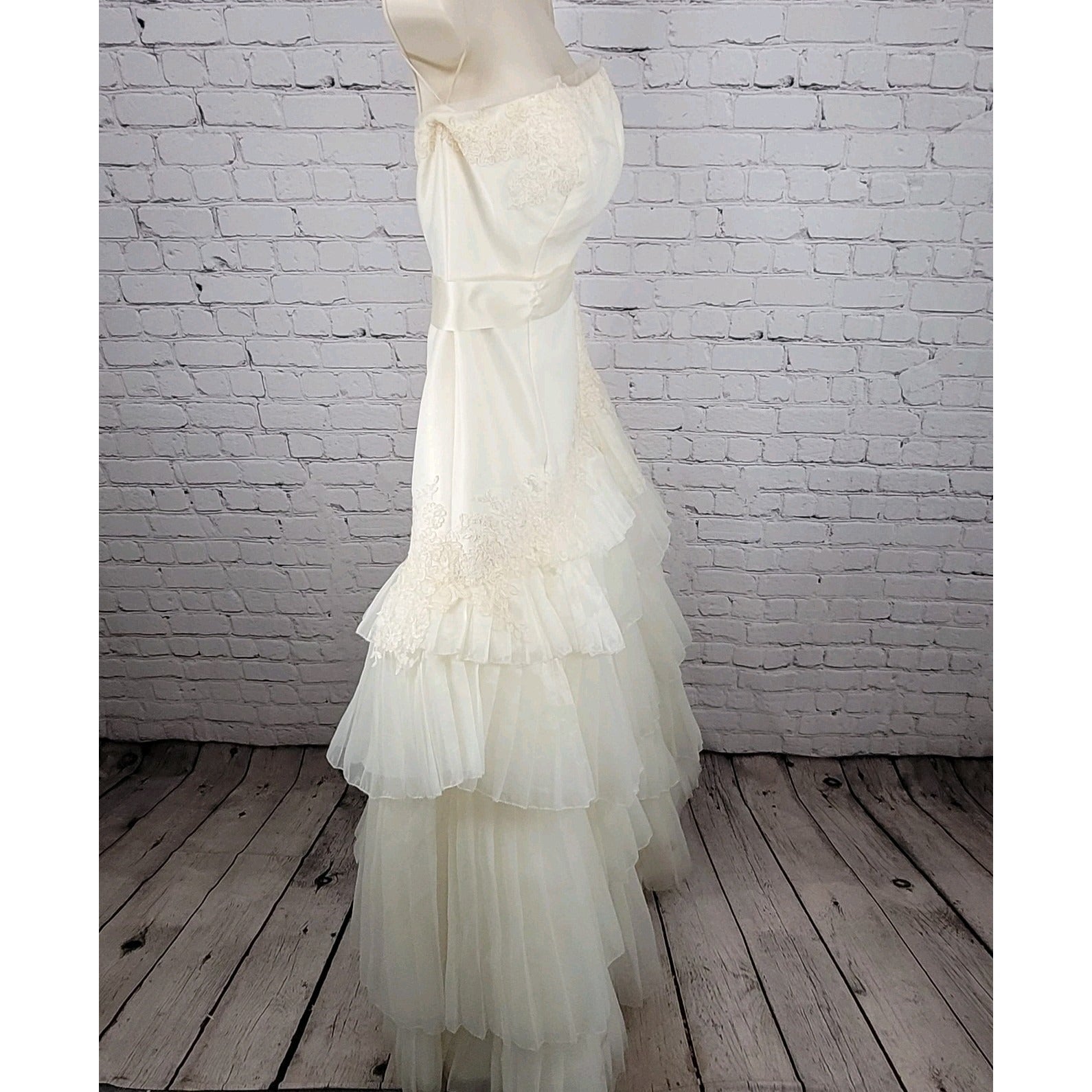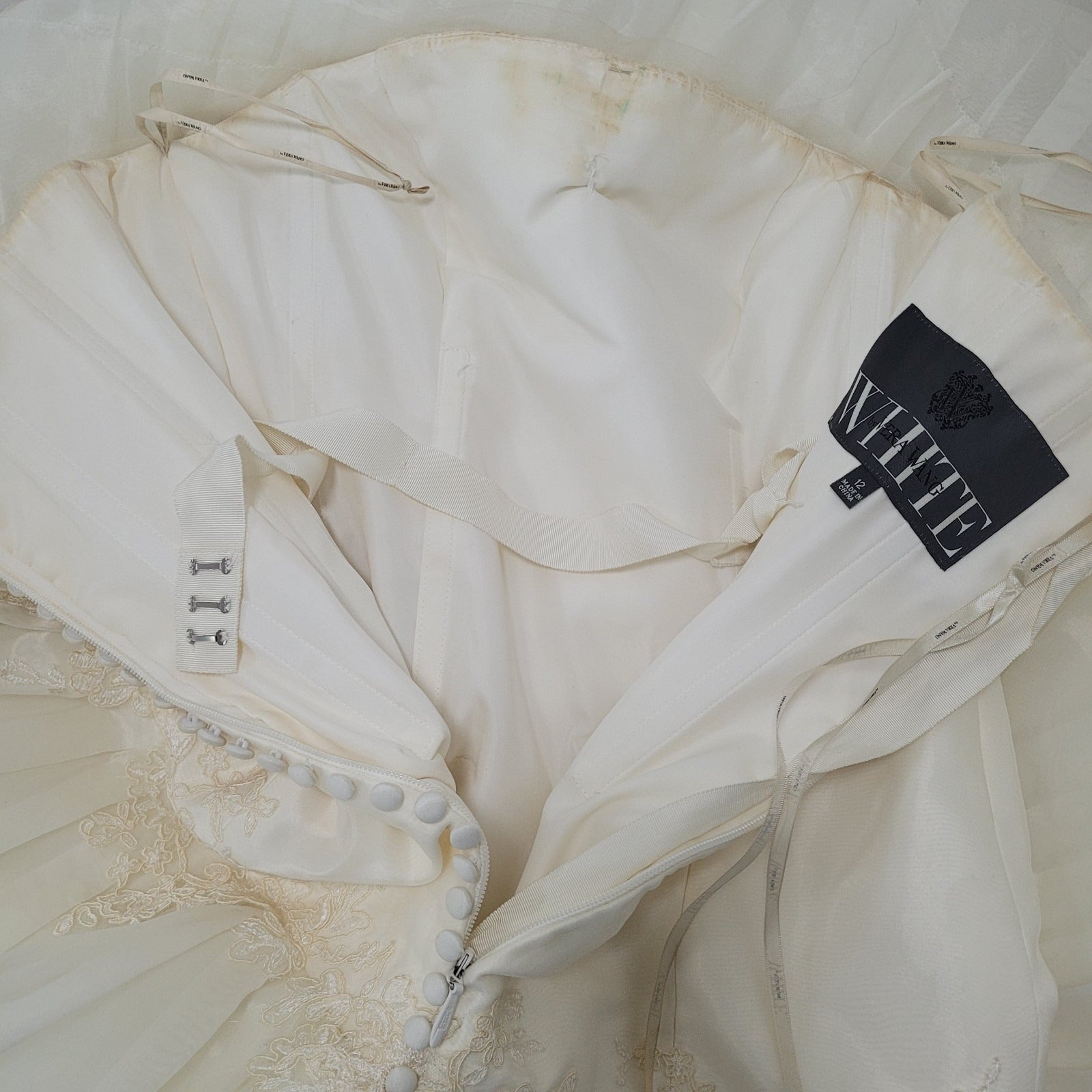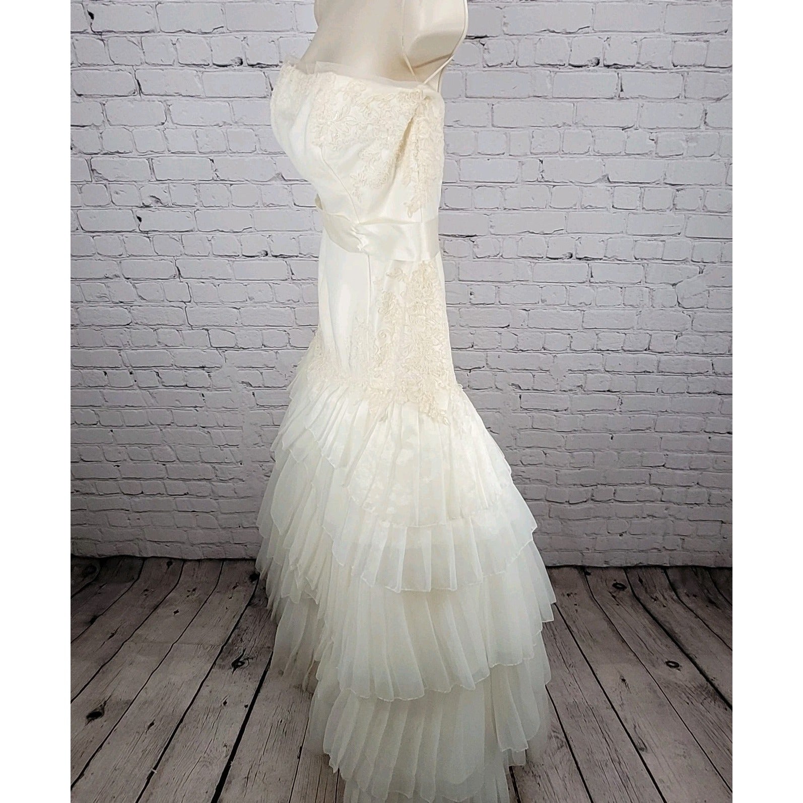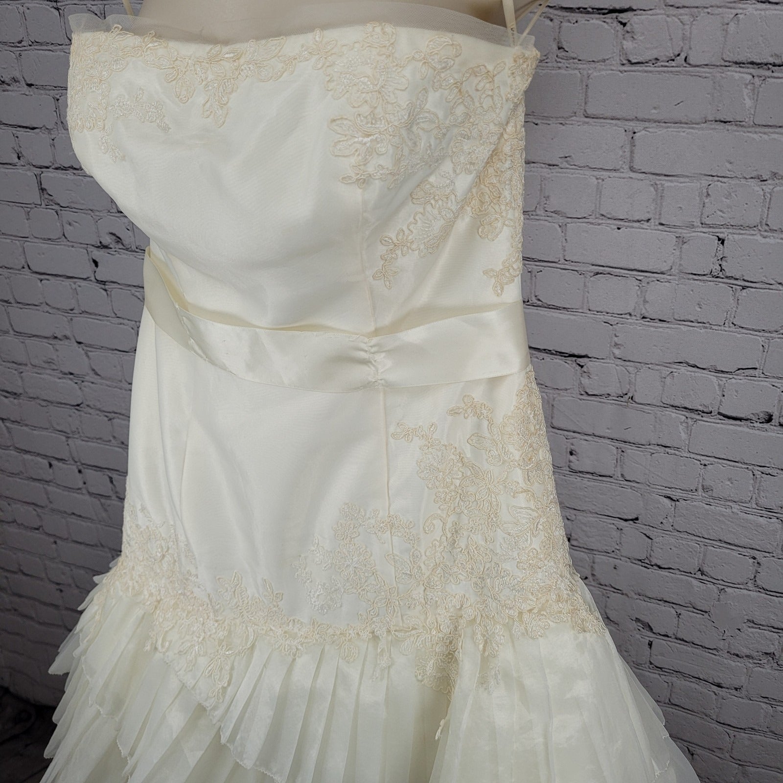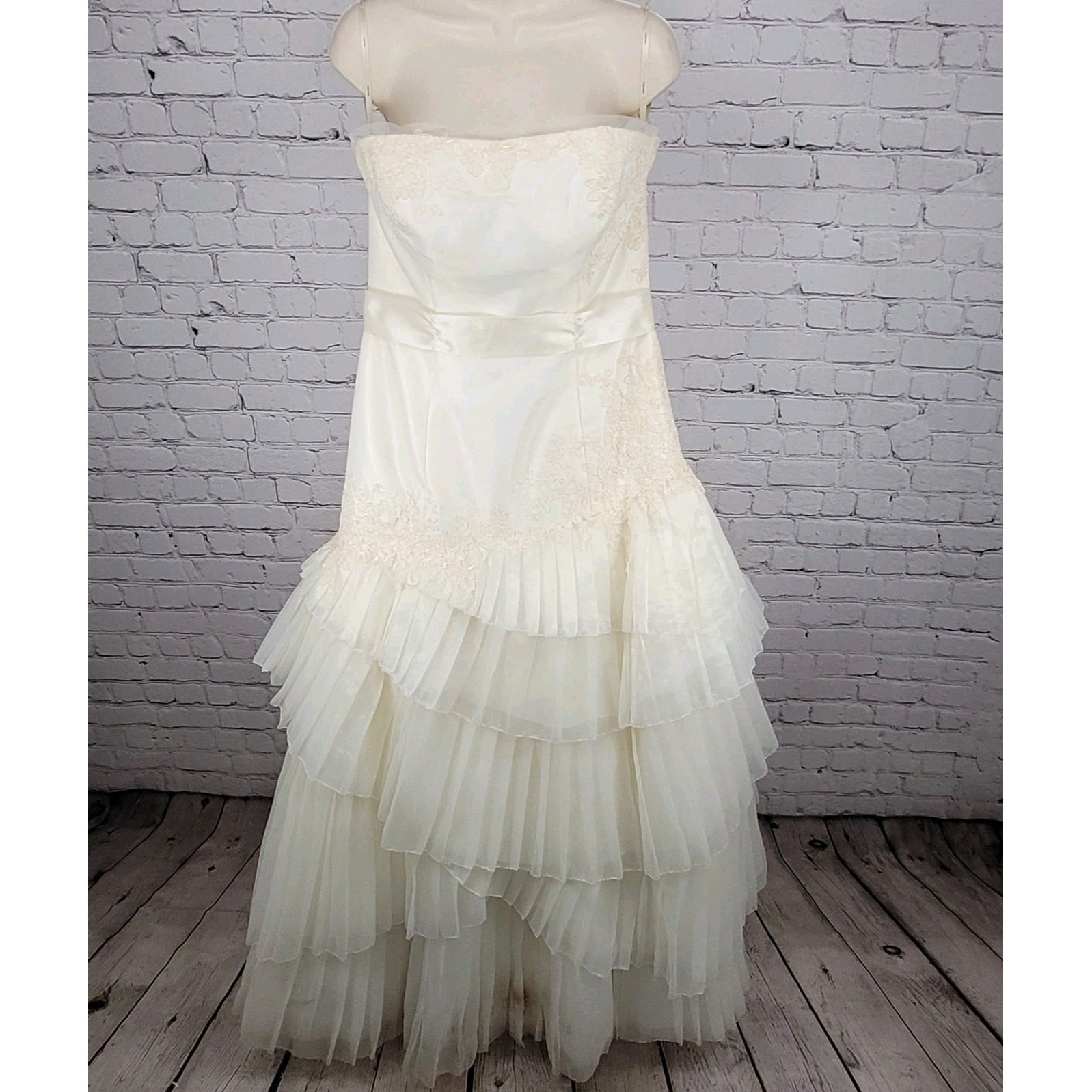 White By Vera Wang Ivory Tiered Strapless Bridal Wedding Gown Dress 12 VW351020