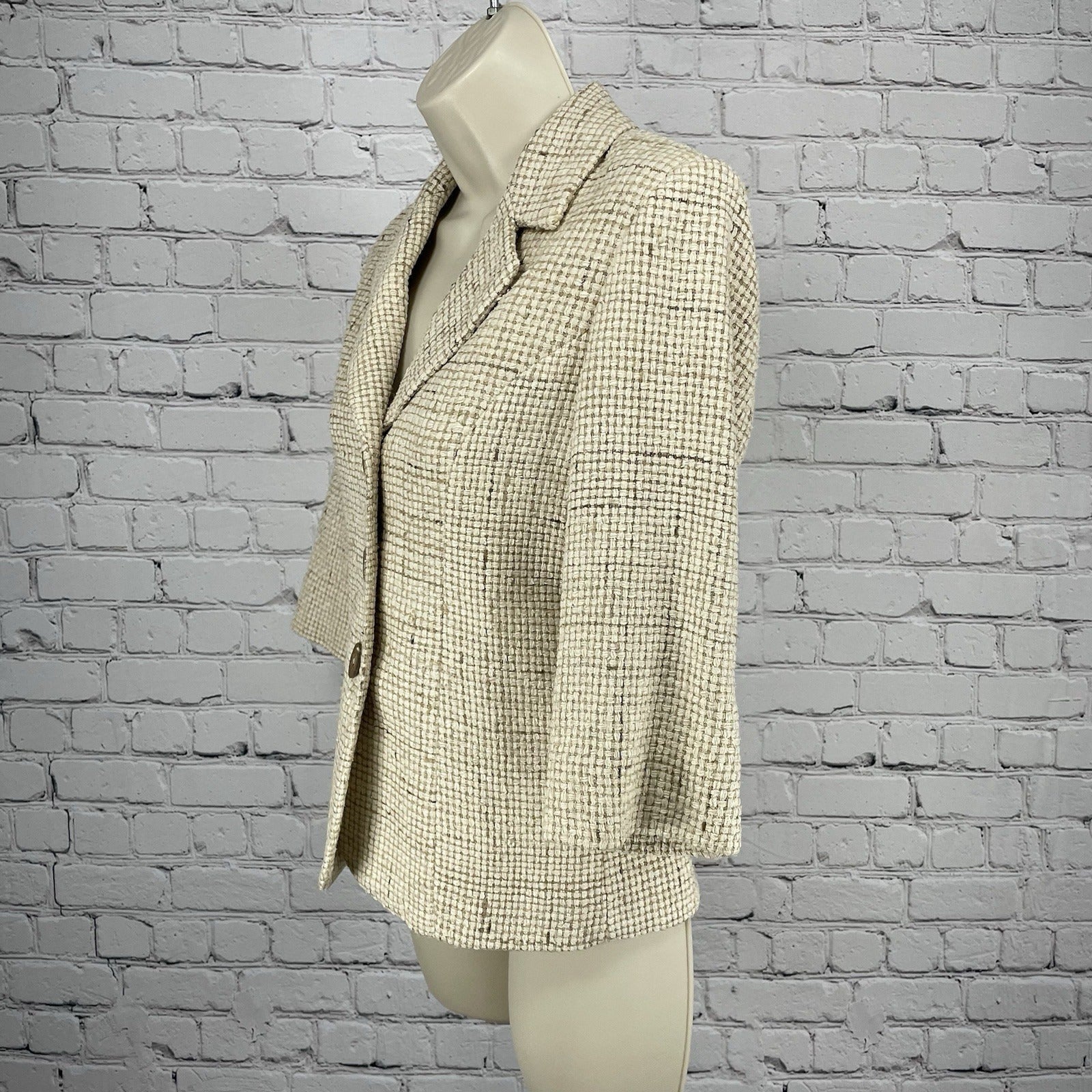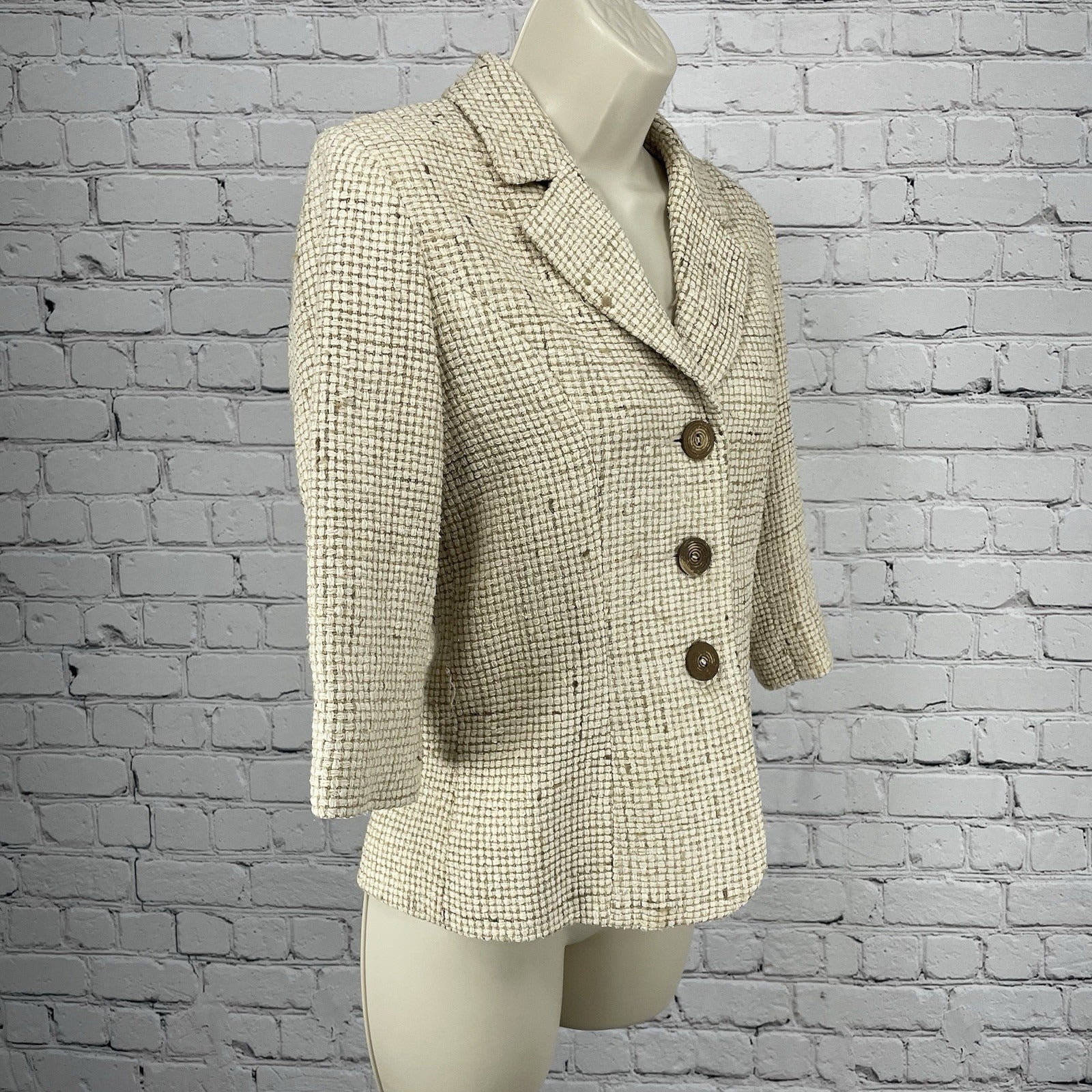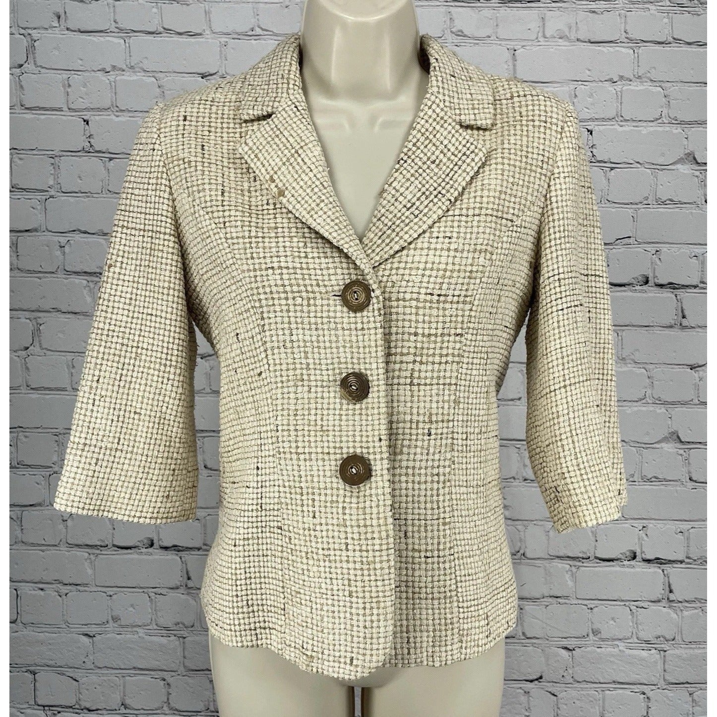 White House Black Market Cream 100% Silk Textured 3/4 Sleeve Blazer Size 0