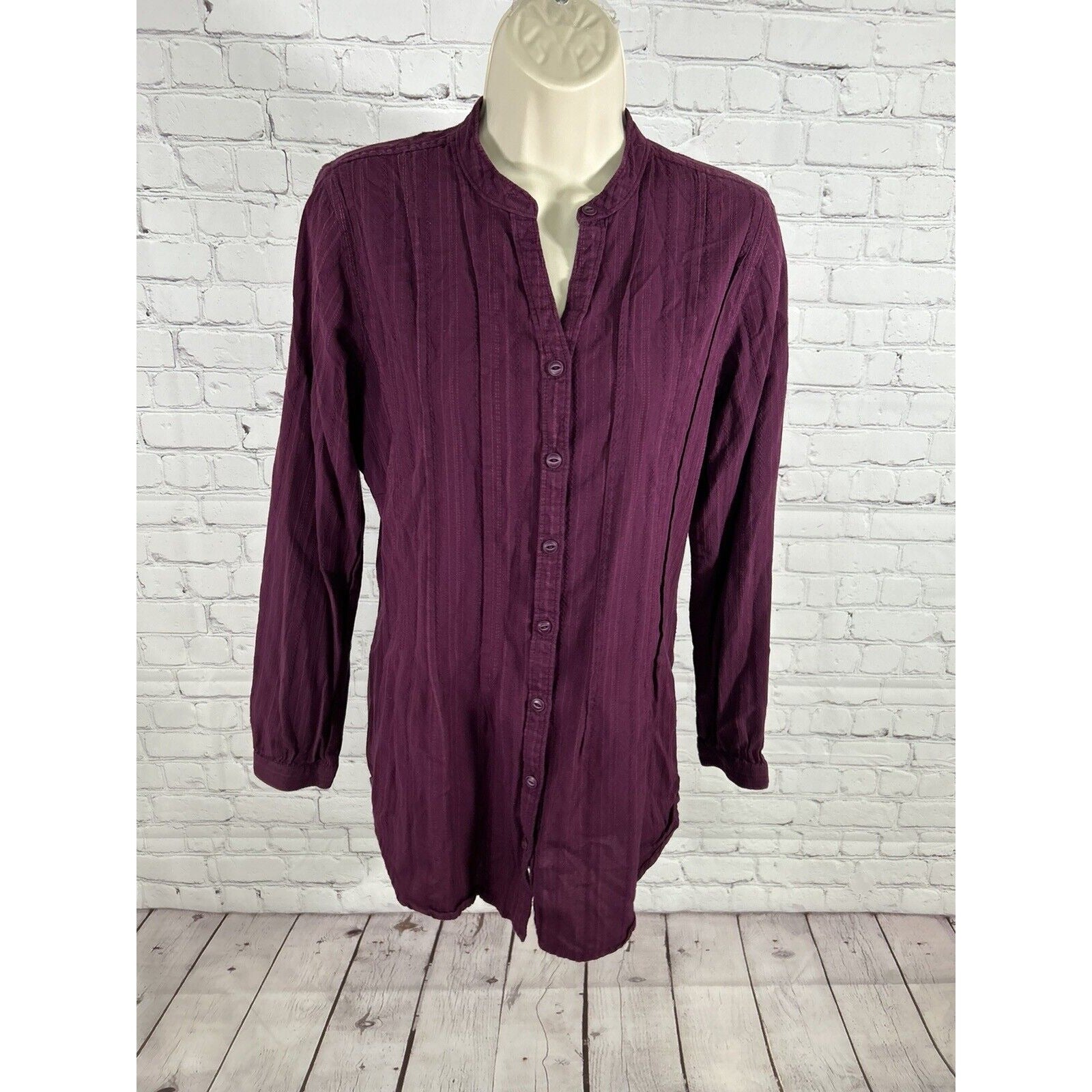 Woolrich Woolen Mills Textured Purple Long Sleeve Cotton Button Up Shirt Women S