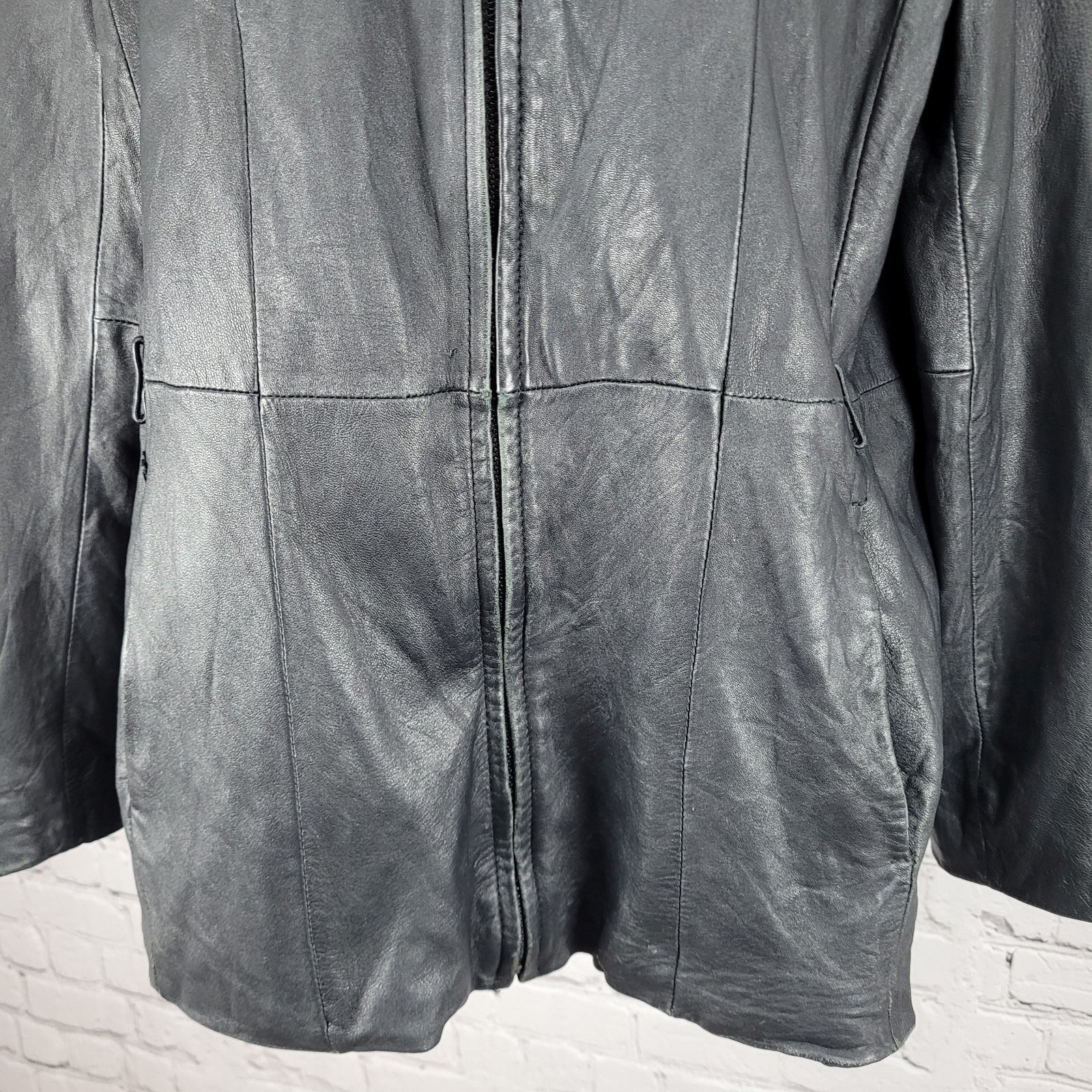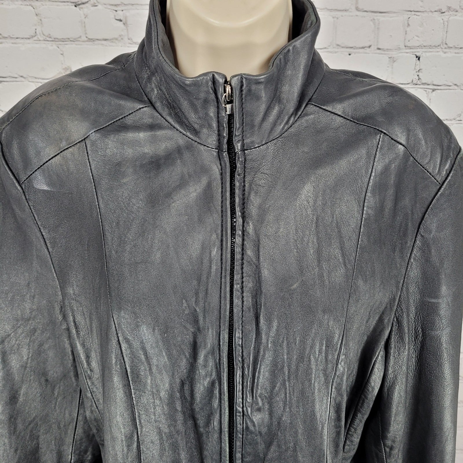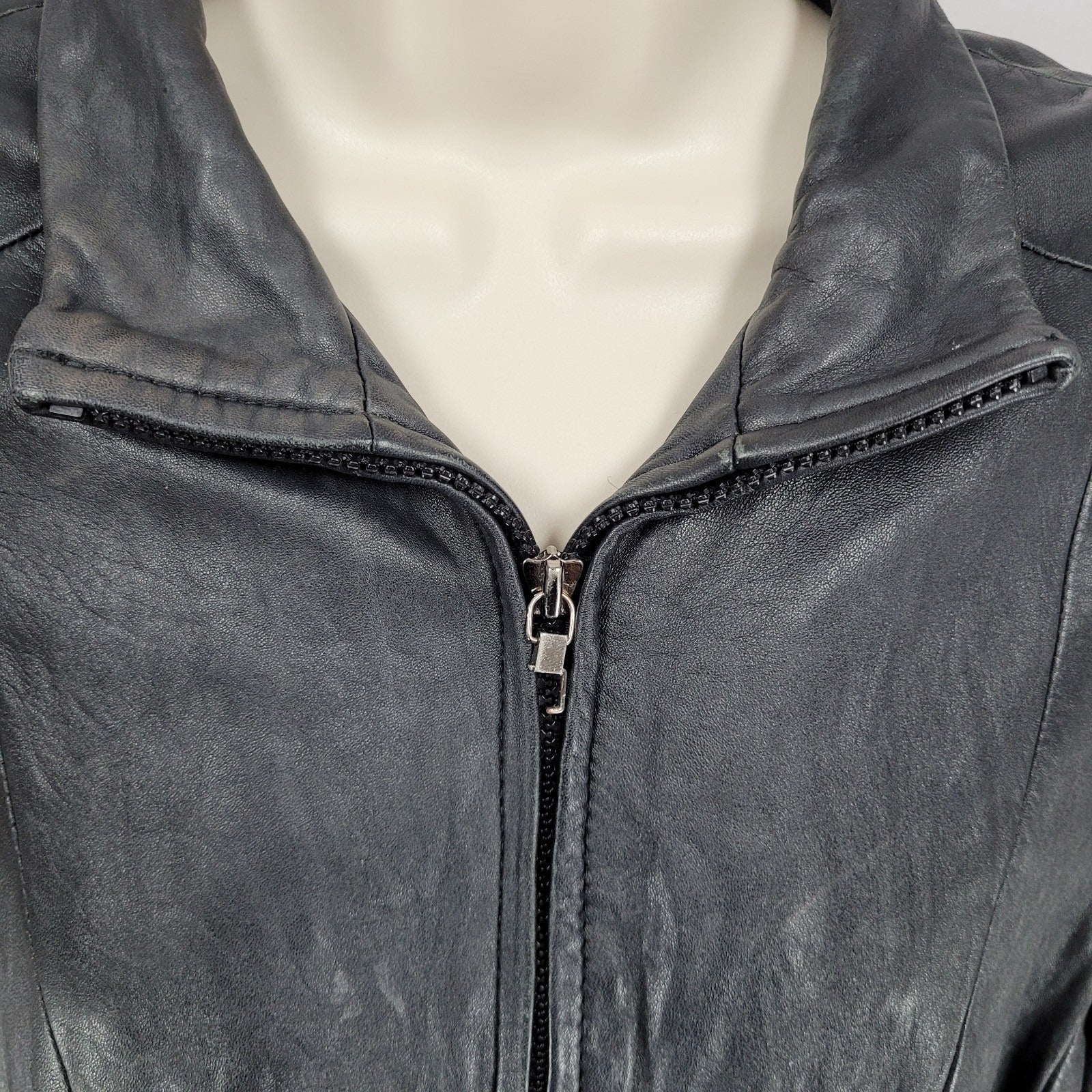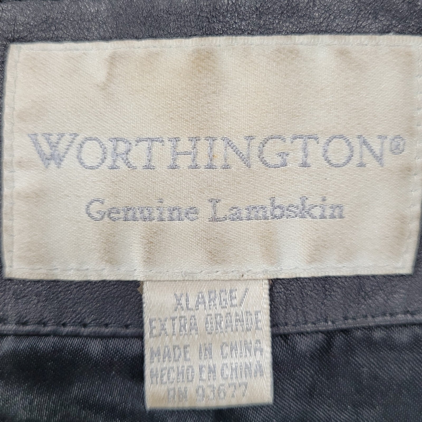 Worthington Black Genuine Lambskin Leather Pockets Full Zipped Jacket Size XL