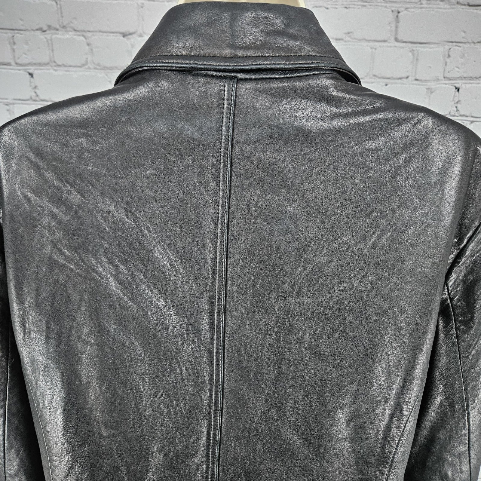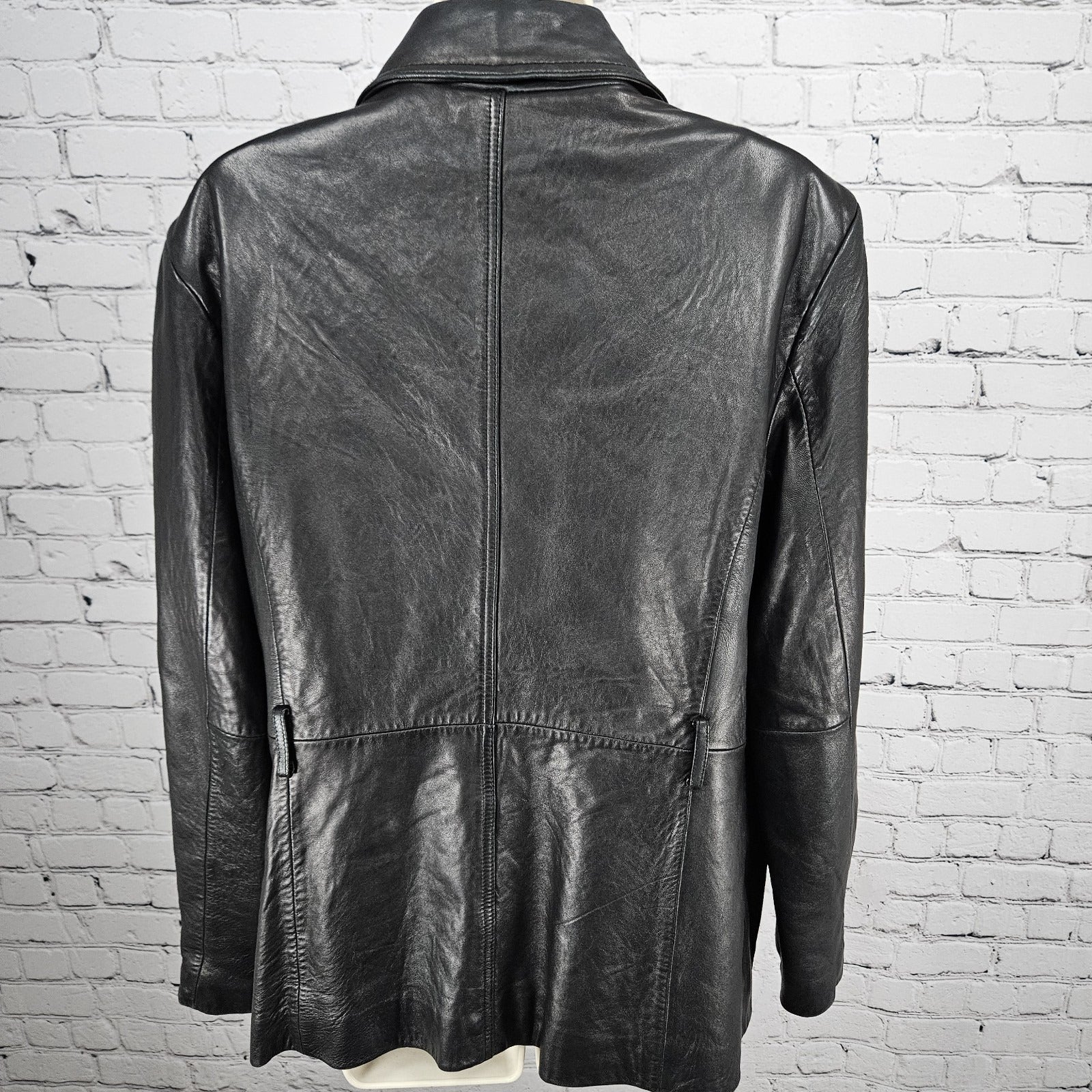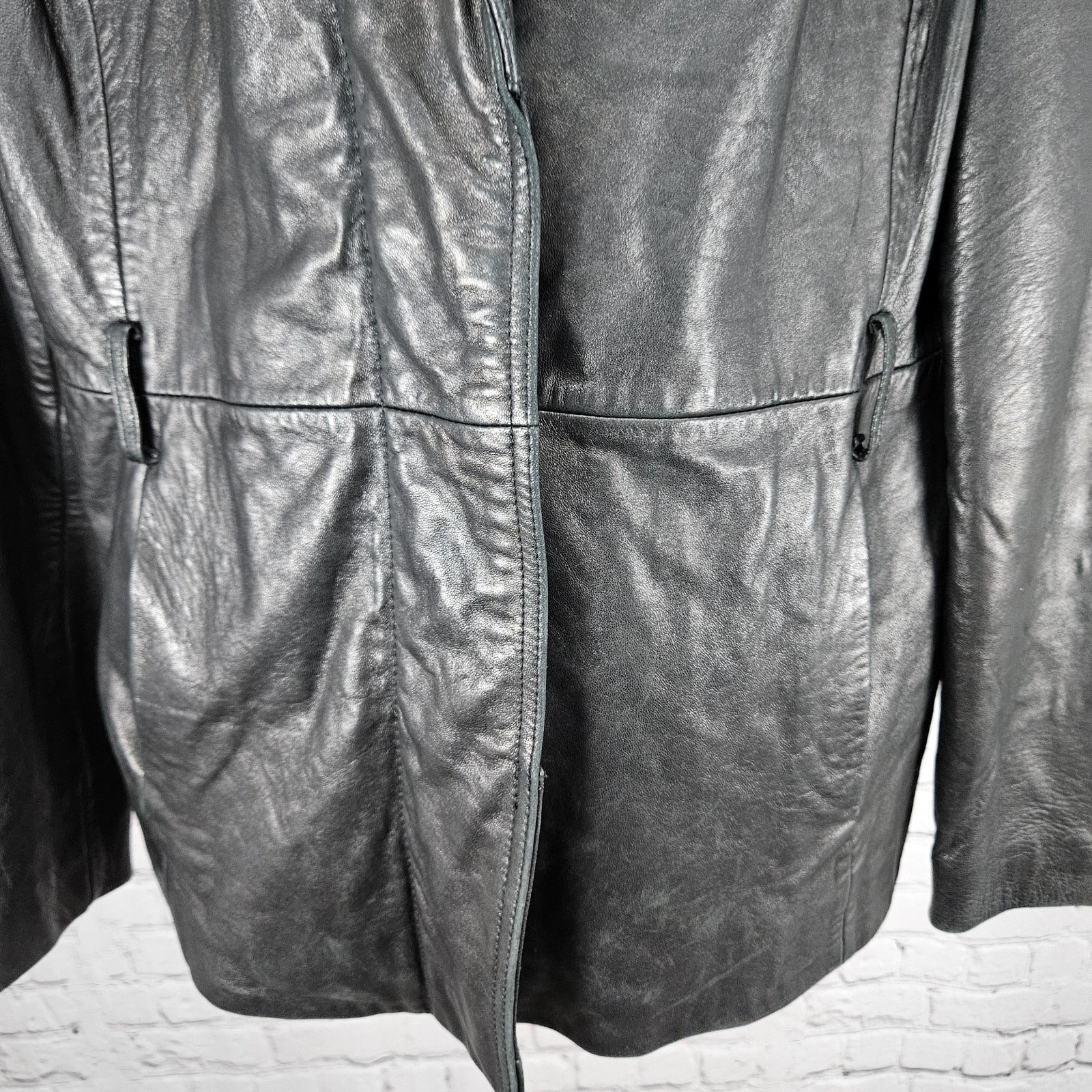 Worthington Black Genuine Lambskin Leather Snap Lined Blazer Style Jacket Large