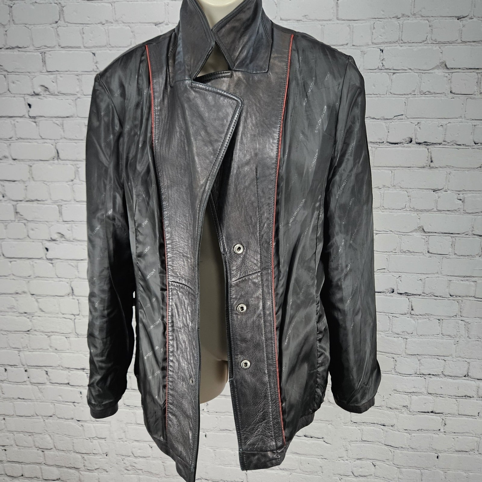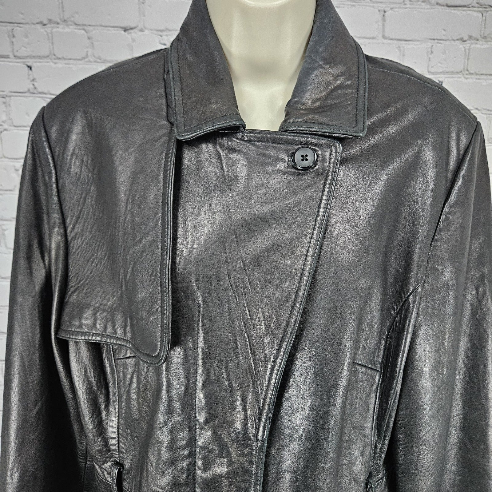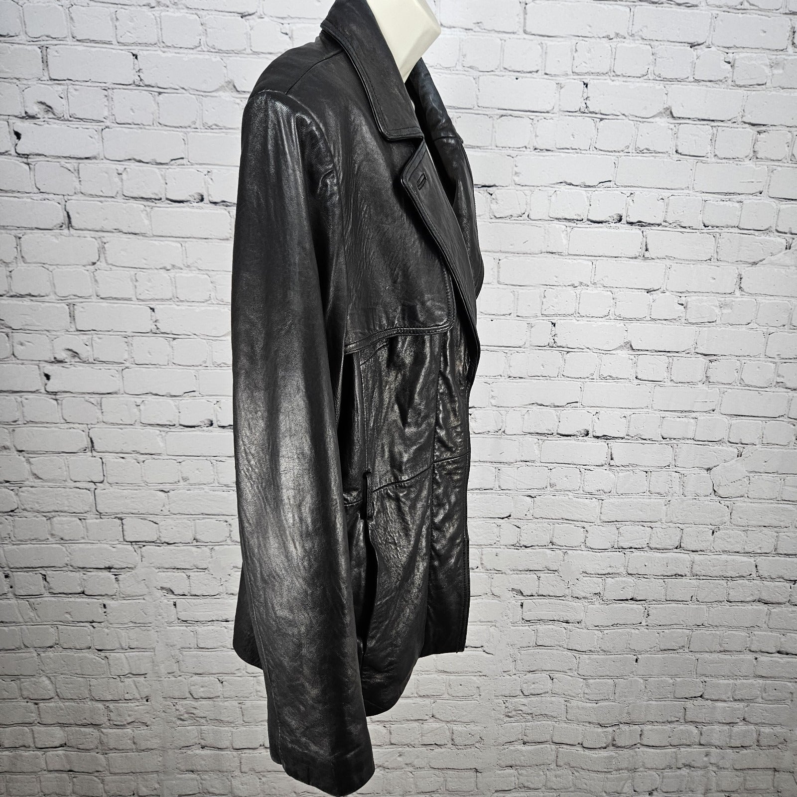 Worthington Black Genuine Lambskin Leather Snap Lined Blazer Style Jacket Large
