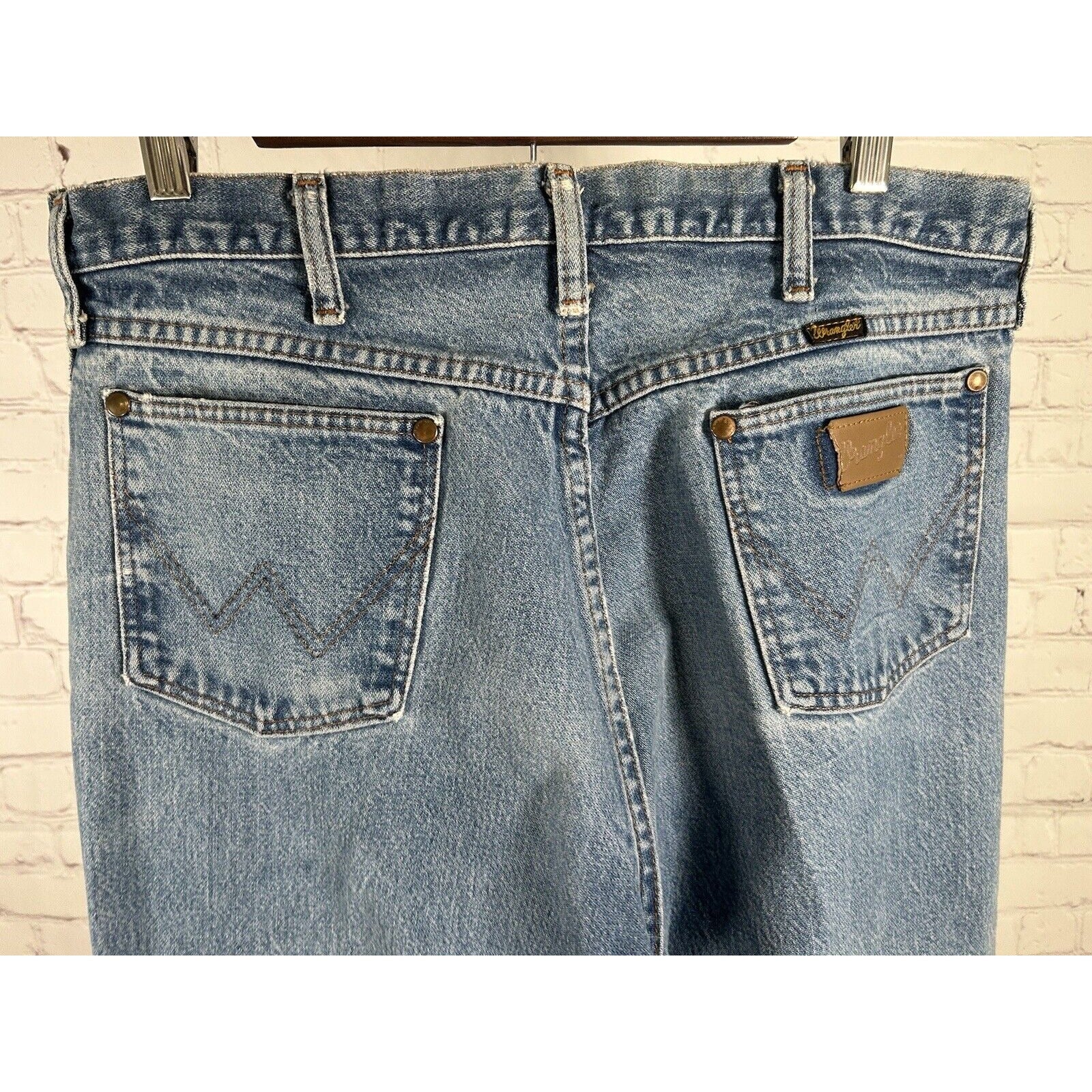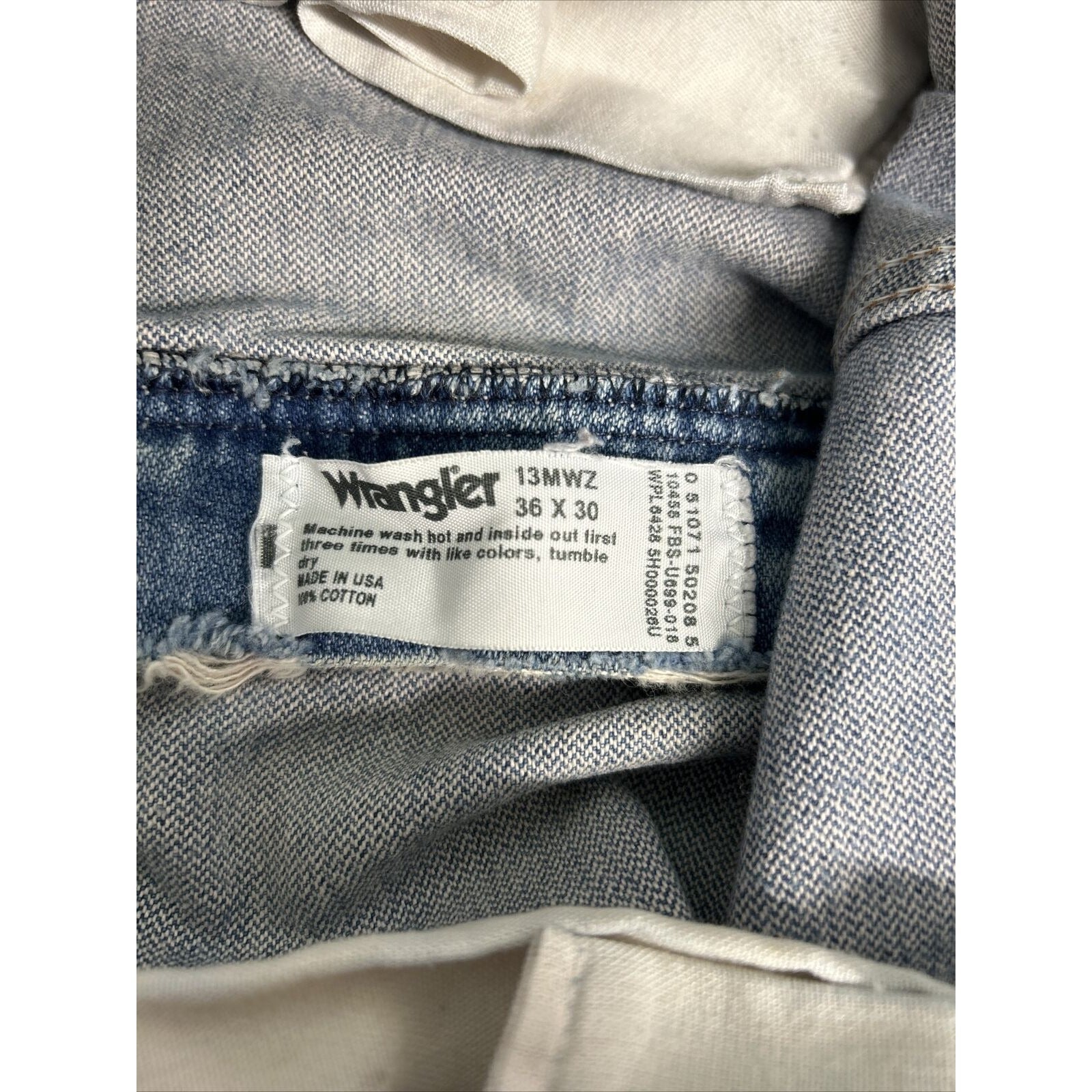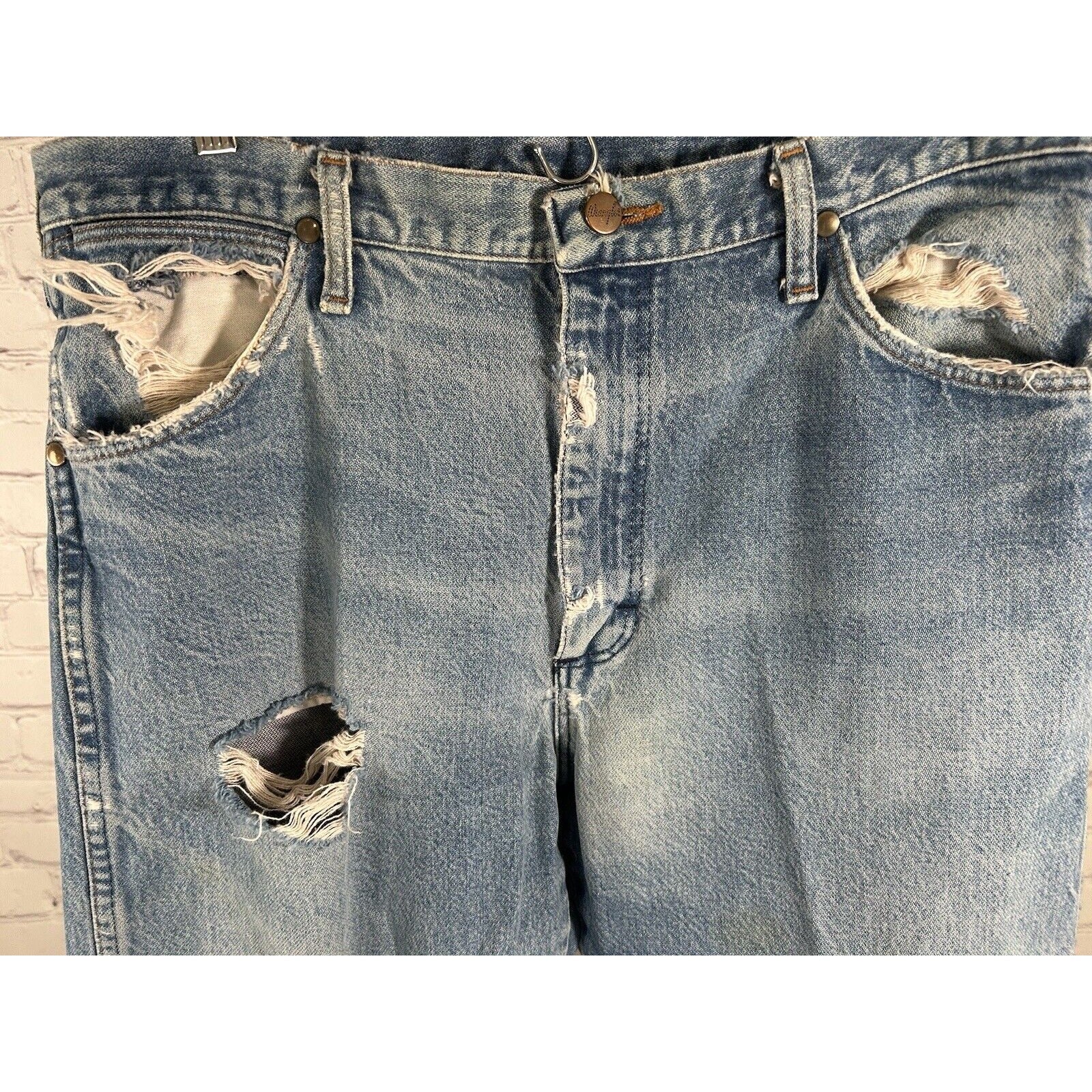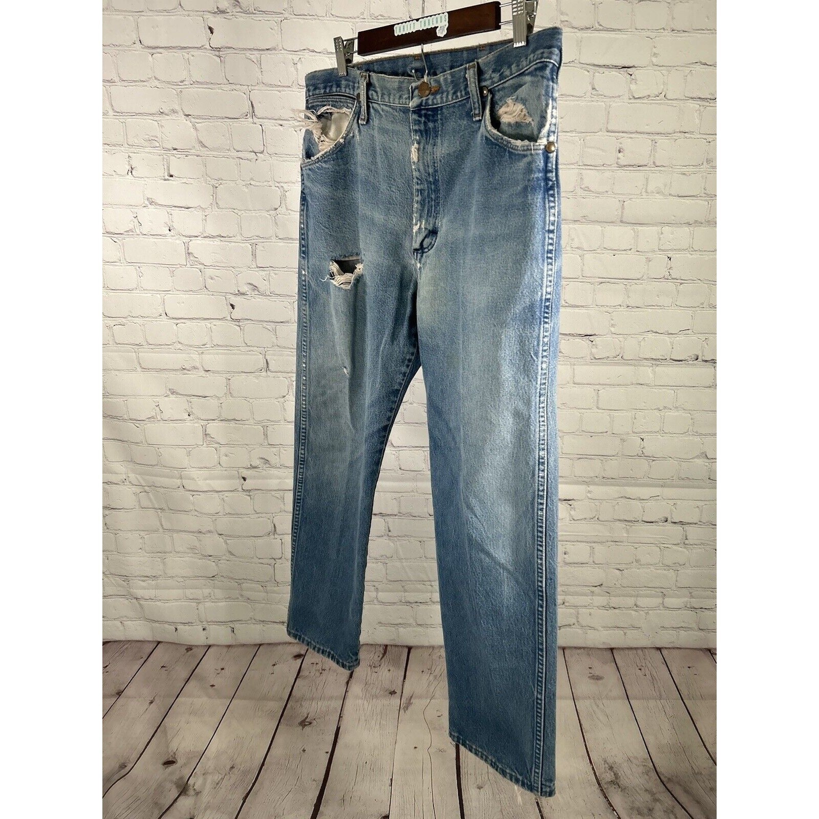 Wrangler Light Wash Blue Denim Distressed Frayed Men’s Mid Rise Jeans (34 x 29)
